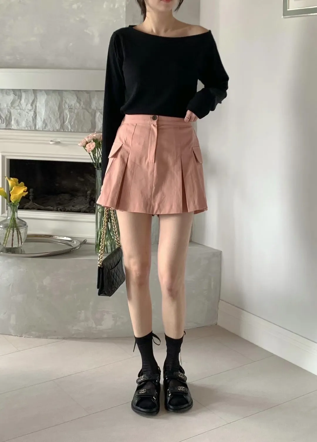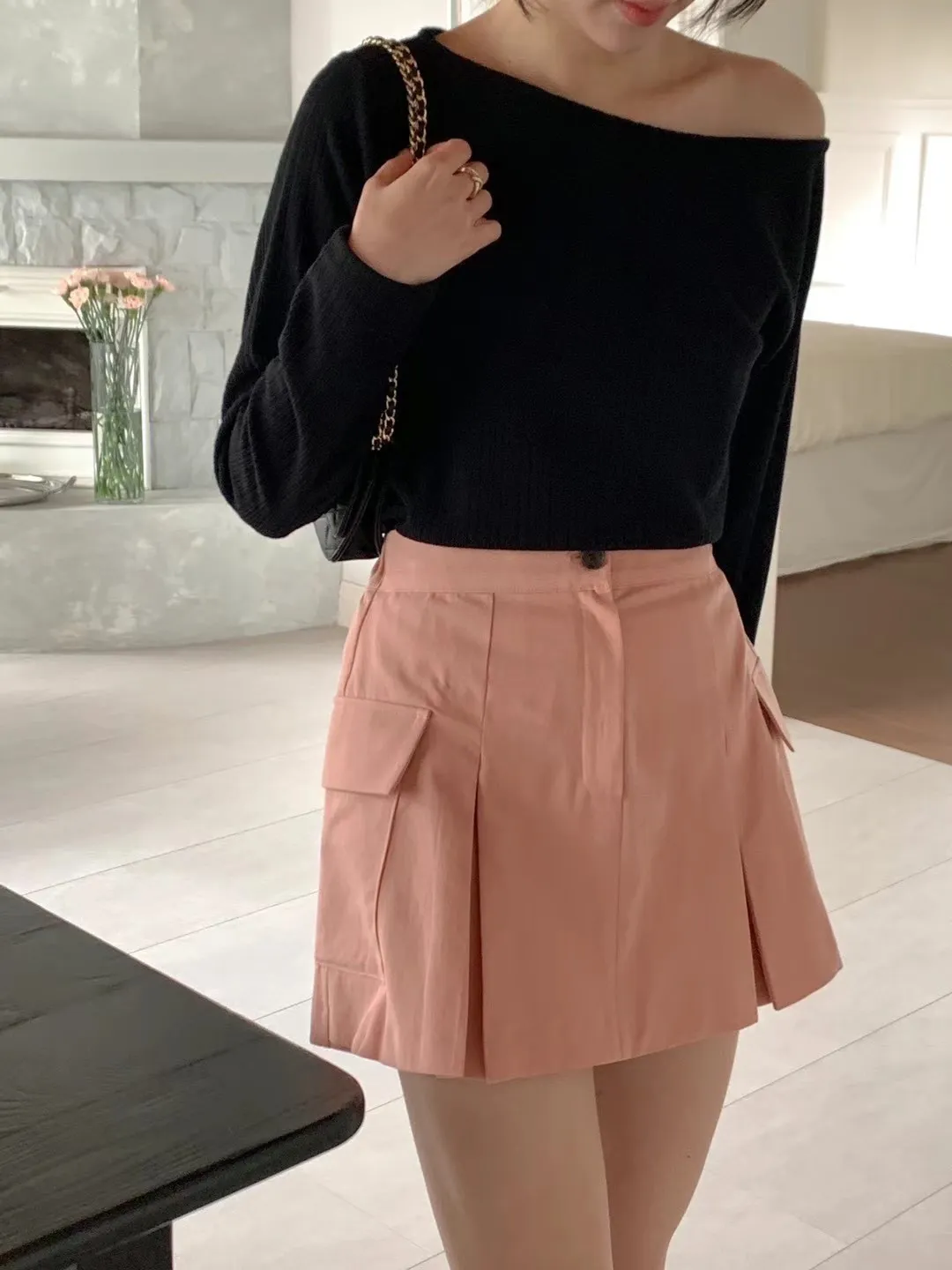 CM249側口袋工裝褲裙 米 粉 黑 官網價$1050 線上價$1020