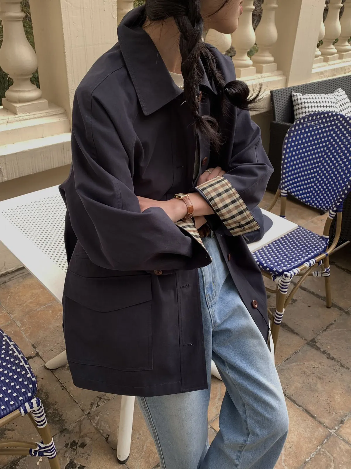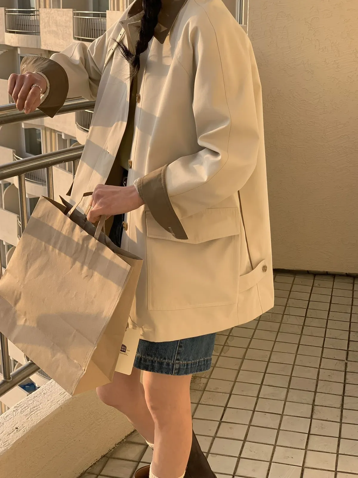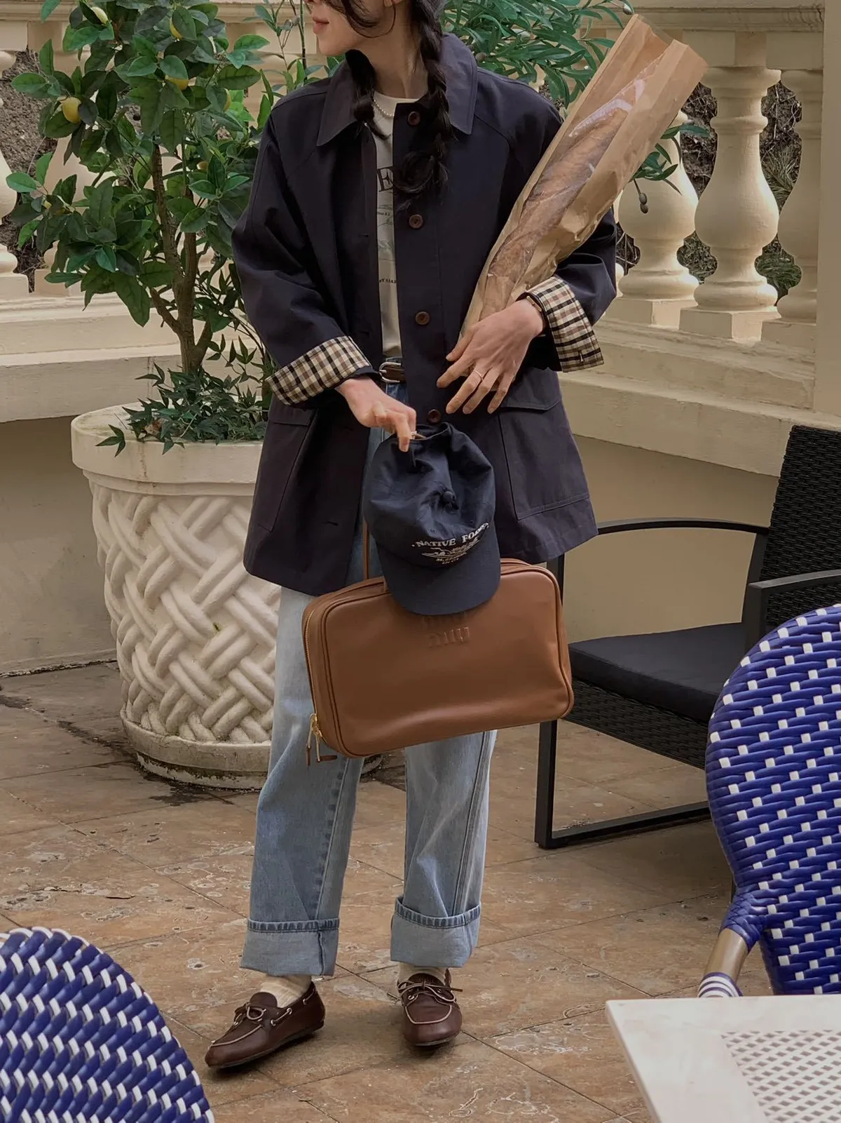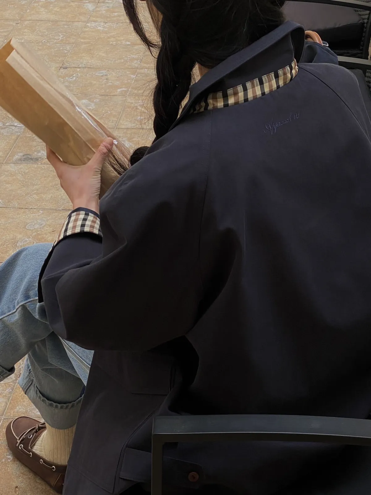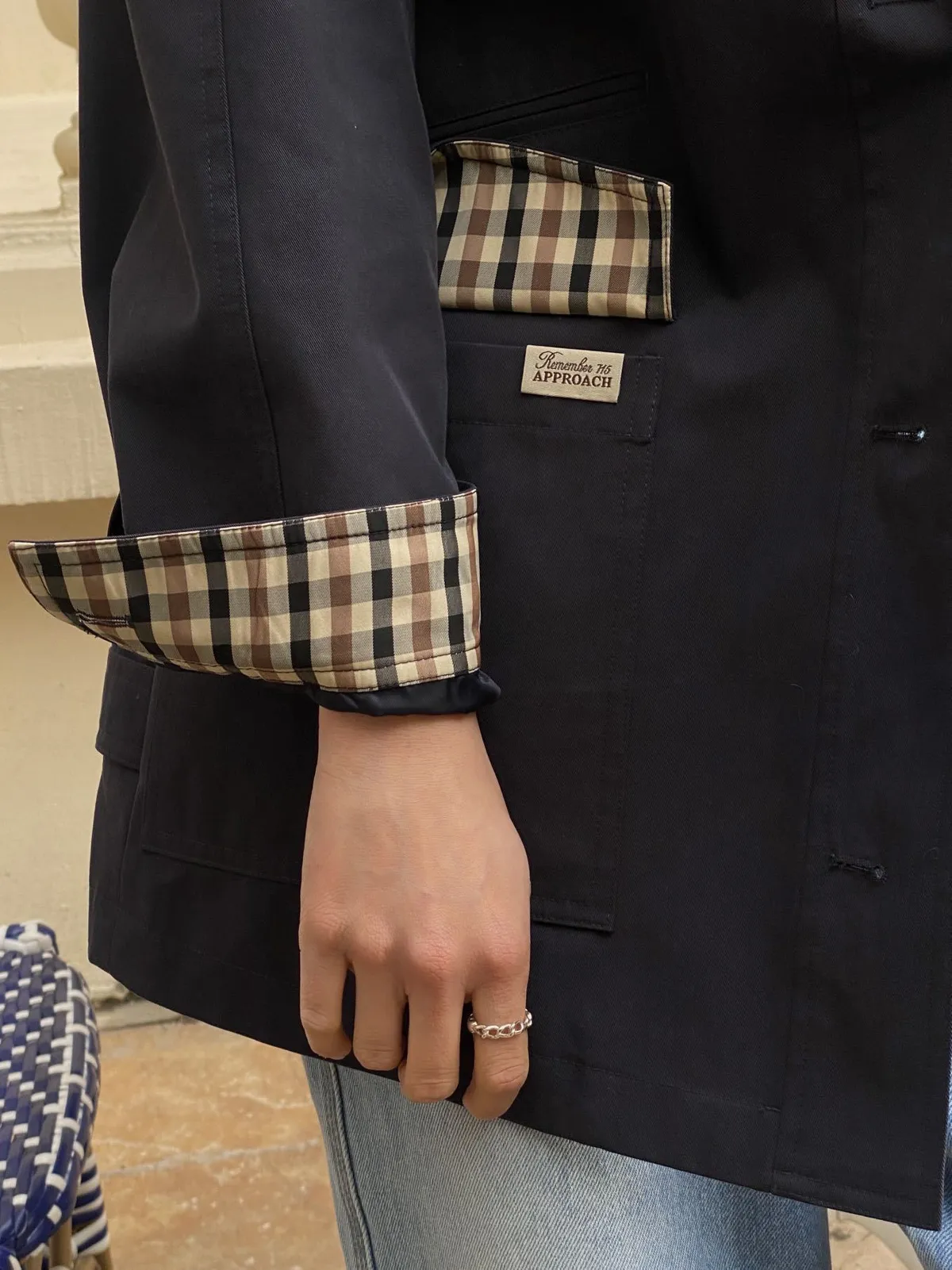 兩色不同的內襯拚色,藍色配格紋,米色配素色