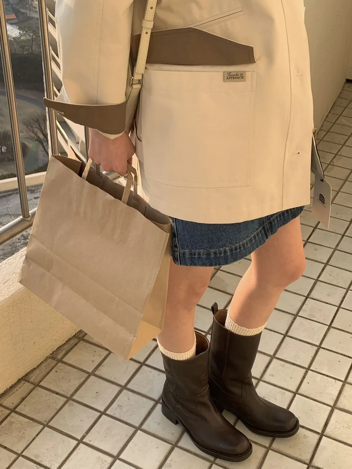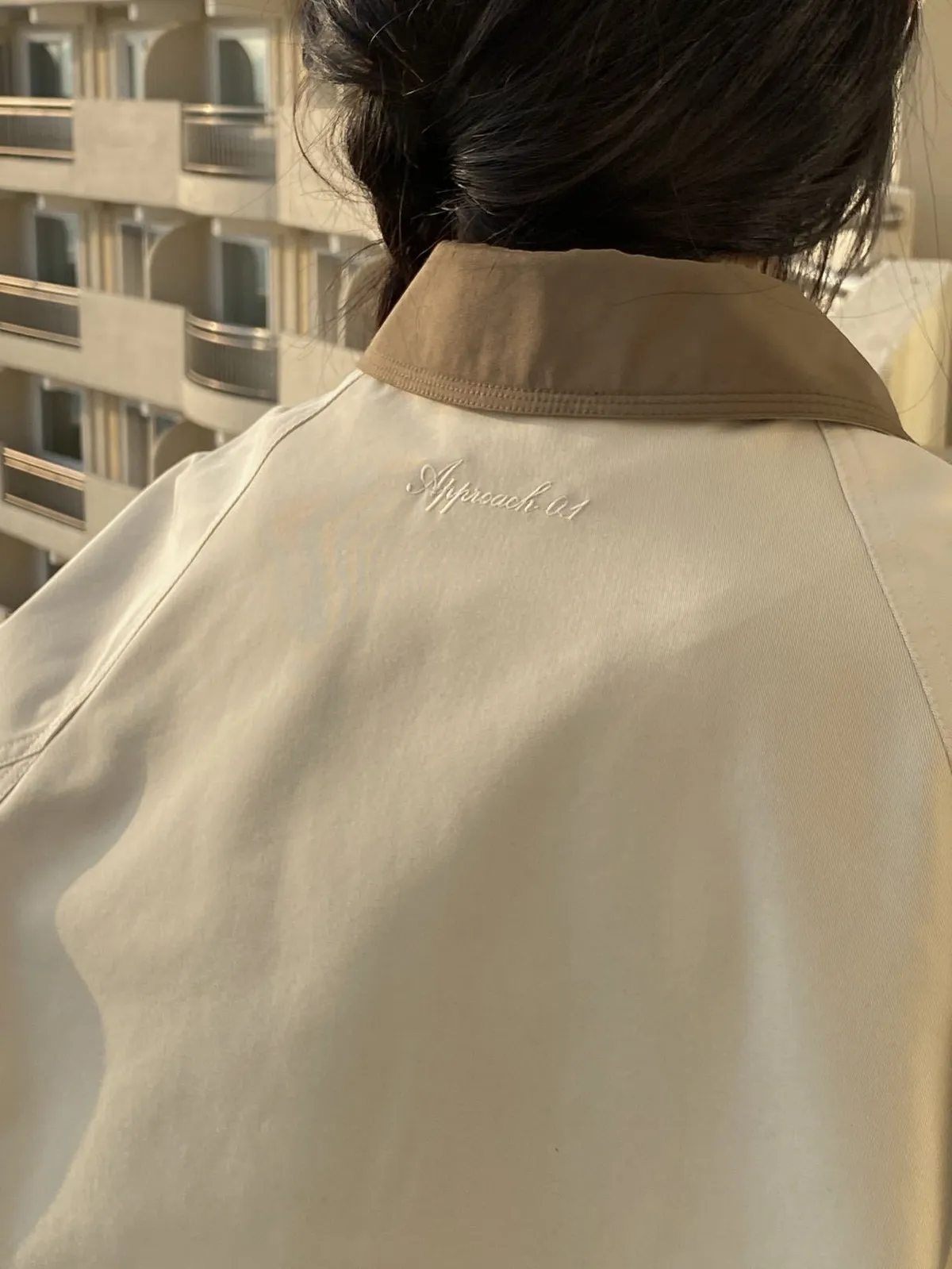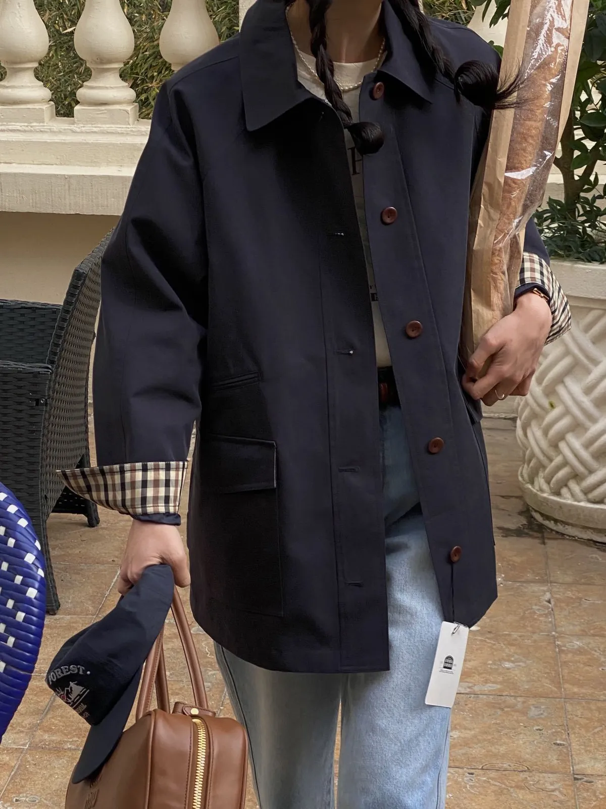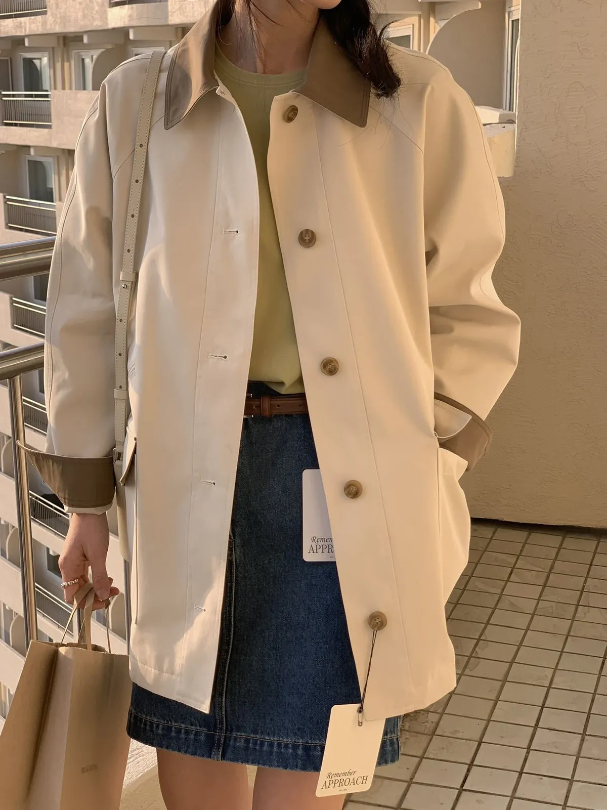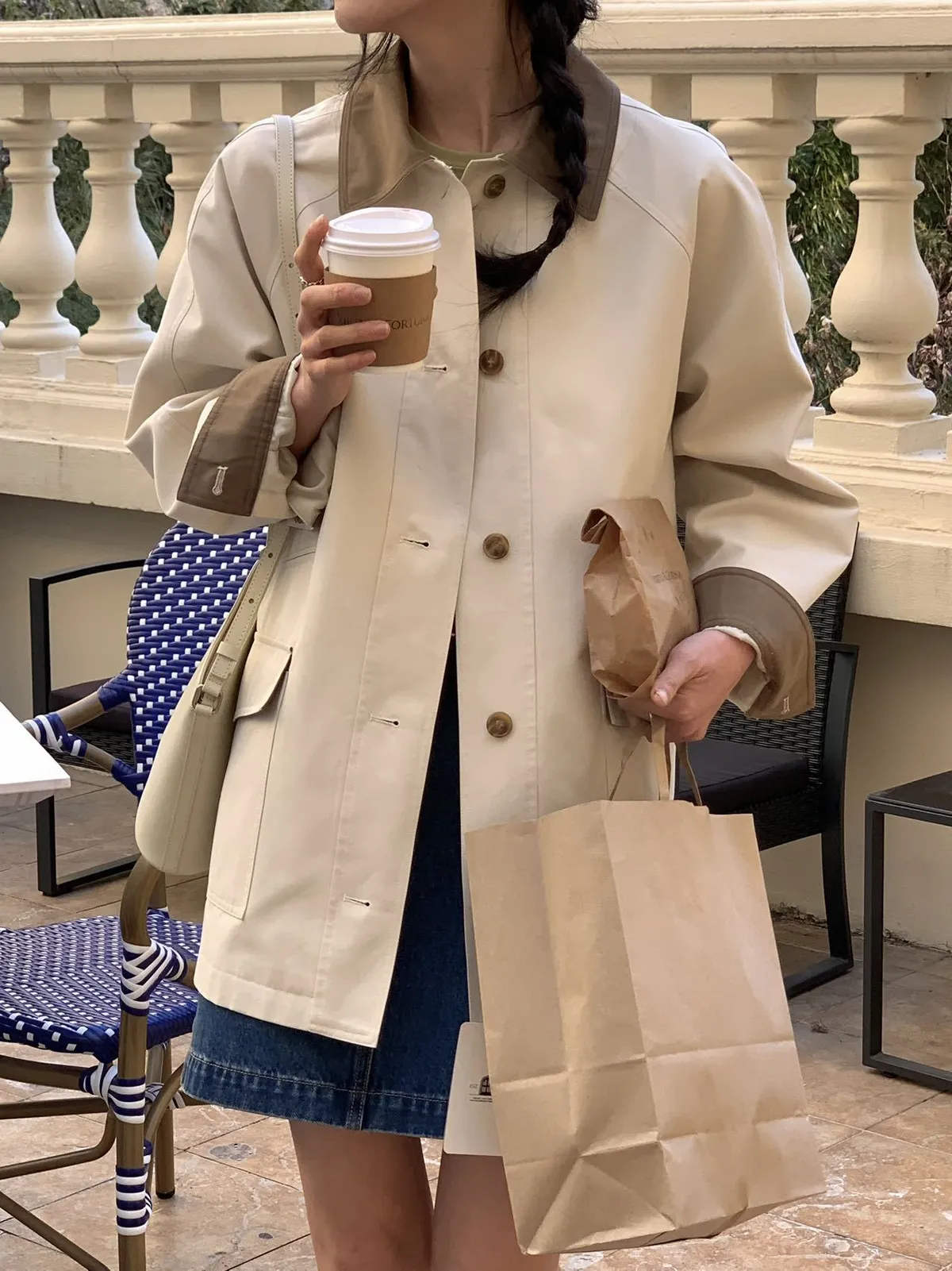 兩色不同的內襯拚色,藍色配格紋,米色配素色