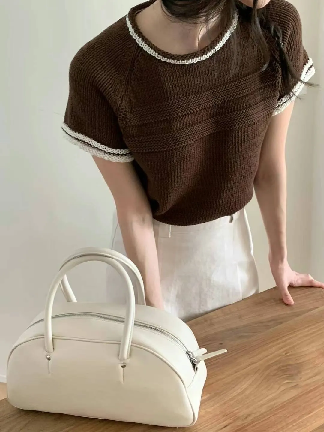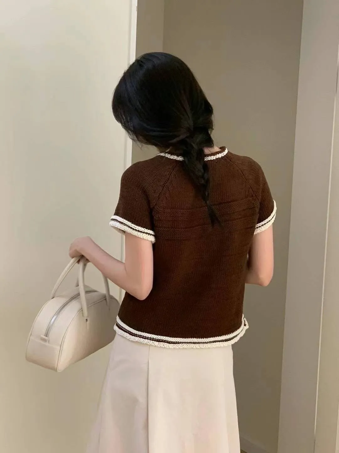CM271新款滾邊針織上衣 米 咖 藍 官網價$1020 線上價$990