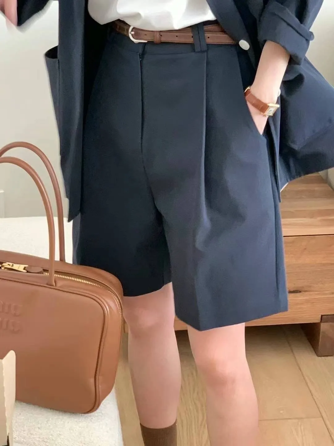 CM274質感高腰西裝短褲 米 綠 S M L 藍 官網價$1160 線上價$1130