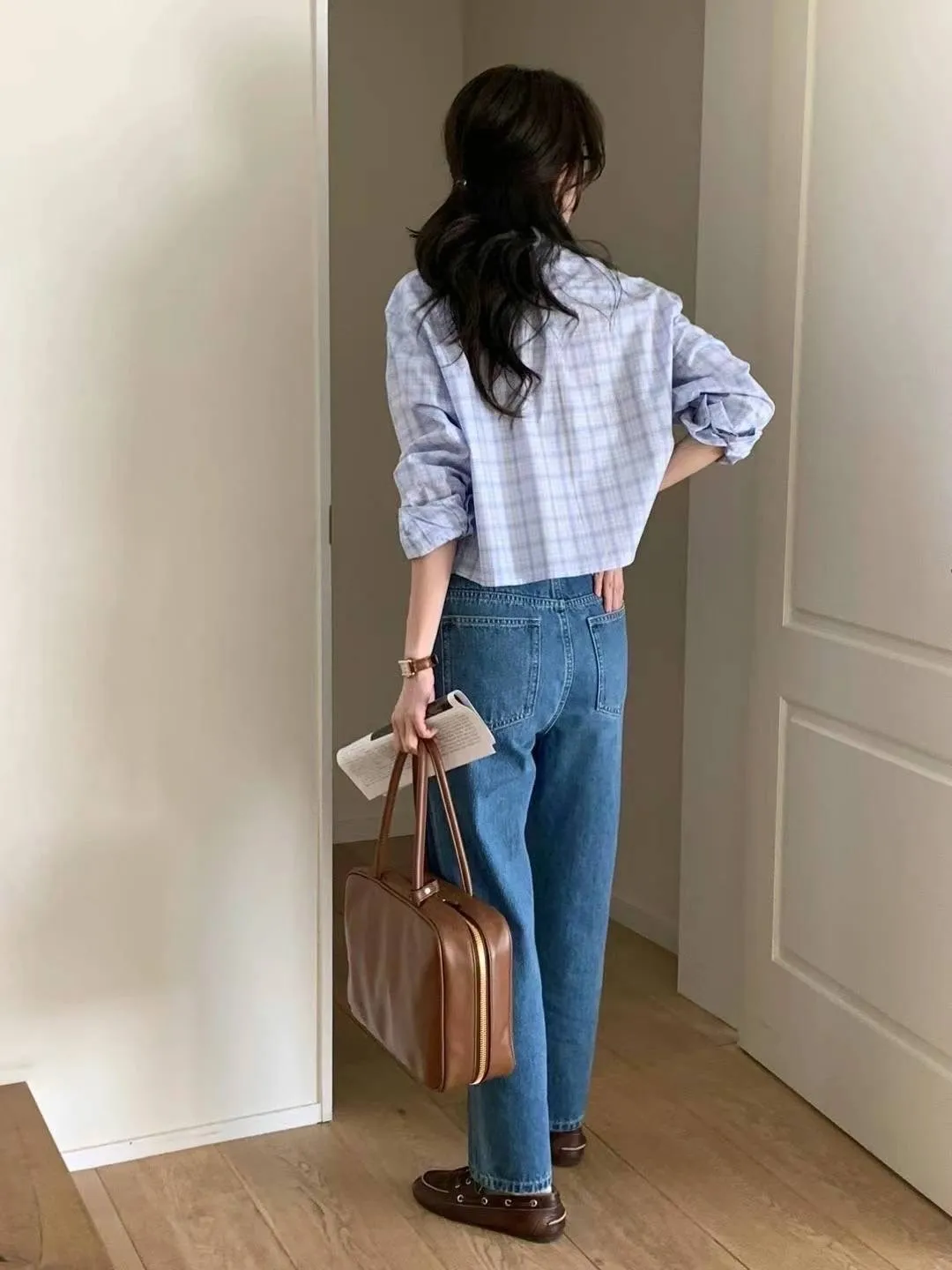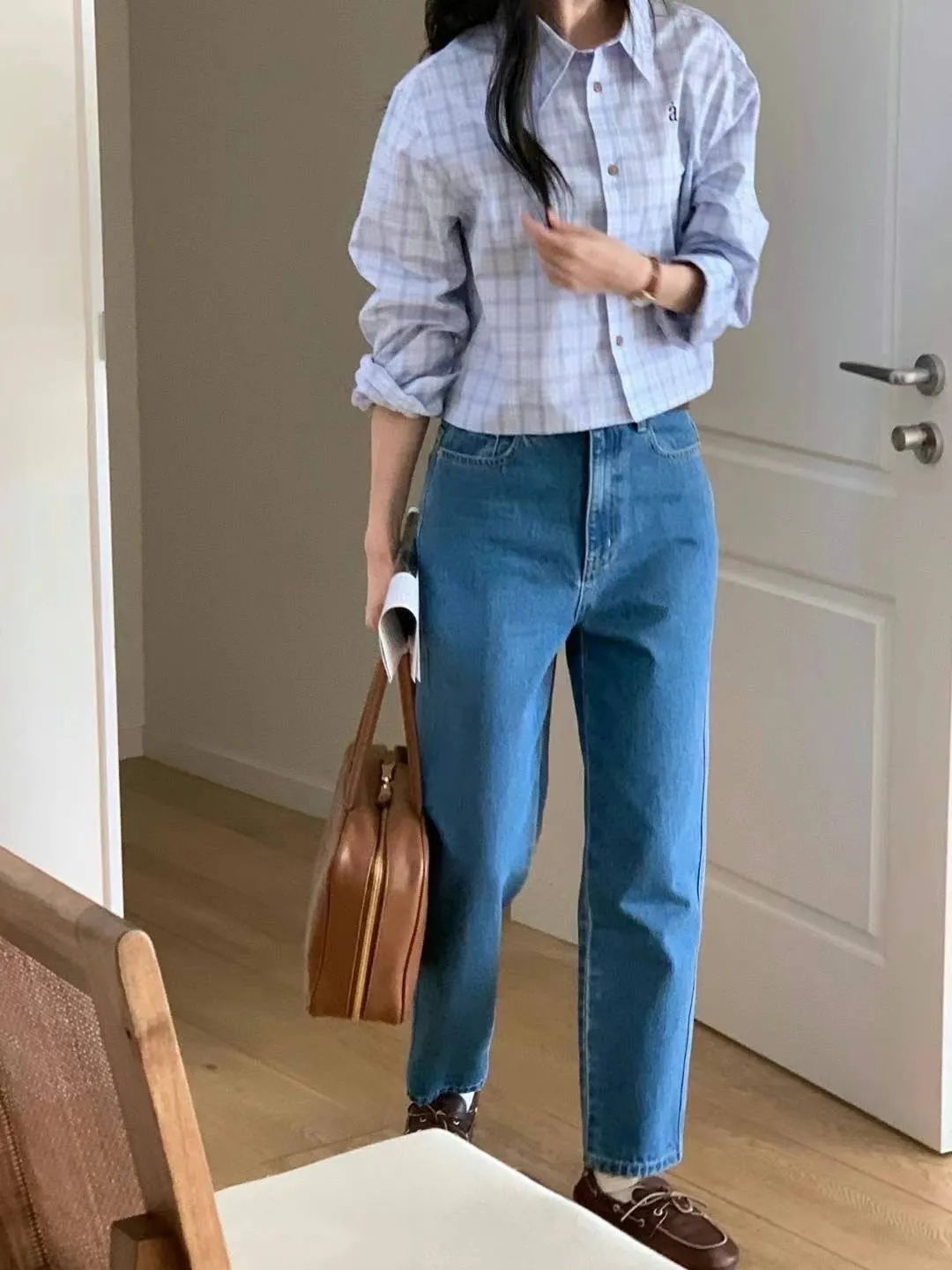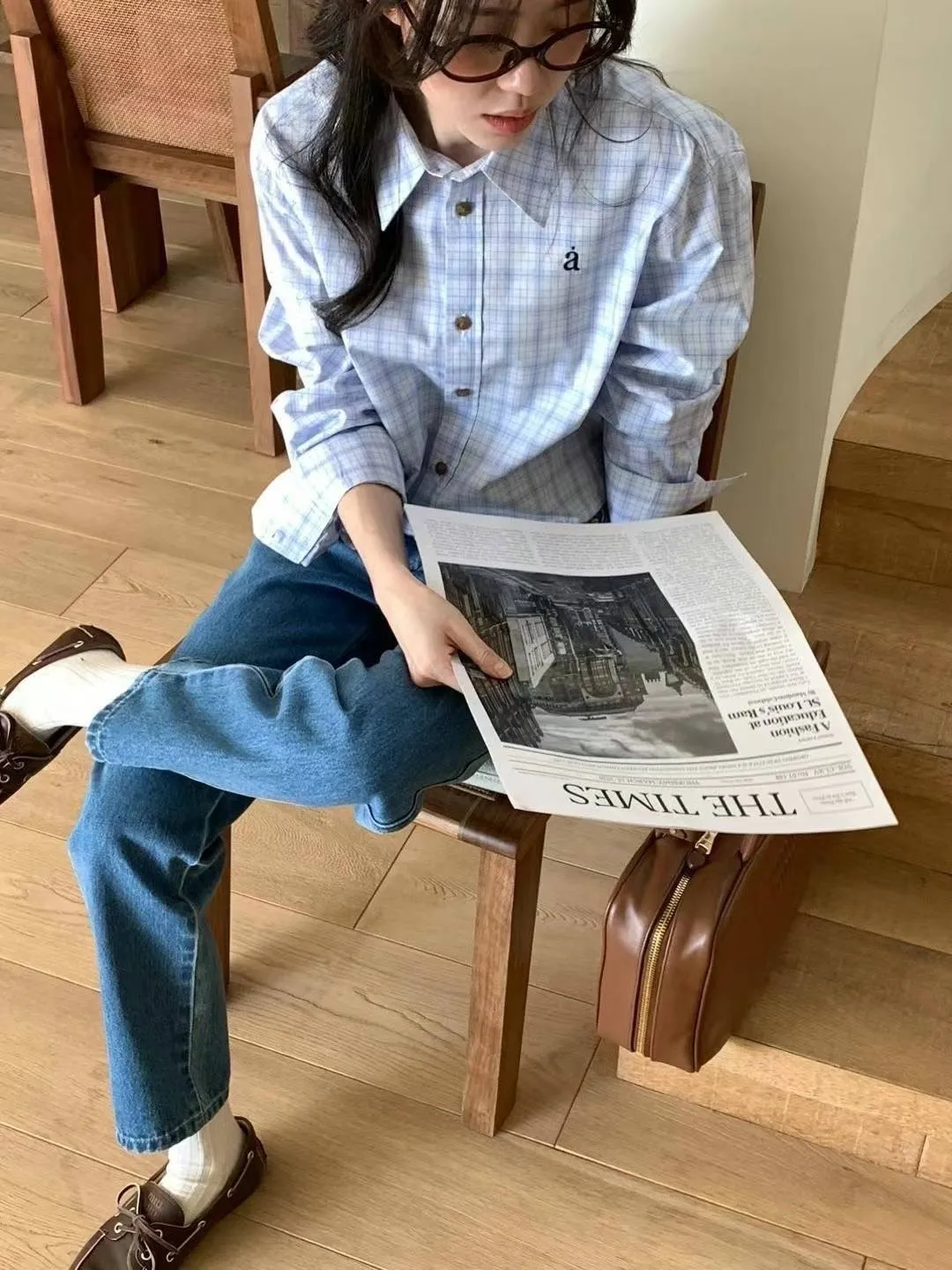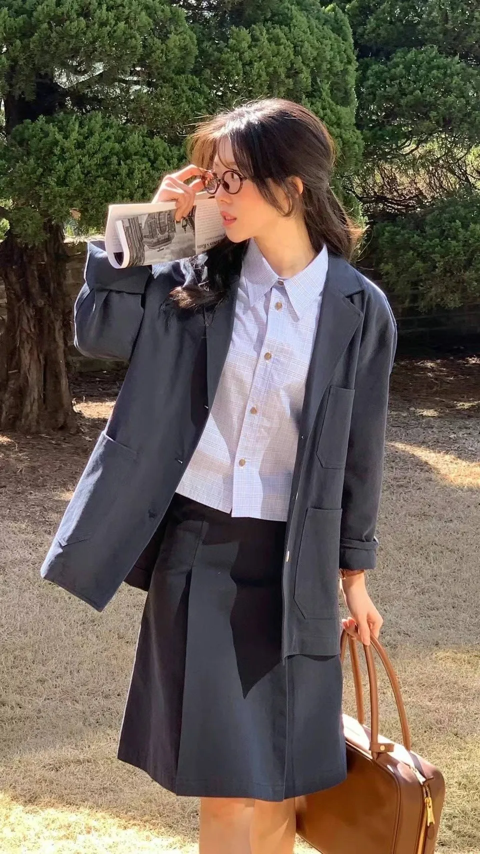 棉,質感滑面料 順身好比例 品牌感佳 不易皺 宋宋出場穿藍格 可當罩衫