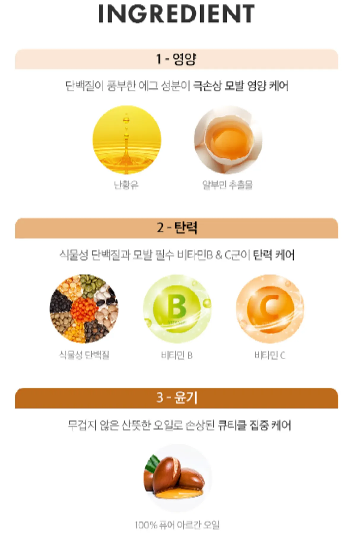 成份 : 法式頂級香水調香 蛋黃油+蛋白質+摩洛哥堅果油