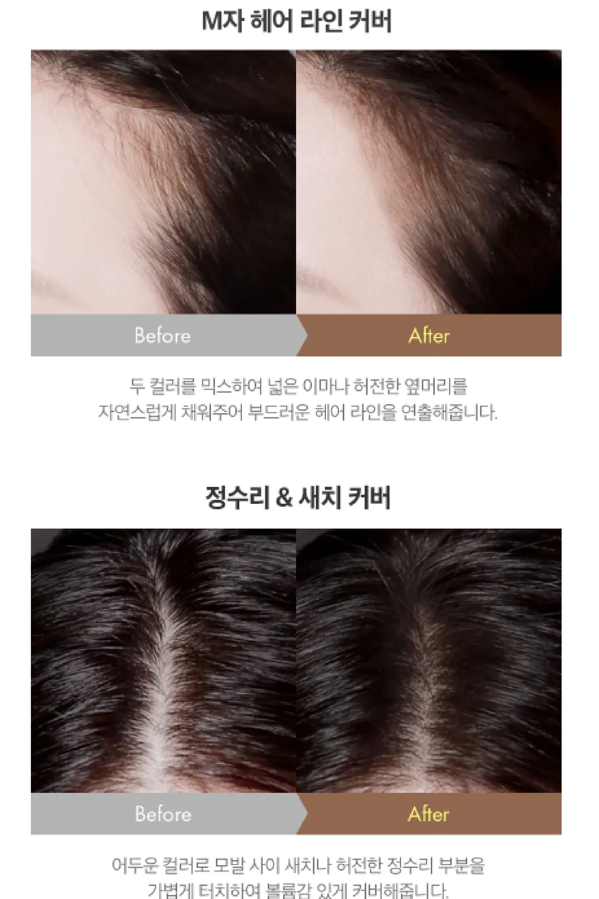 使用 : 兩種顏色以匹配髮色,使更自然和深色的頭髮遮瑕