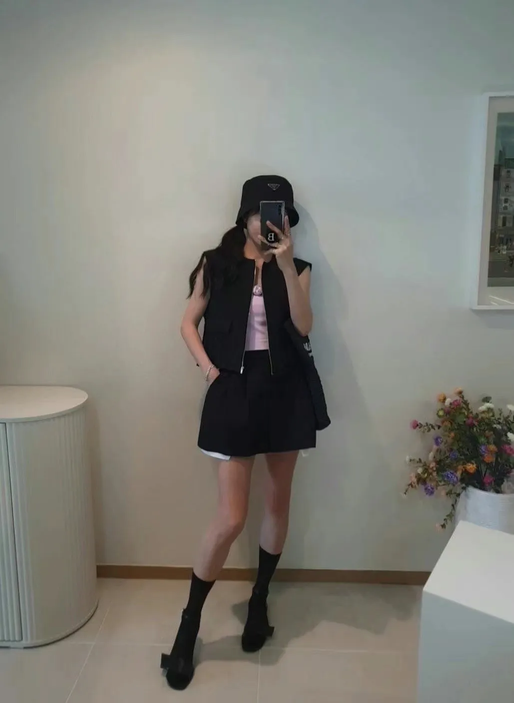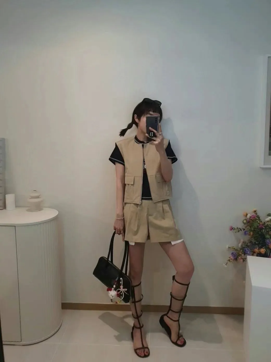 CM449套裝的短褲 咖 黑 S M 官網價$1280 線上價$1250
