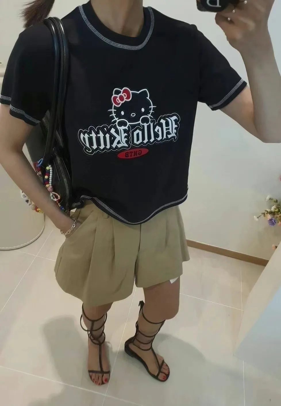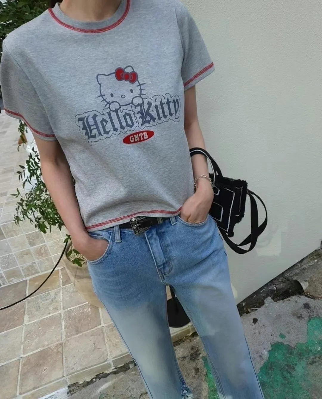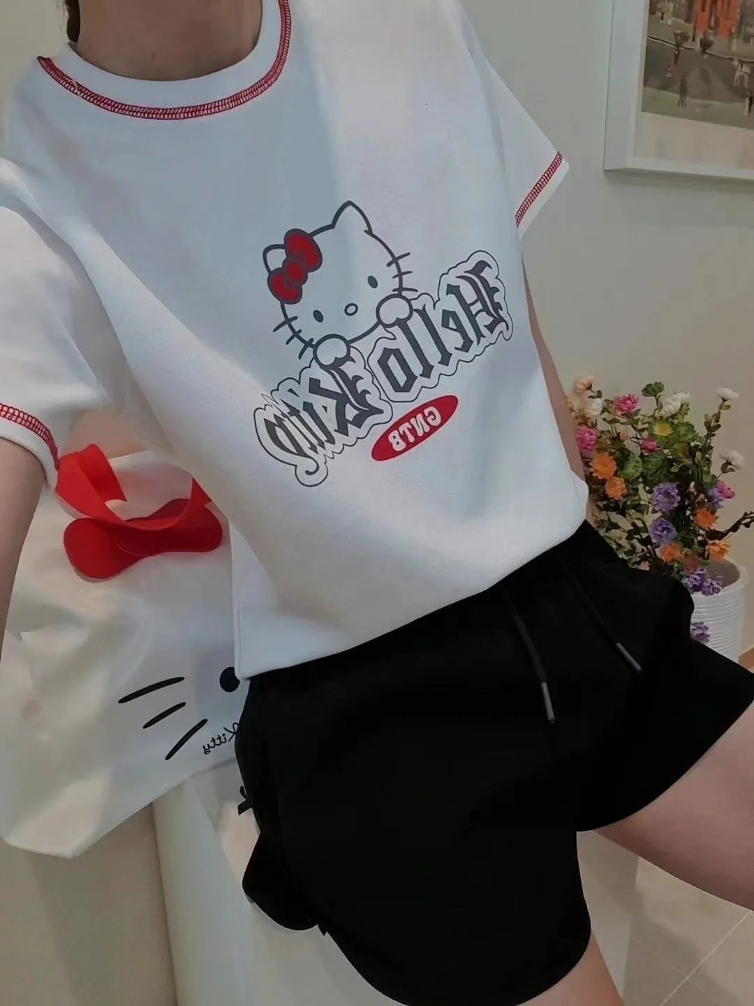 CM450 推薦款可愛hello kitty 車線短袖Tshirt 白 灰 黑 官網價$720 線上價$690