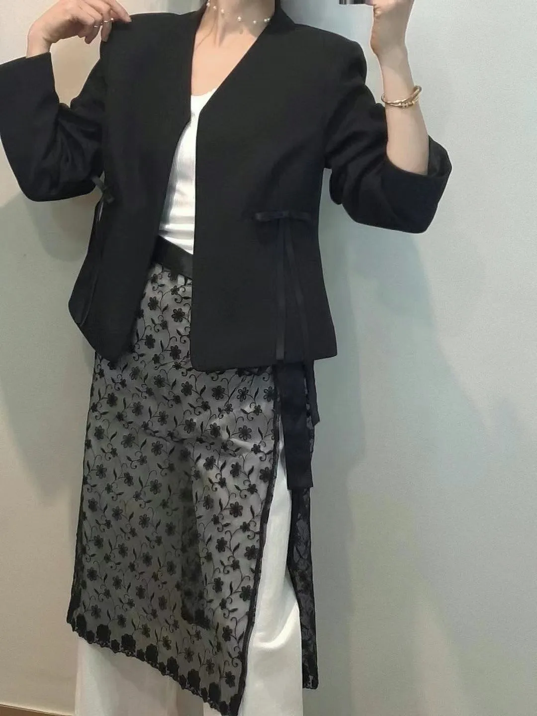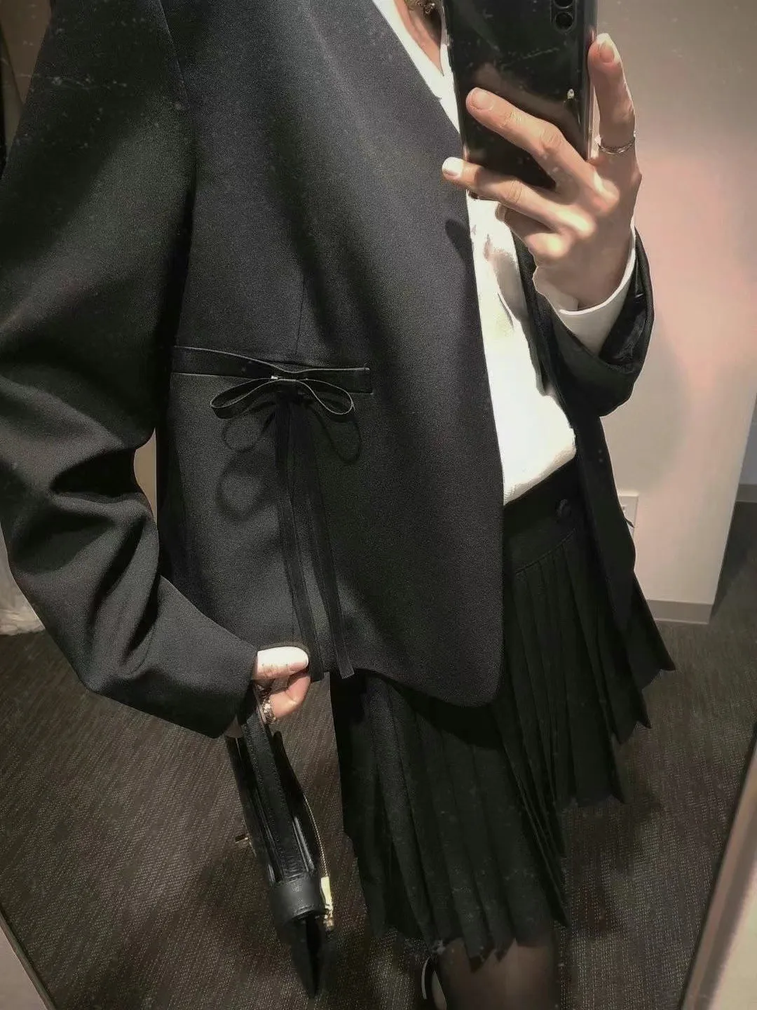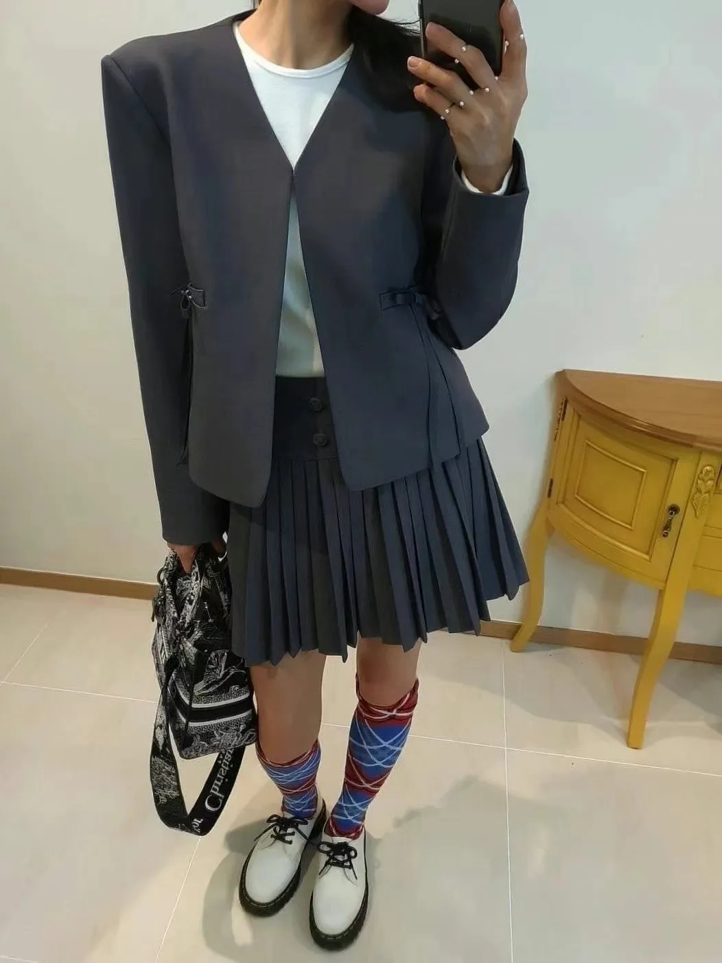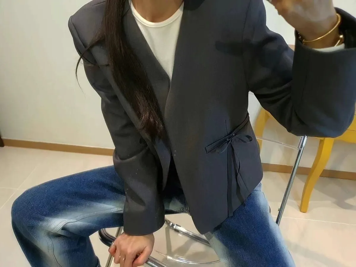 CM453蝴蝶結V領短版修身外套 淺灰 深灰 官網價$2050 線上價$2020