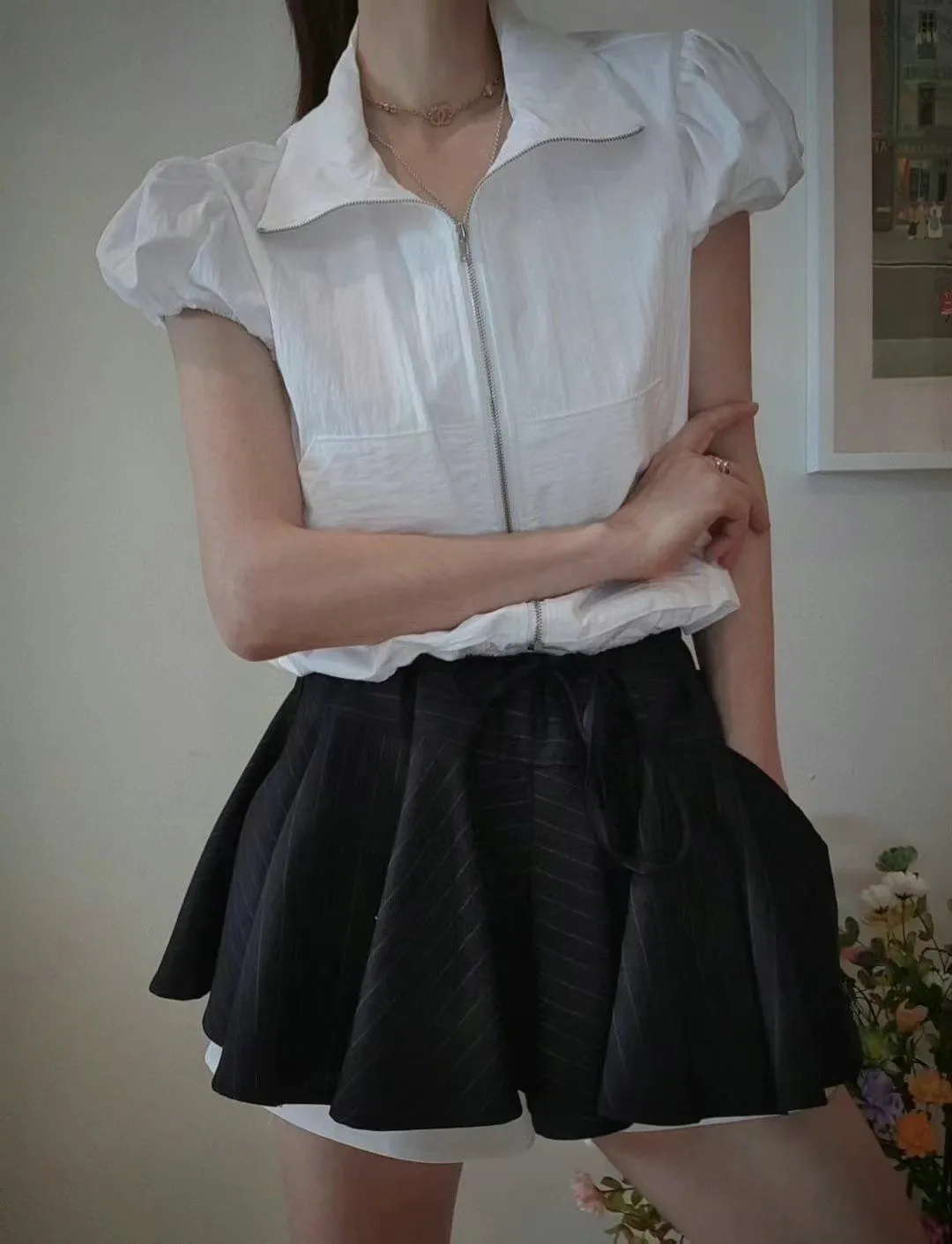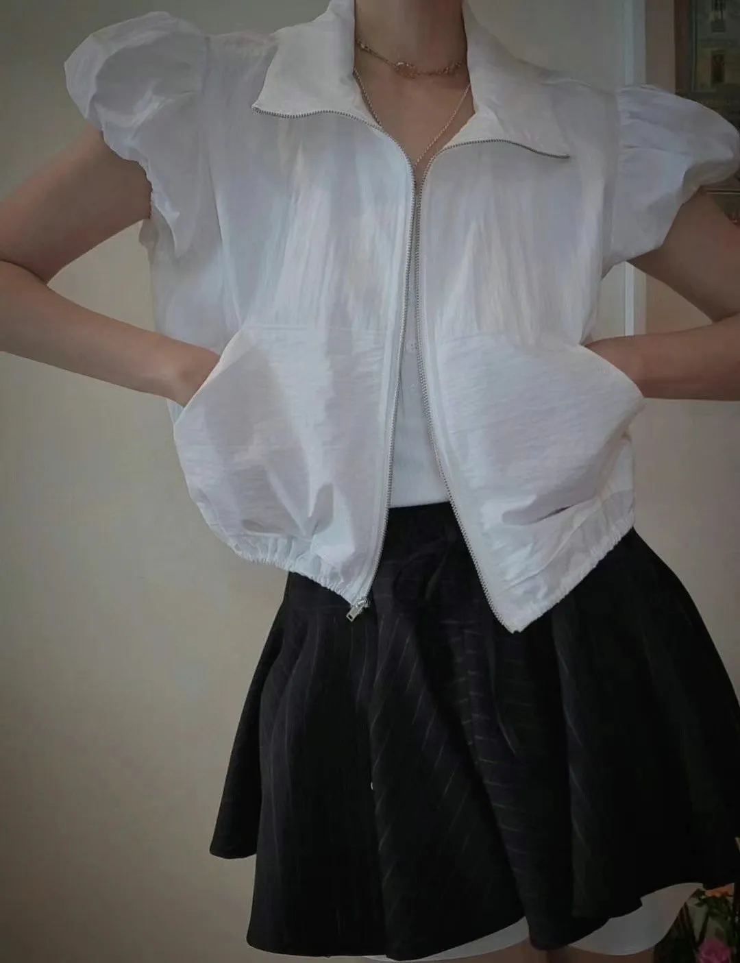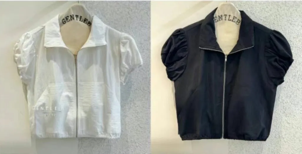CM455質感拉鍊翻領公主袖背心 白 黑 官網價$1470 線上價$1440