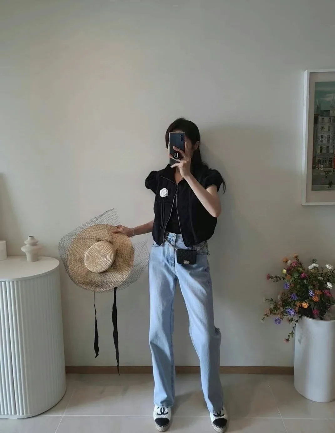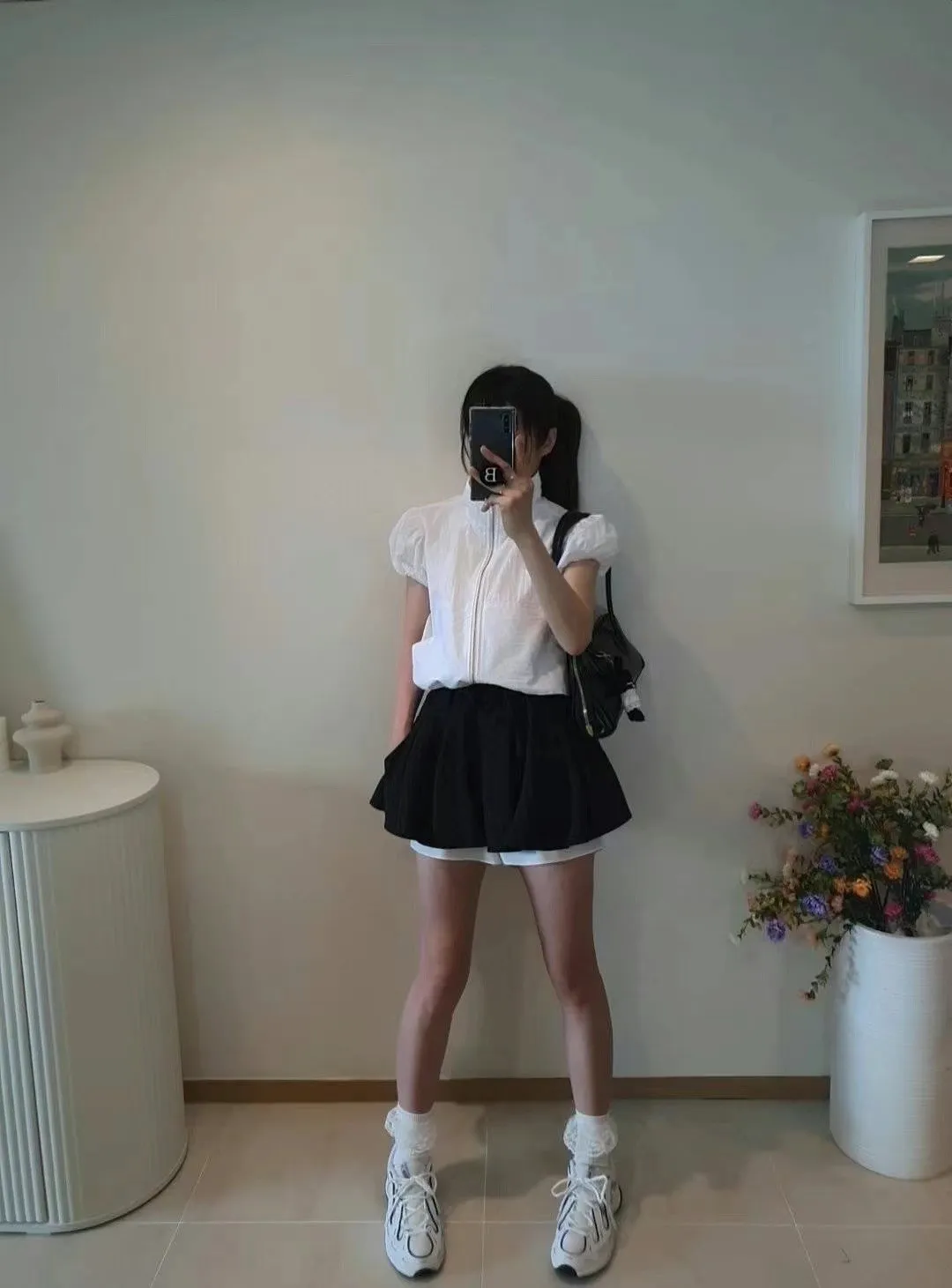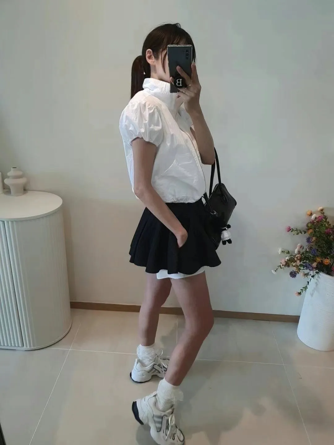 CM455質感拉鍊翻領公主袖背心 白 黑 官網價$1470 線上價$1440