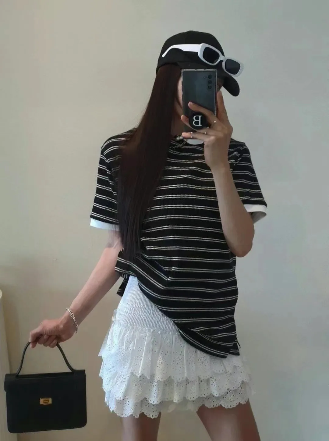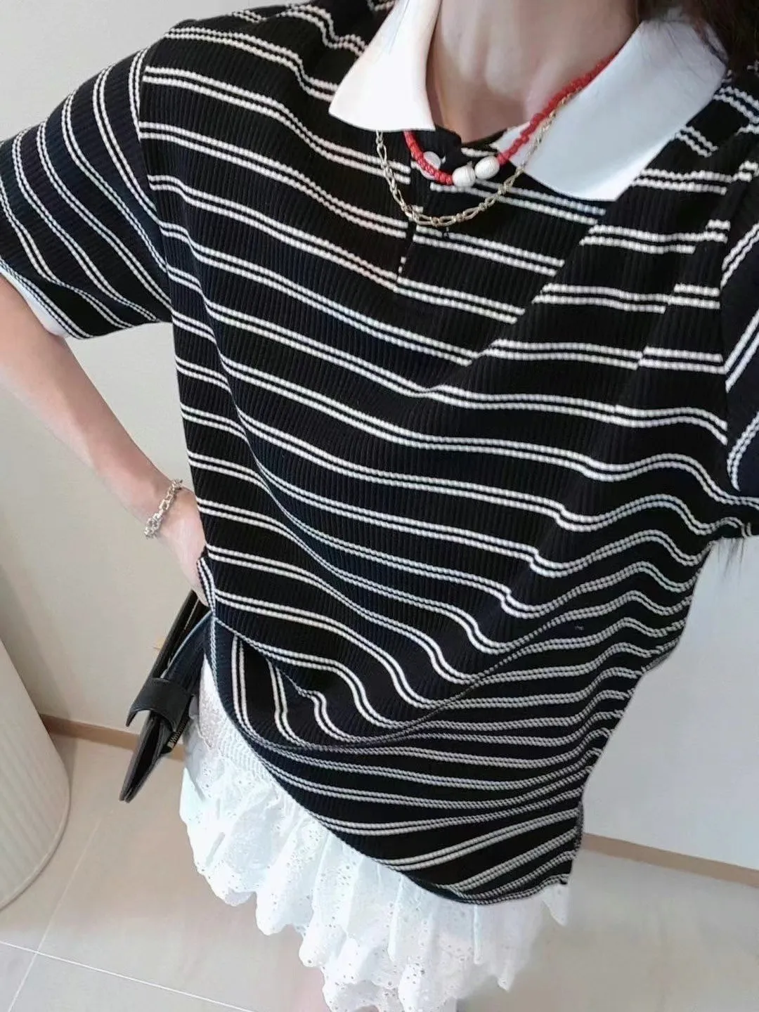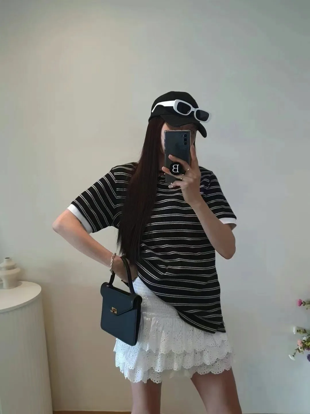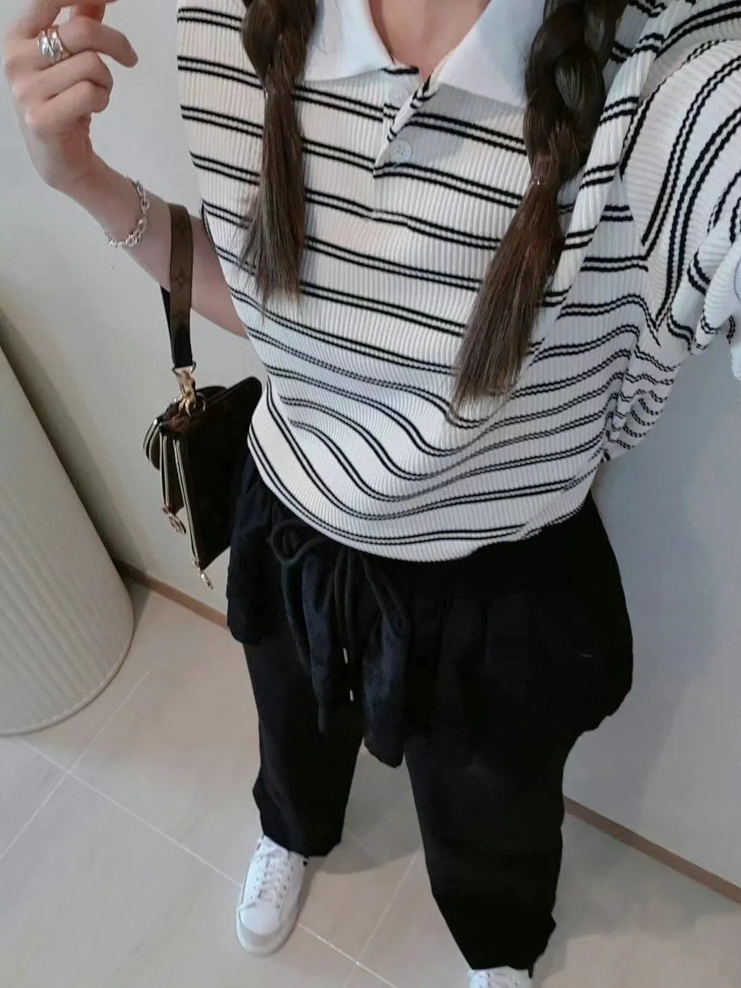 CM469長版條紋POLO衫 白 黑 官網價$990 線上價$960