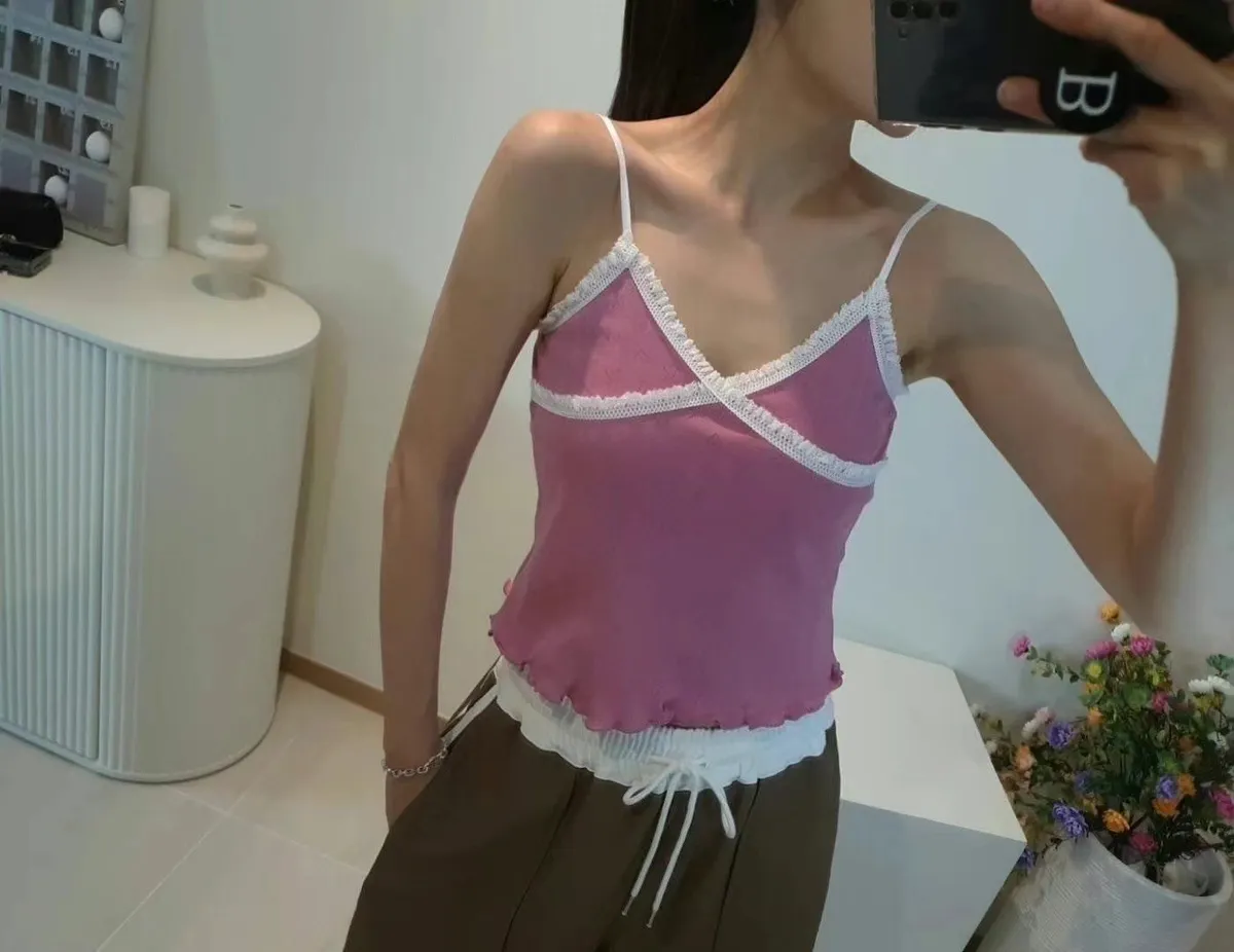 CM472柔軟交叉蕾絲細肩帶背心 白 粉 黑 官網價$570 線上價$530