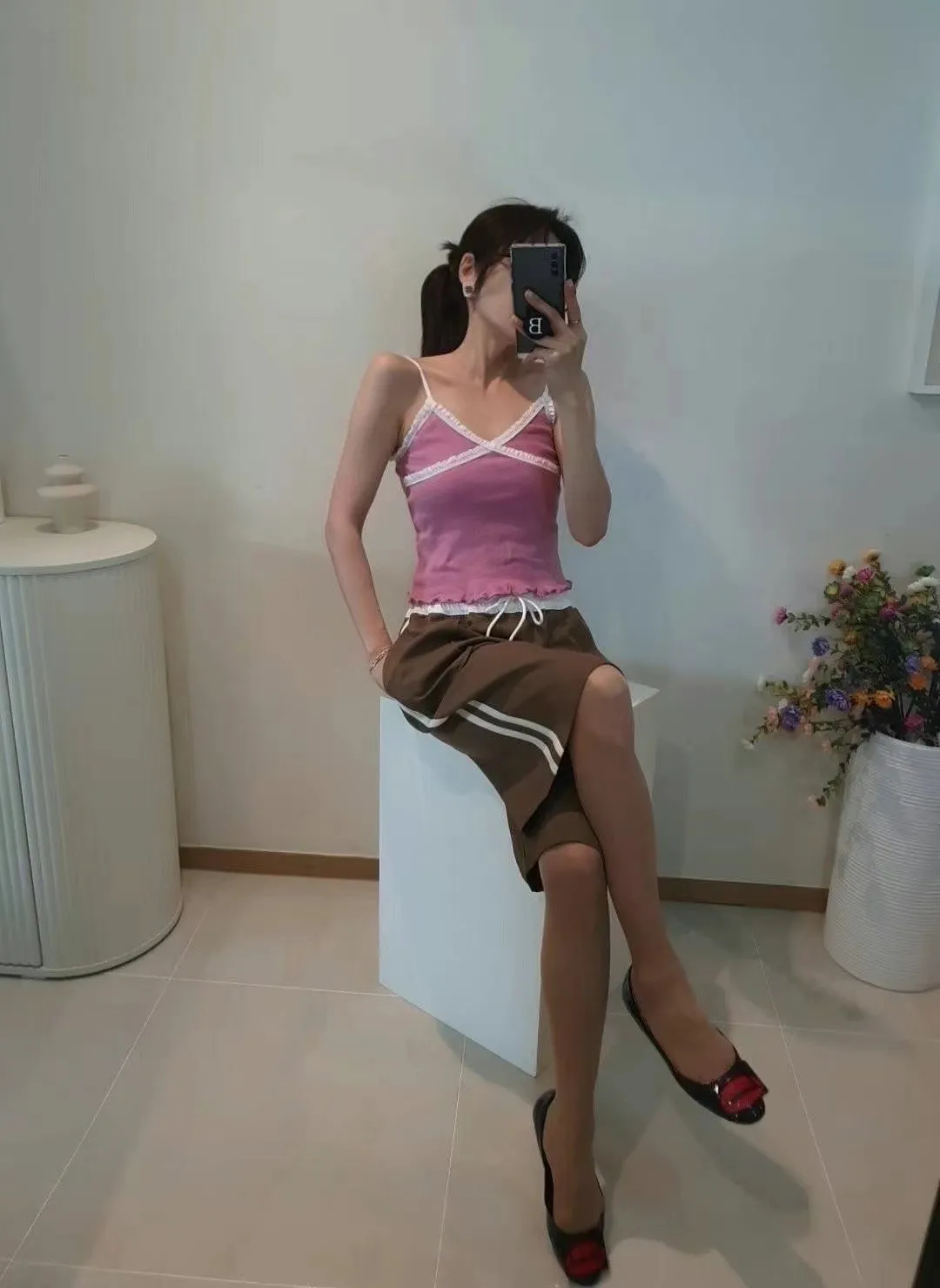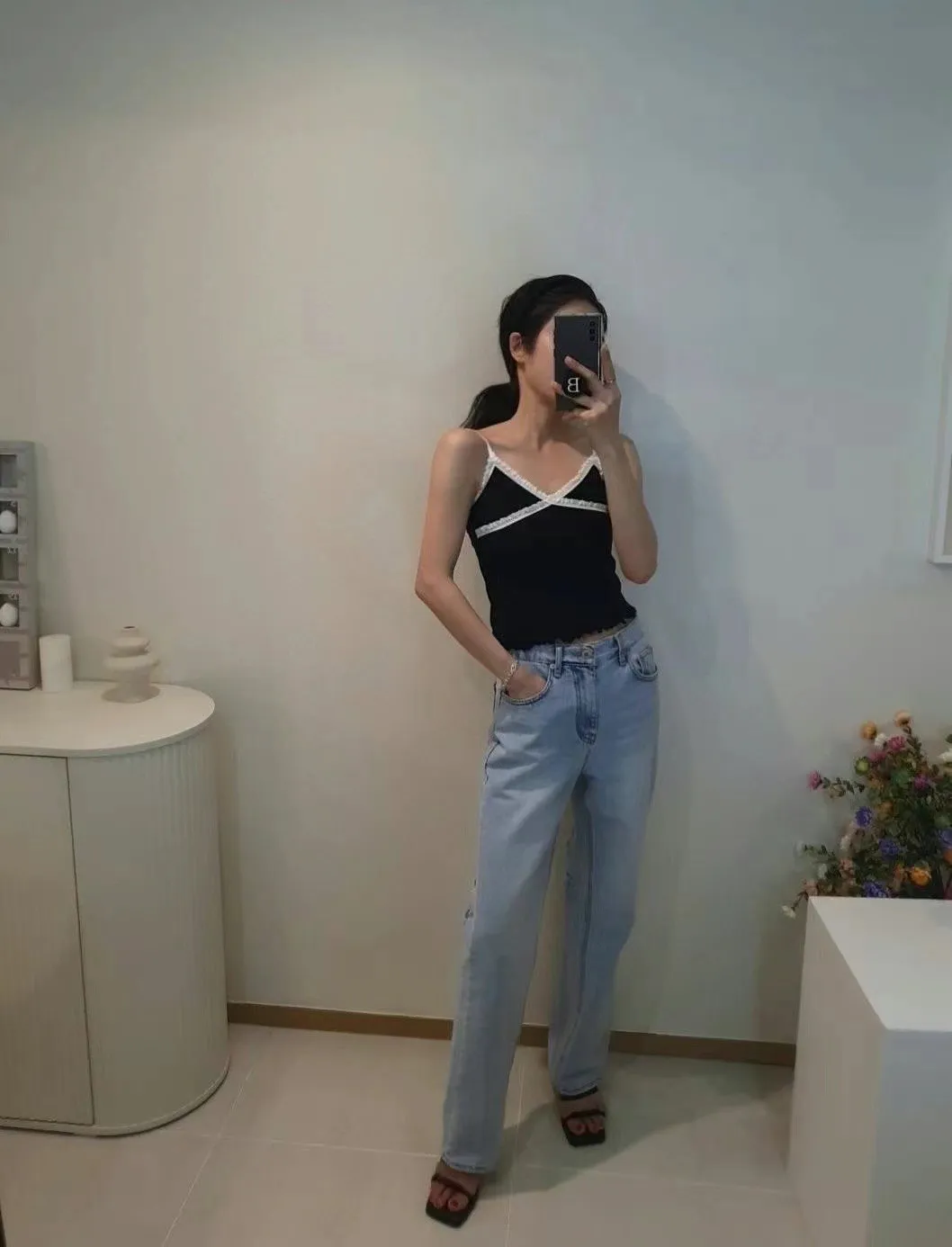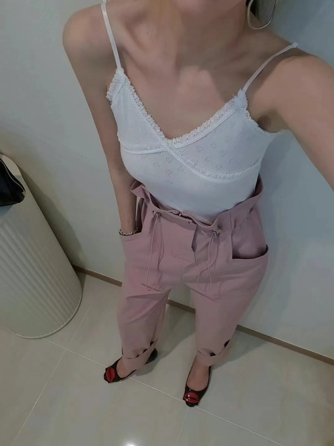棉 薄款 極柔軟 面料是隱約細細簍空愛心 可調肩帶 下擺木耳滾邊