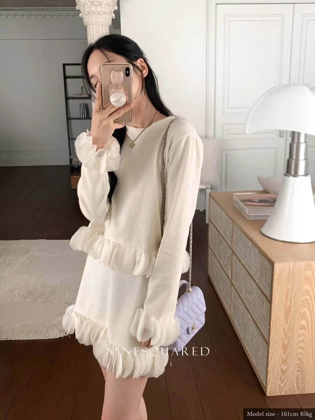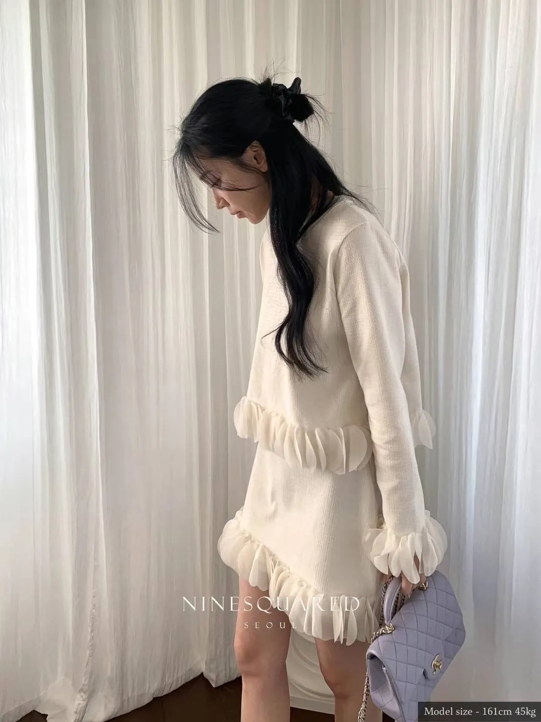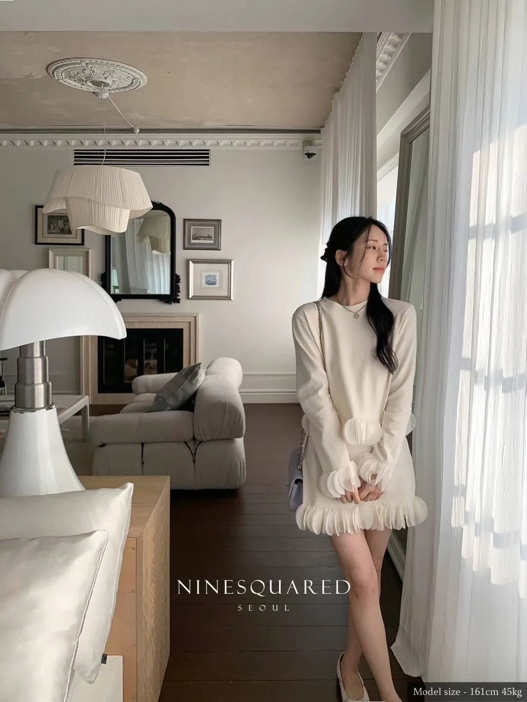 棉+聚酯 有微微珠光面料 飄逸手袖下擺 小千金風格 厚度1.5