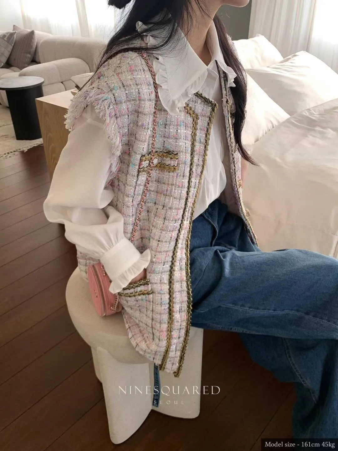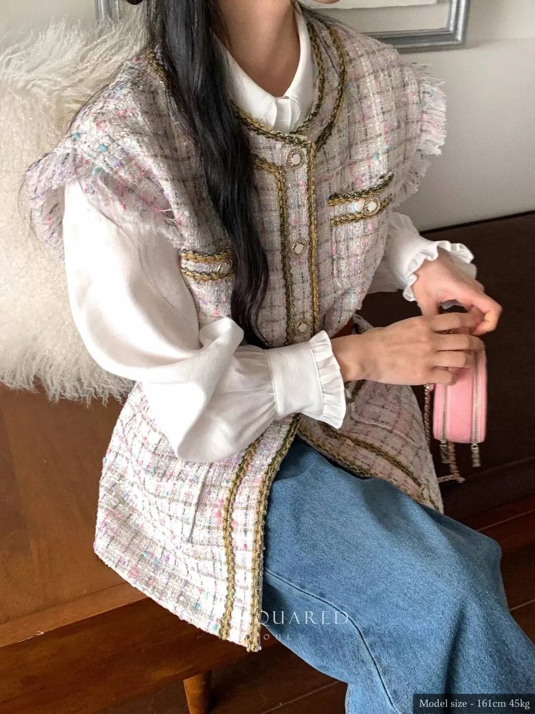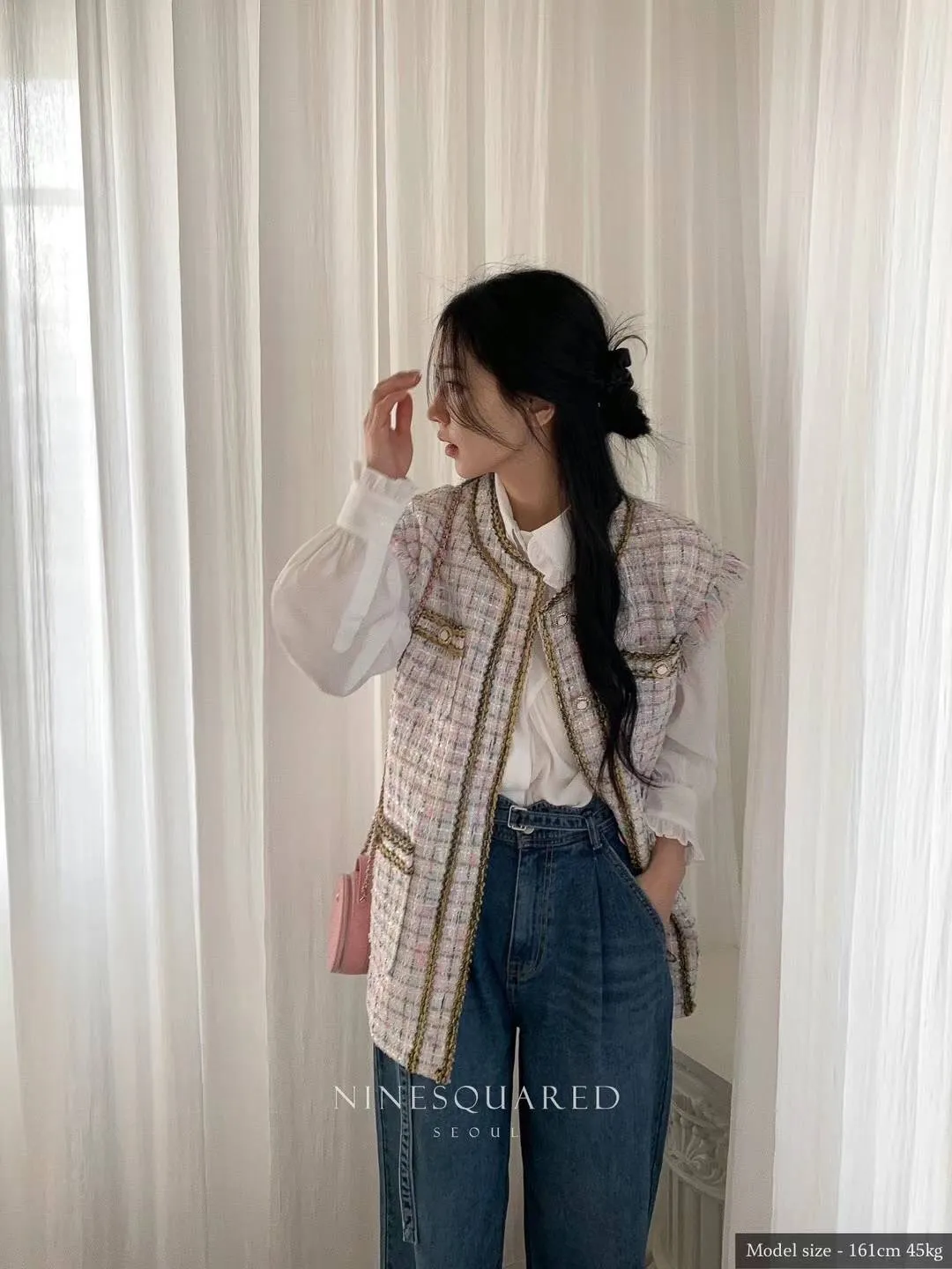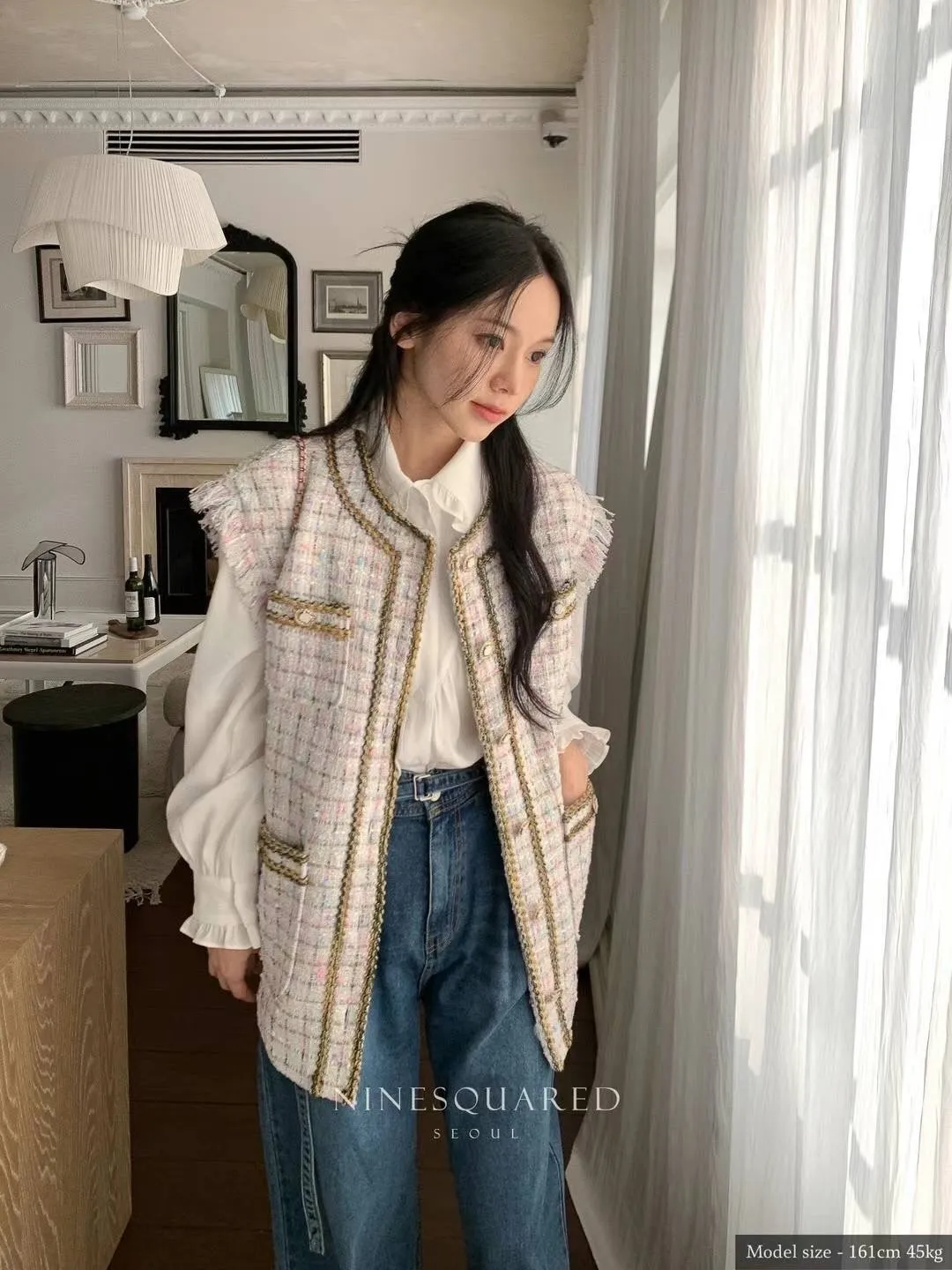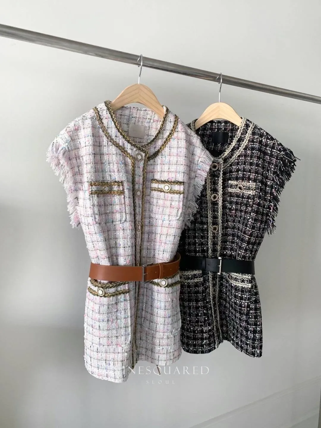 CM487 高級小香風混織背心(附綁帶) 黑 粉 官網價$3350 線上價$3320