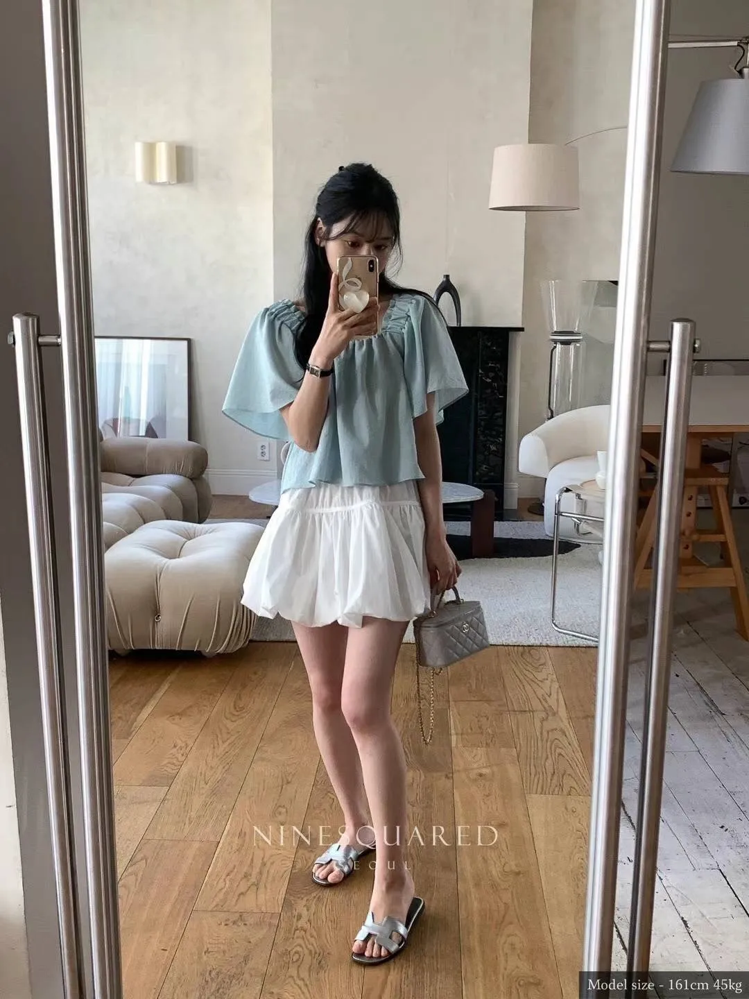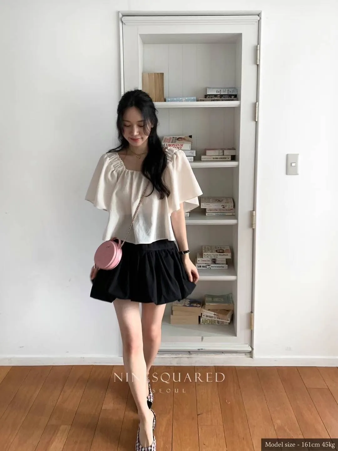 CM495花苞蓬蓬長腿短裙 白 黑 官網價$1190 線上價$1160