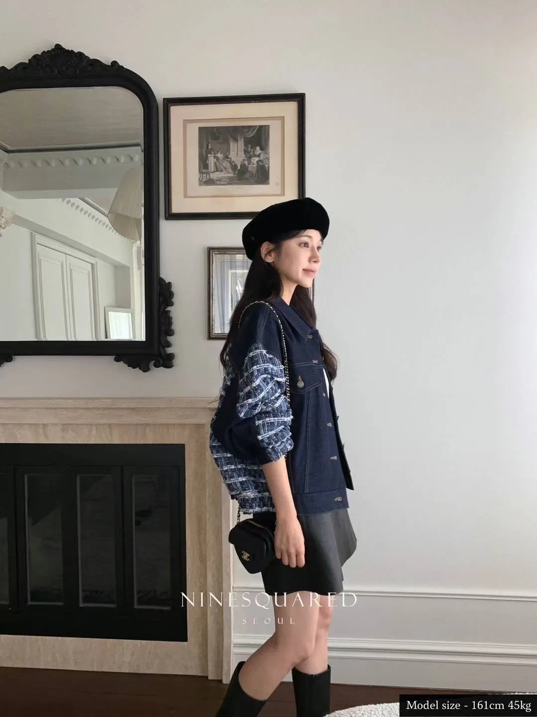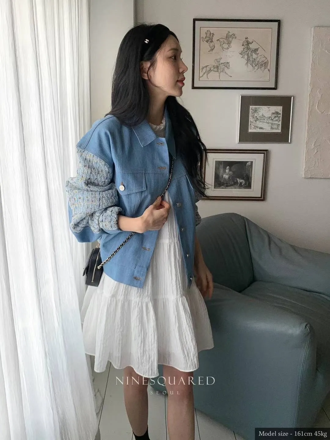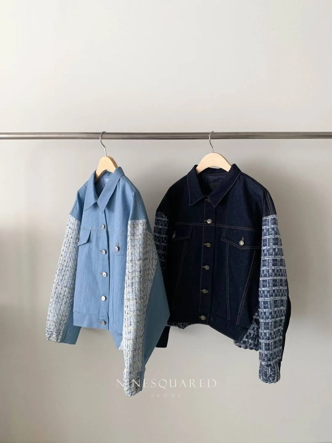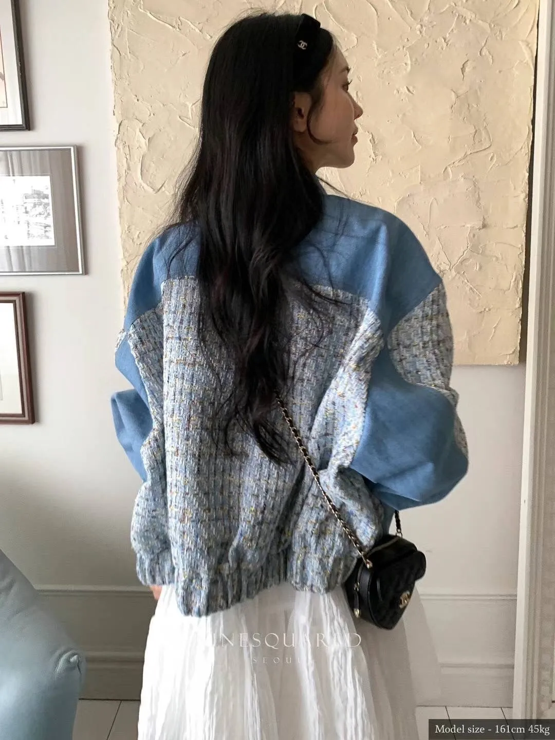 CM500許願款丹寧拼接小香風美袖外套 淺藍 深藍 官網價$2920 線上價$2890