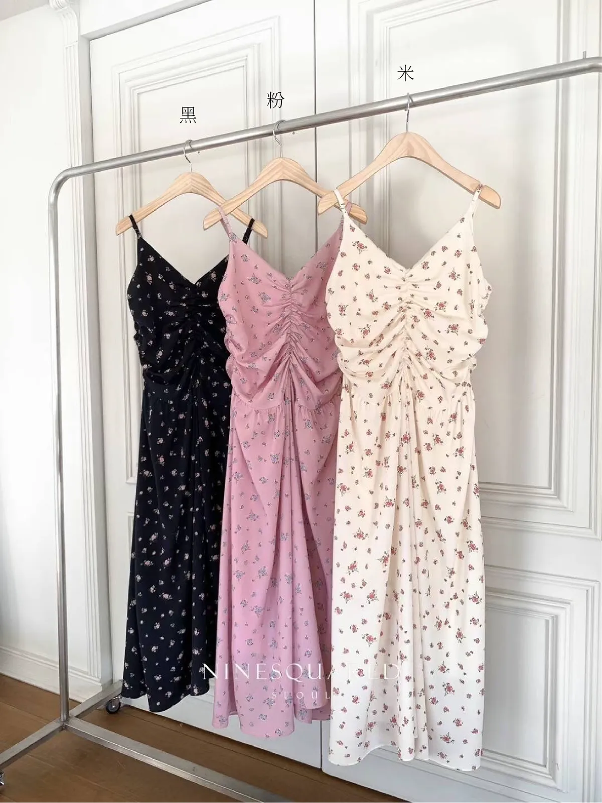 CM504許願款涼感V領小碎花洋裝 粉 黑 米 官網價$1720 線上價$1690
