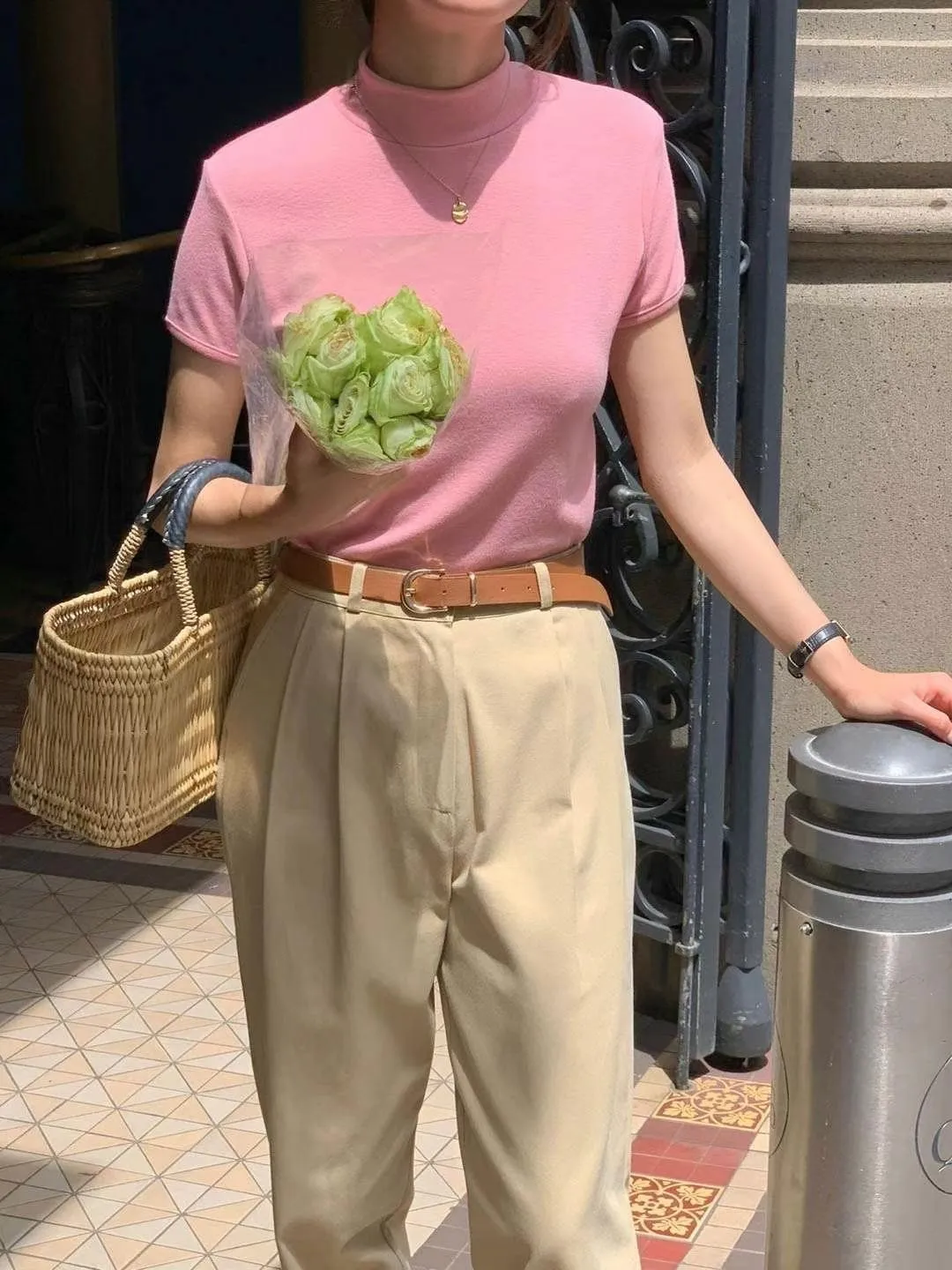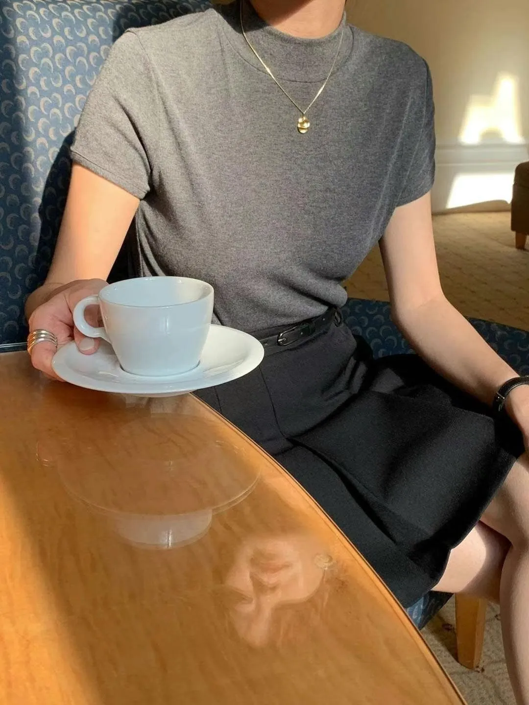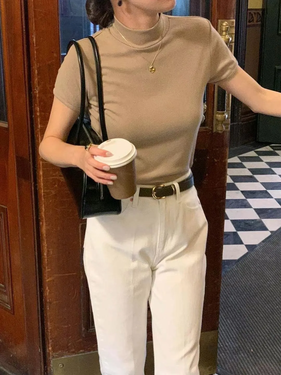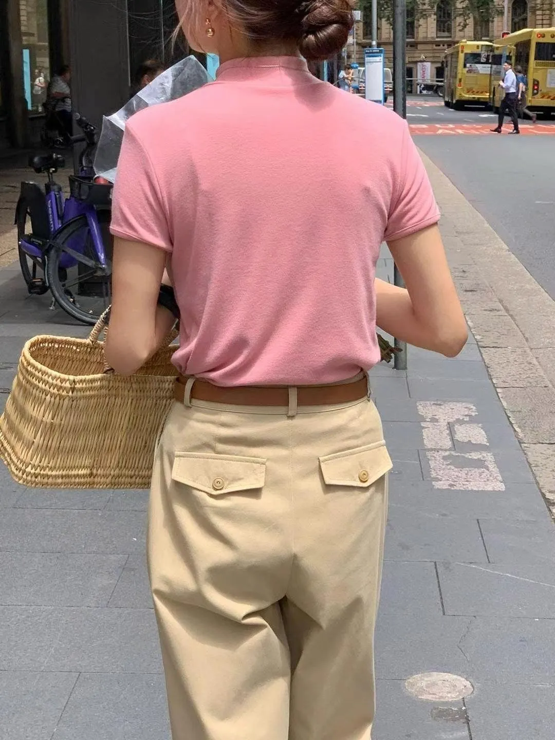 CM512小短領舒適純色短袖上衣 白 粉 藍 灰 奶茶 官網價$380 線上價$350