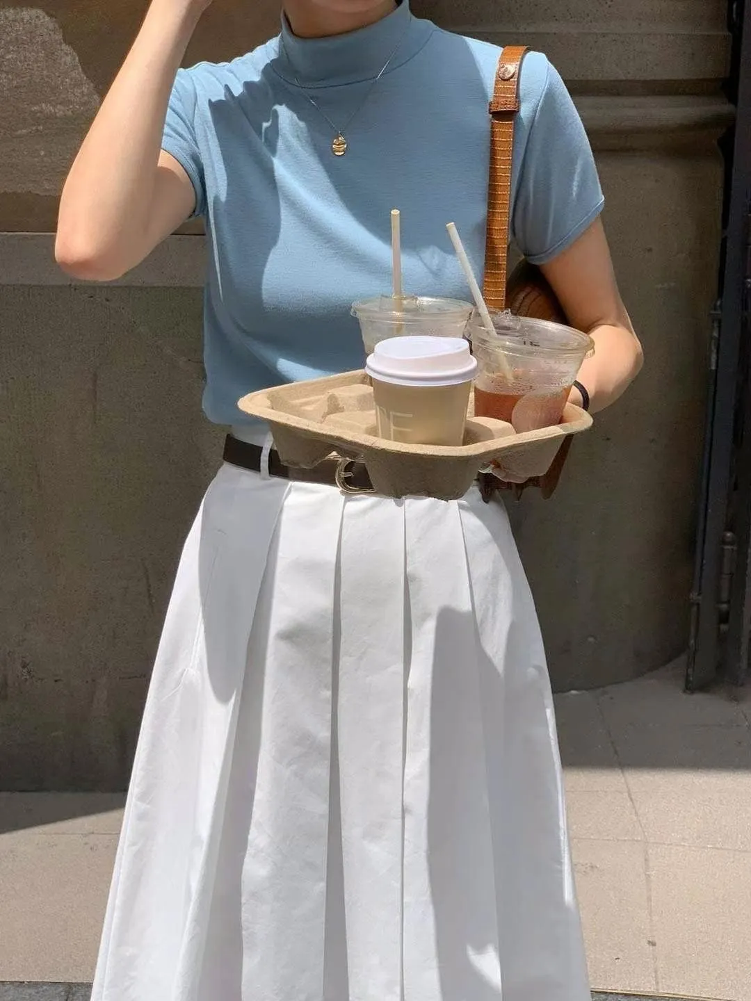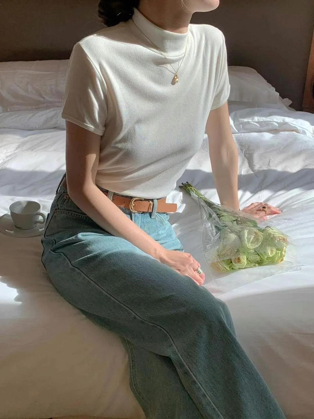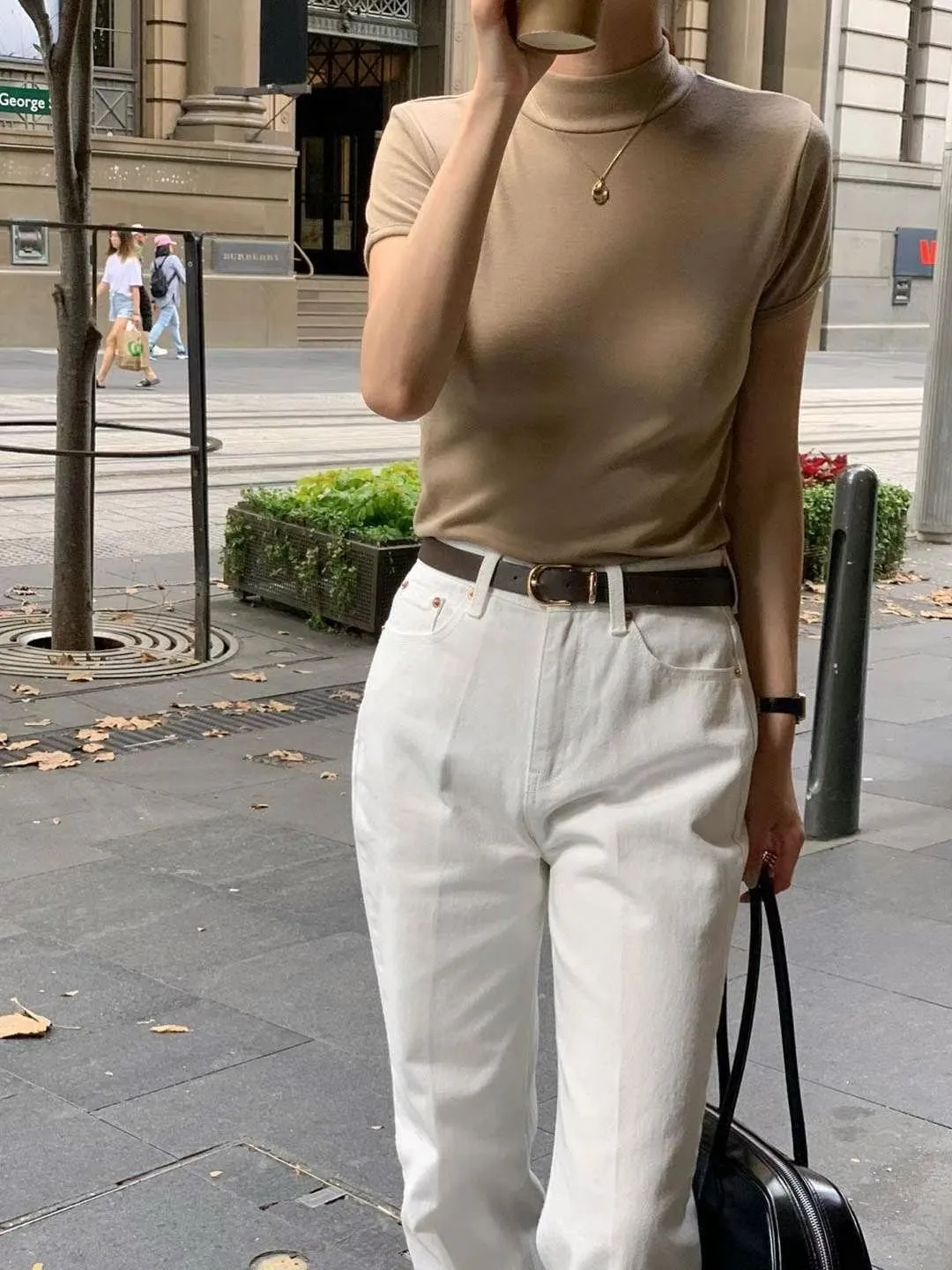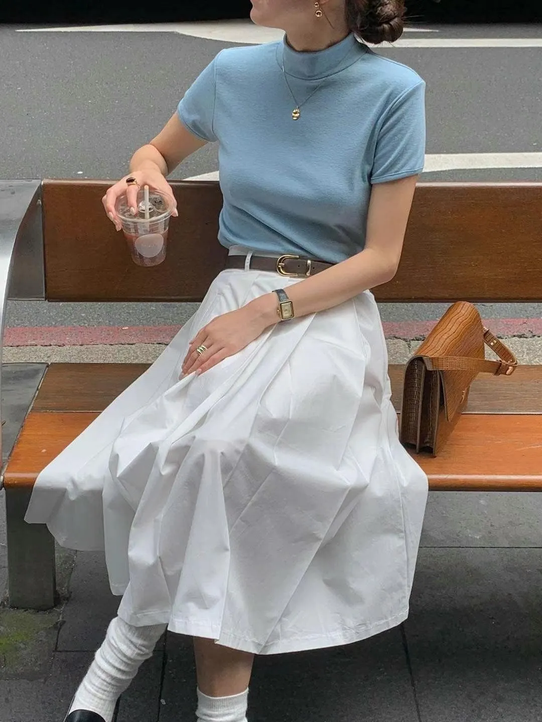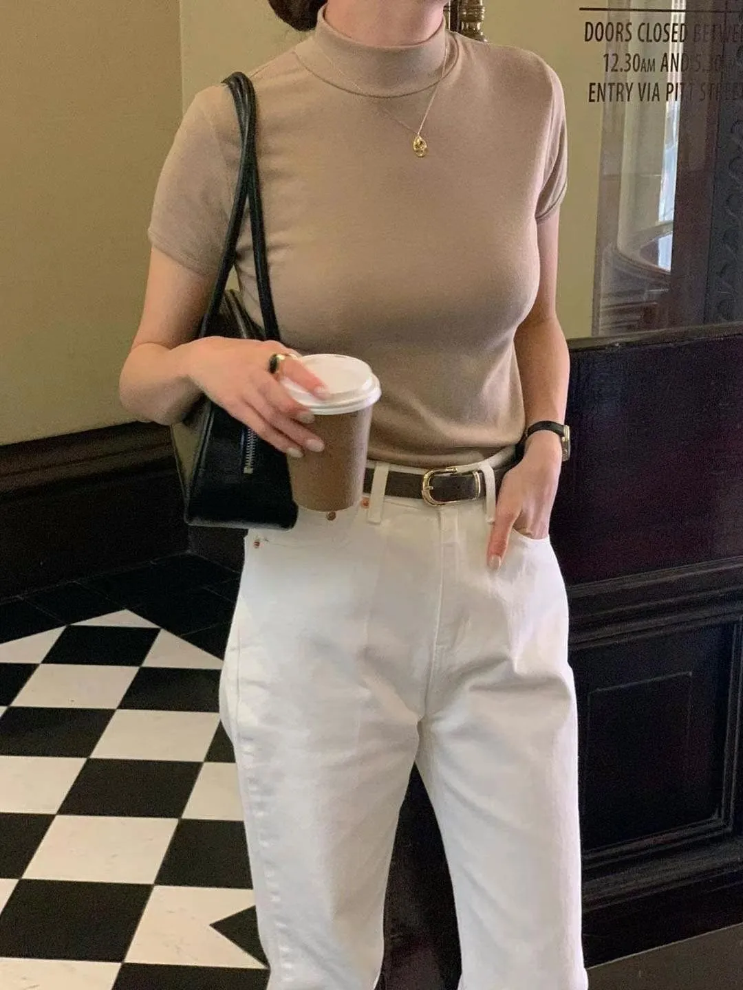 CM512小短領舒適純色短袖上衣 白 粉 藍 灰 奶茶 官網價$380 線上價$350