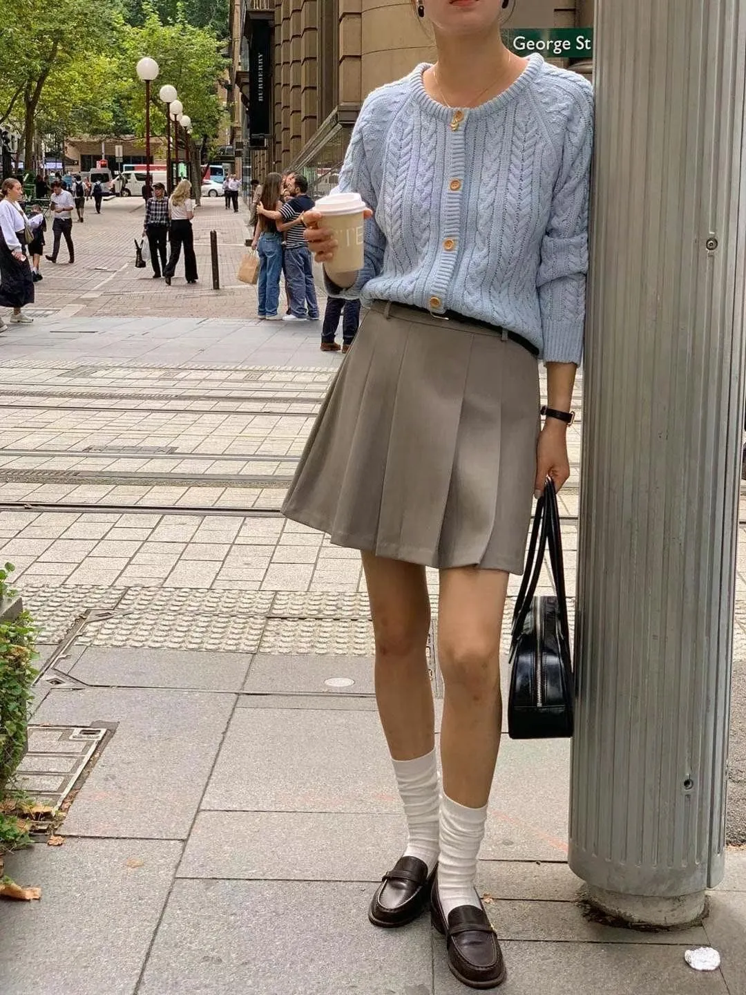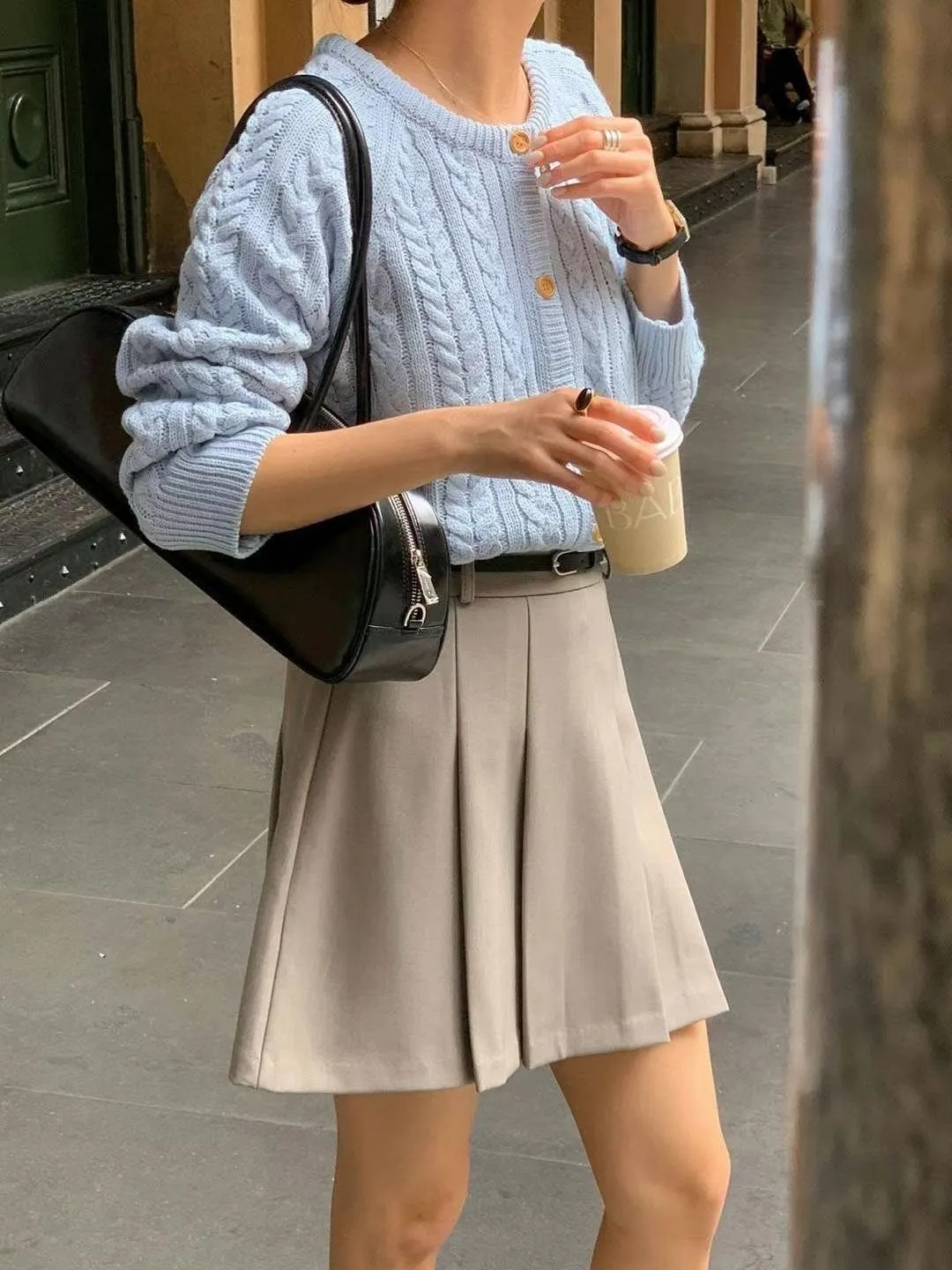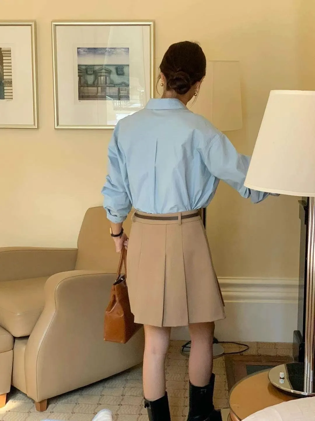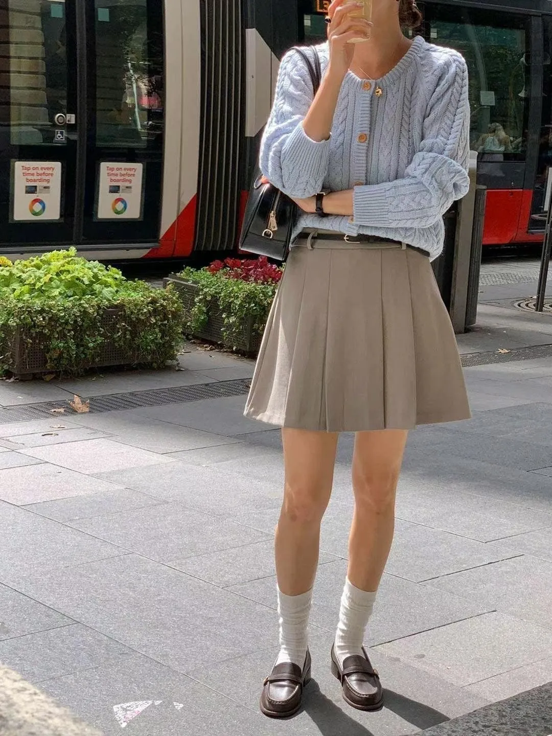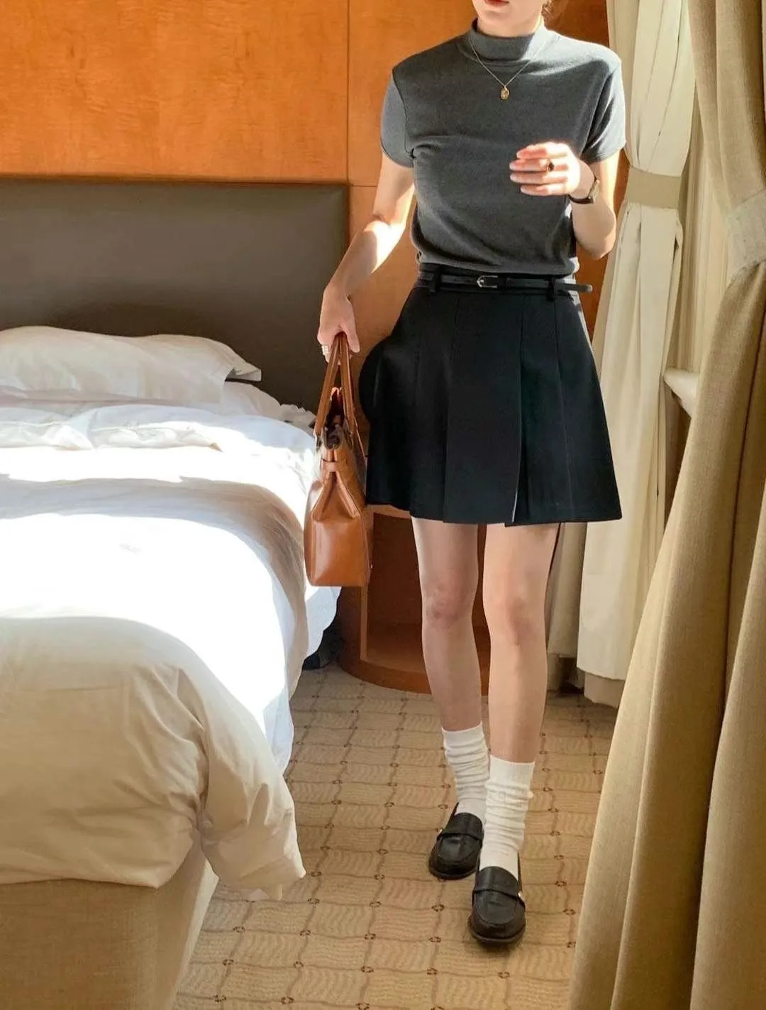 CM513高質感寬百褶短裙(附皮帶) 灰 黑 奶茶 S M 官網價$890 線上價$860