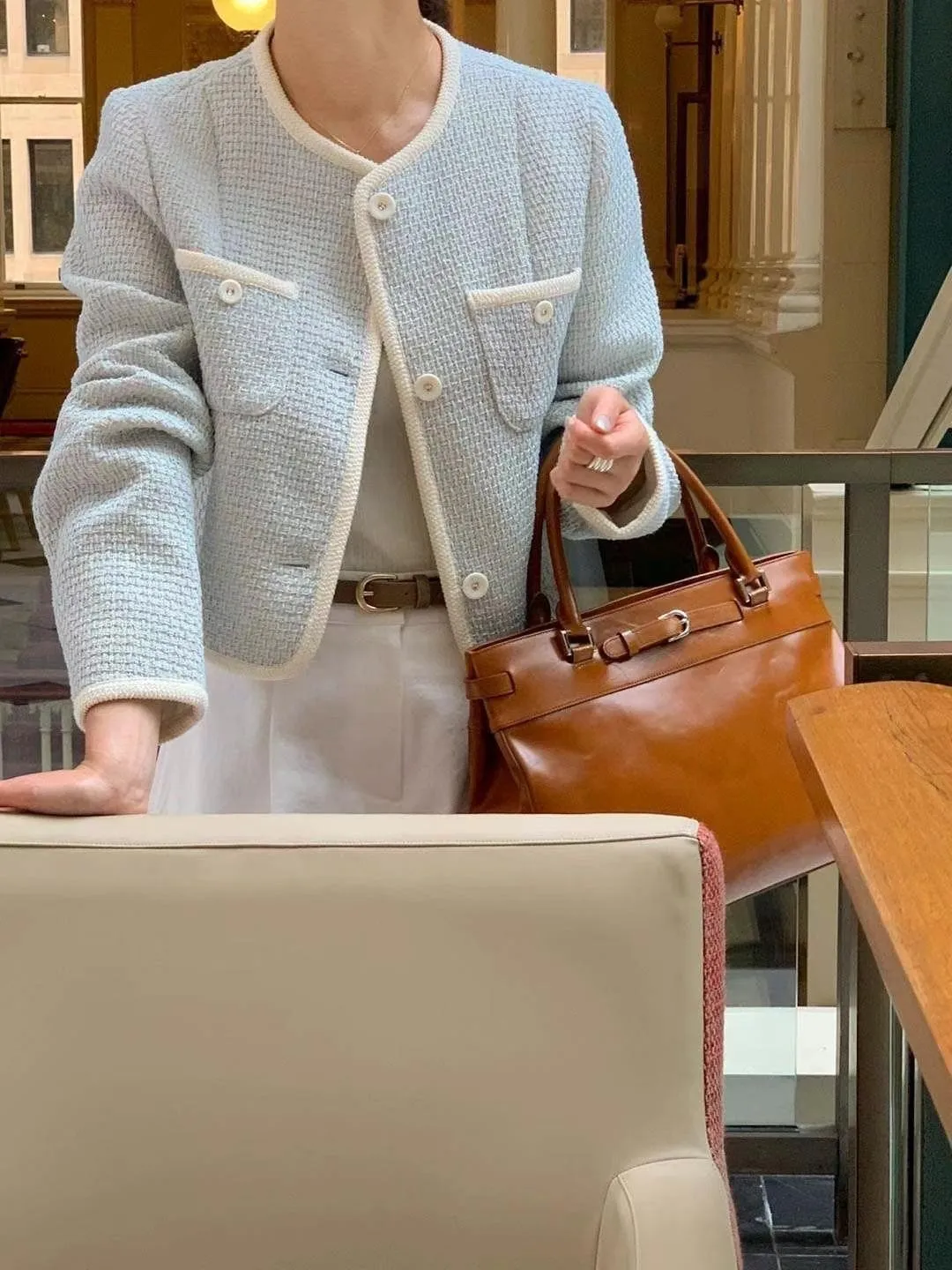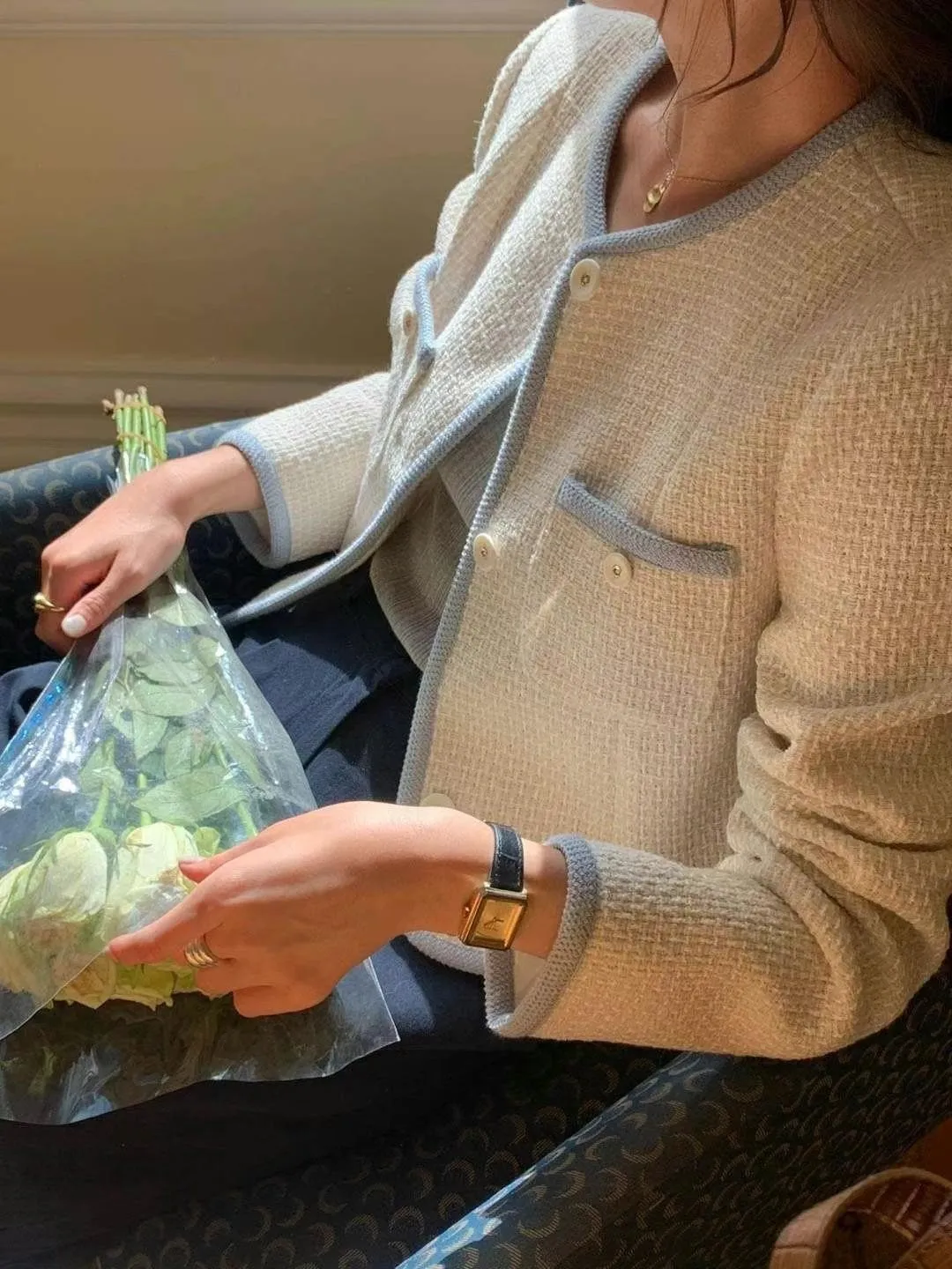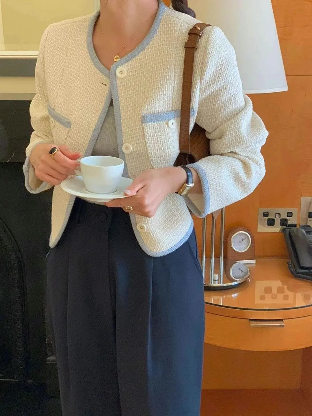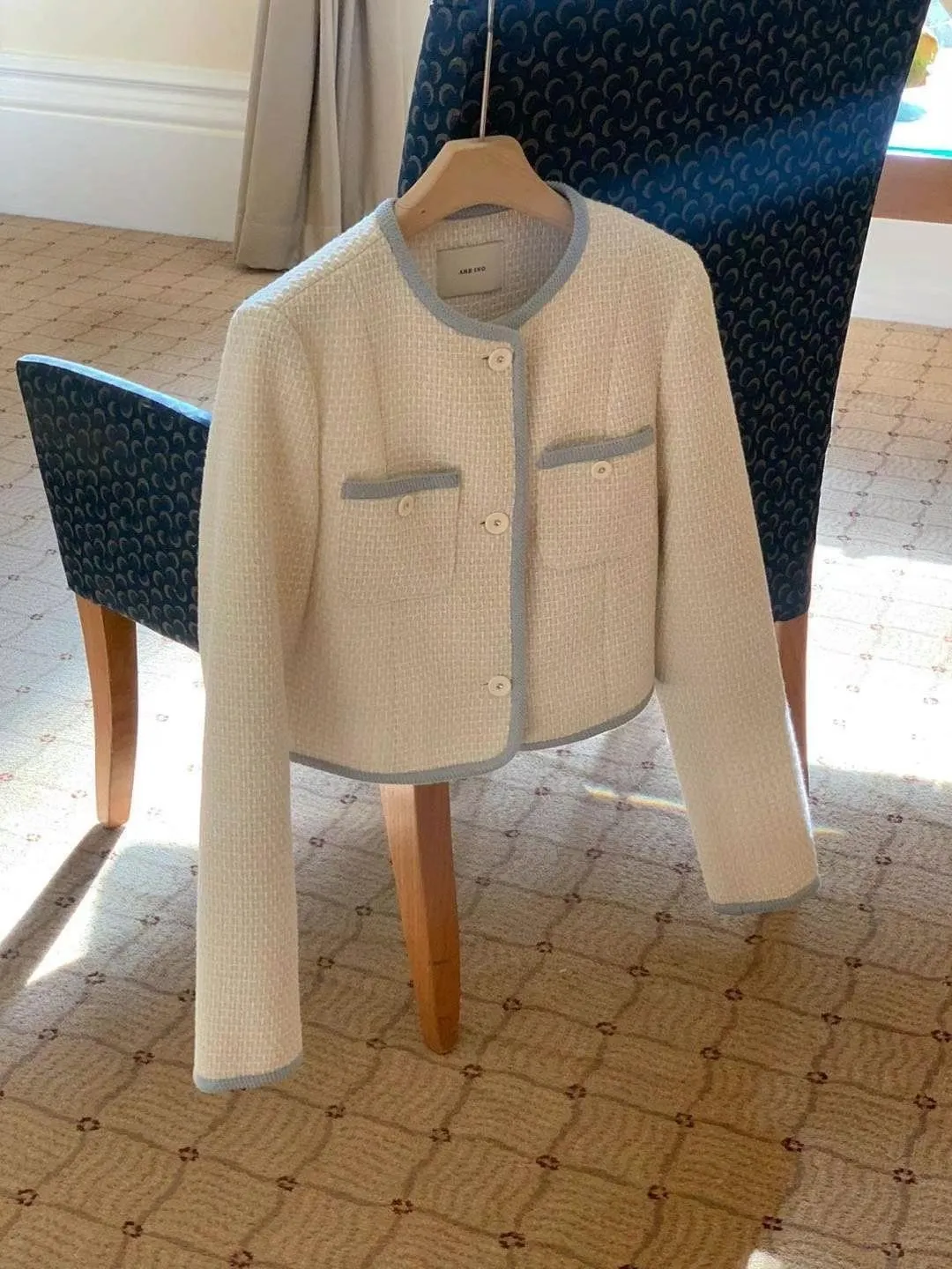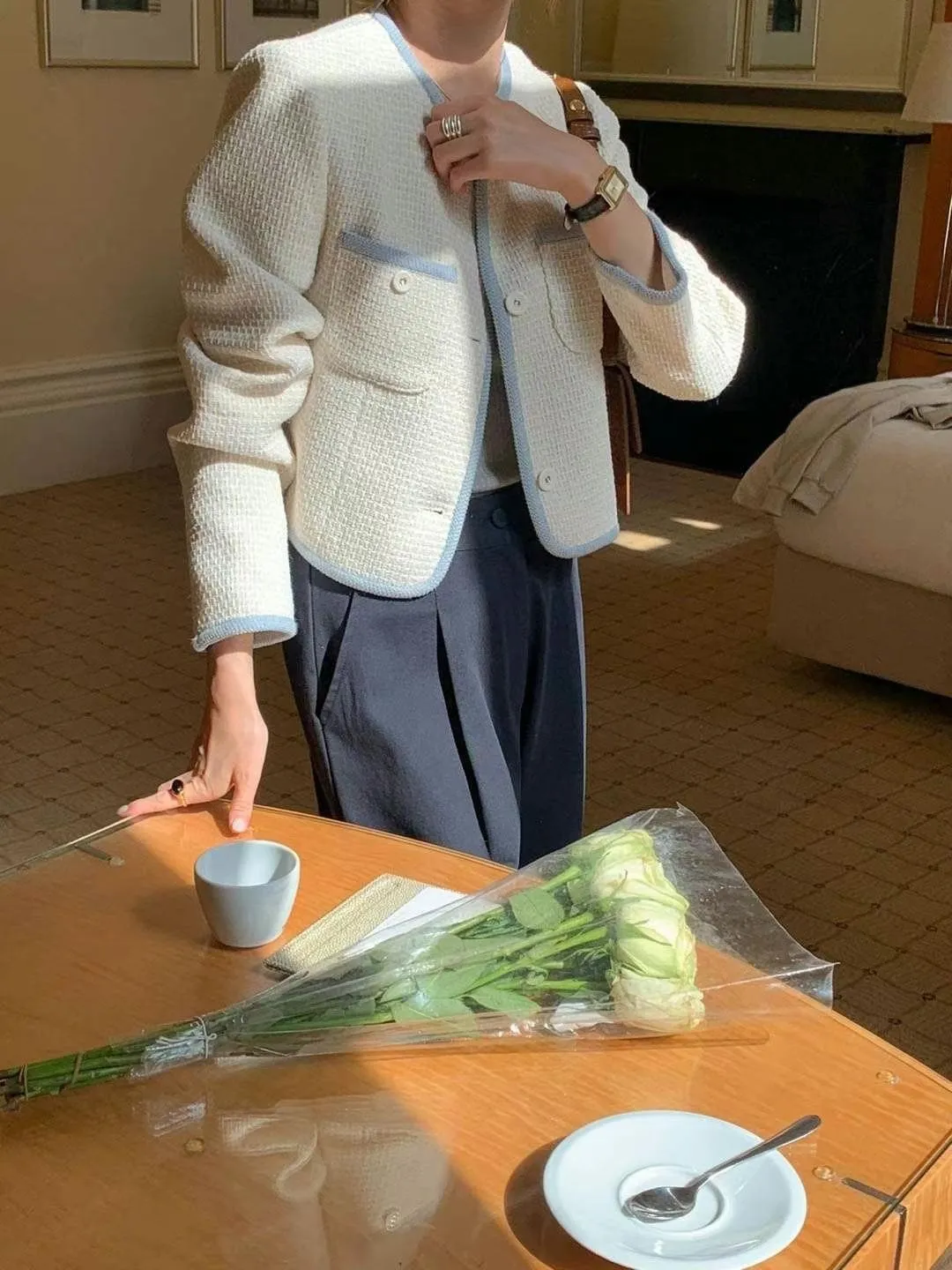 CM518薄款小香風外套 米 藍 官網價$1350 線上價$1320