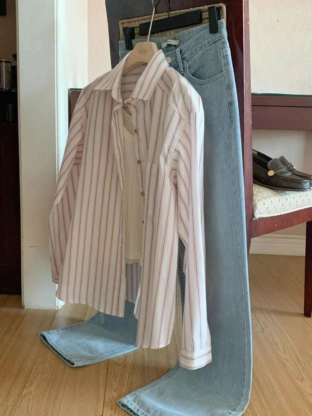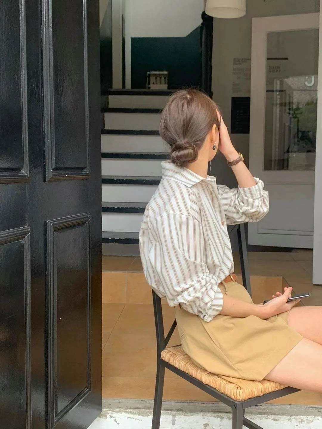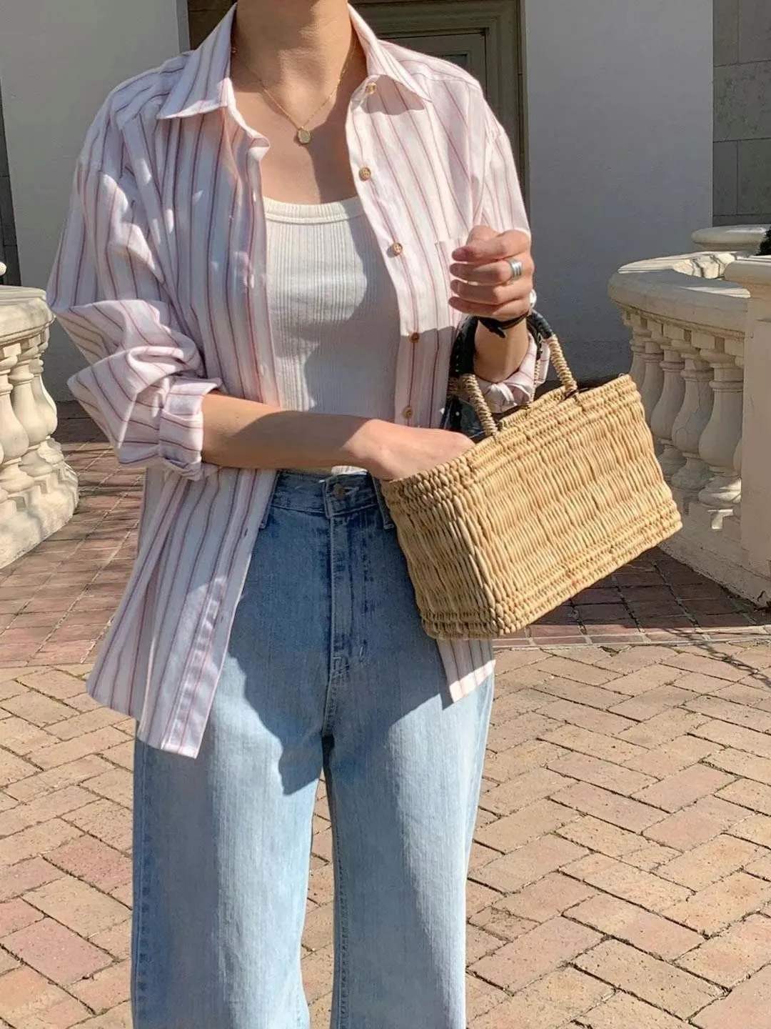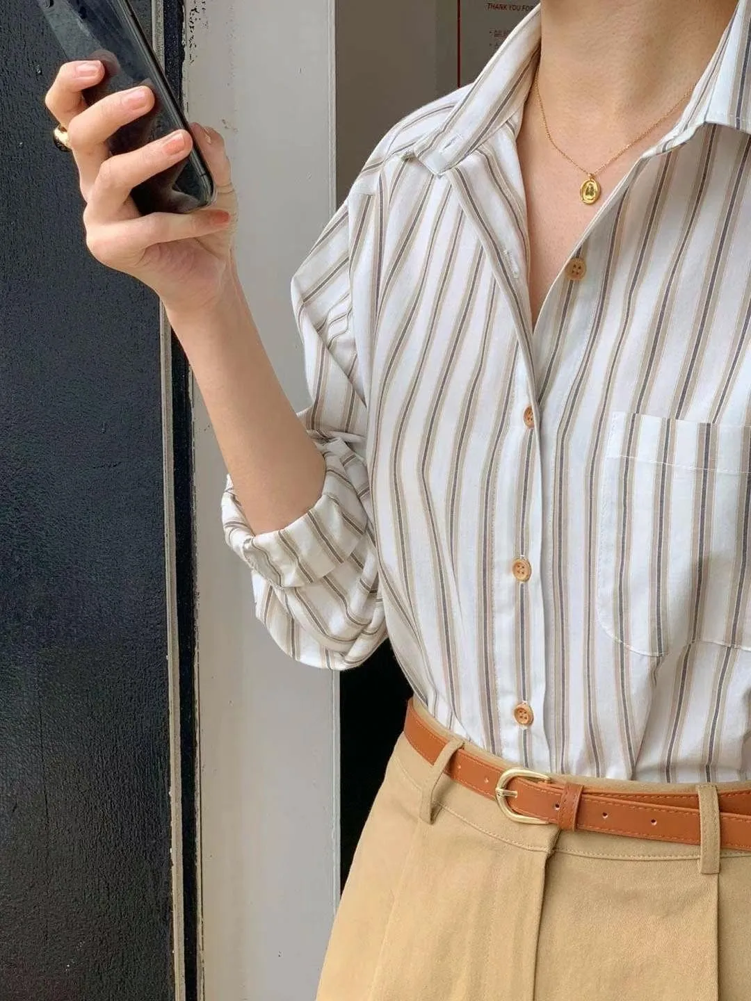 CM519薄款直條紋單口袋襯衫 米 藍 粉 官網價$660 線上價$630