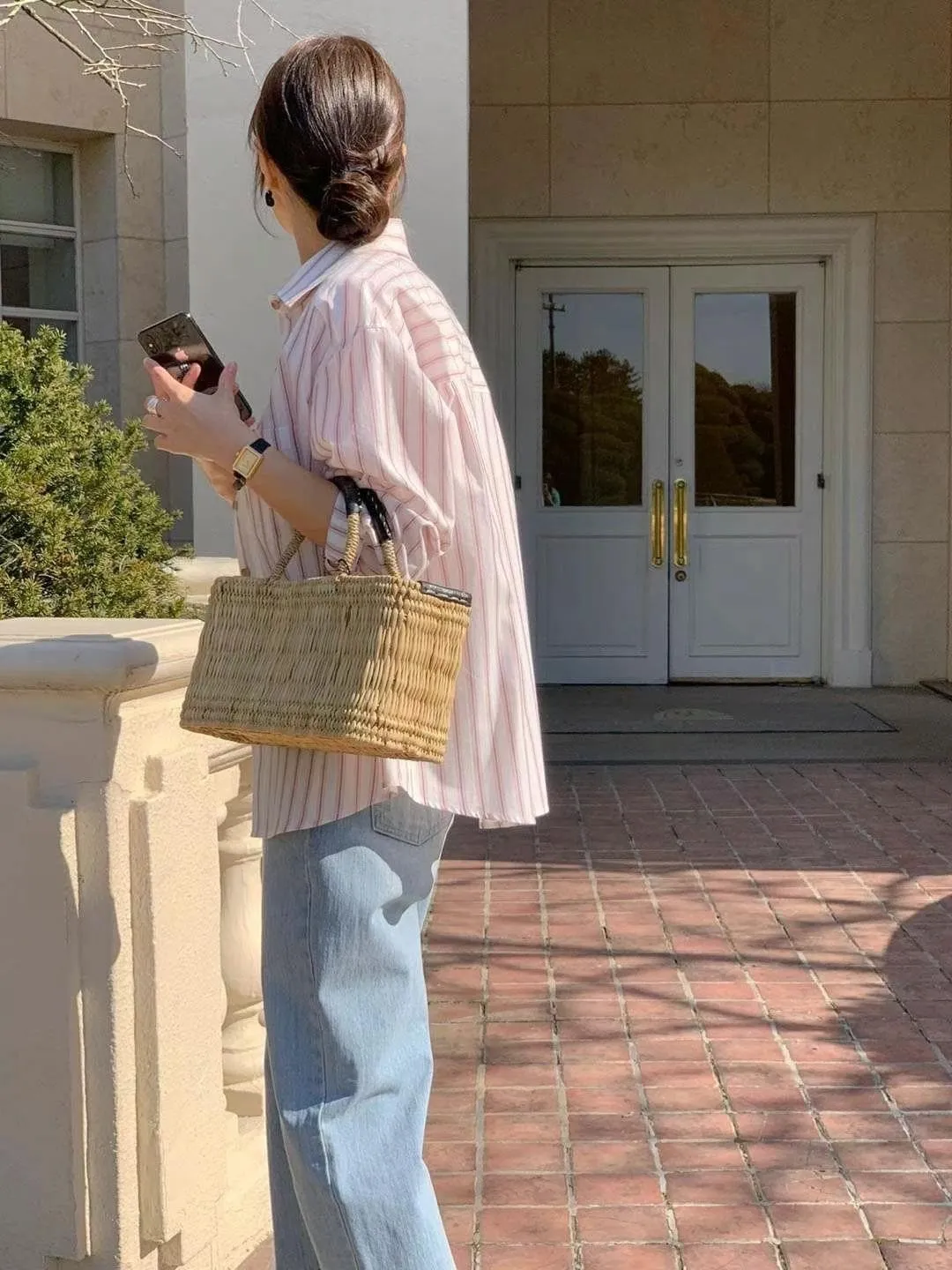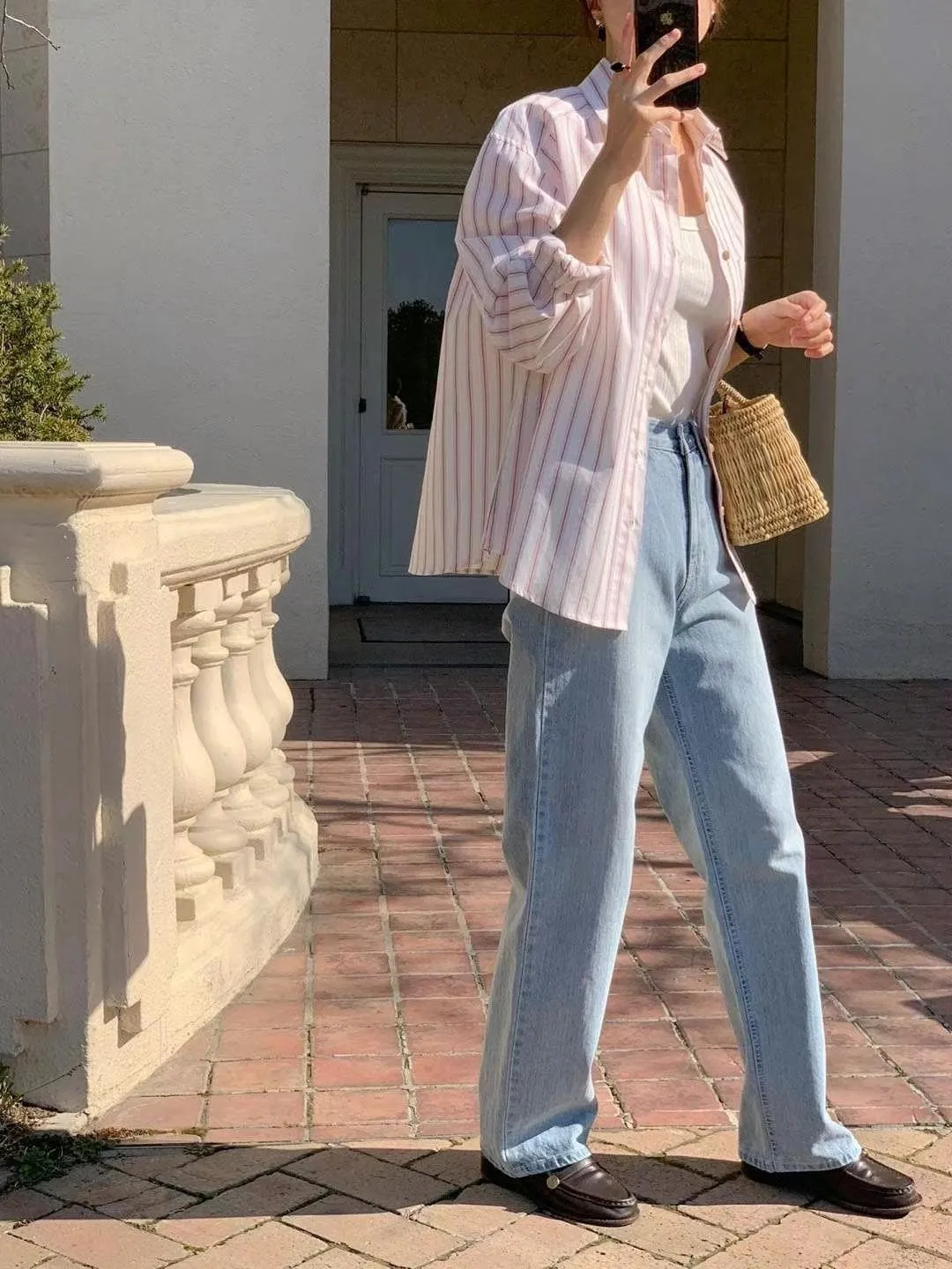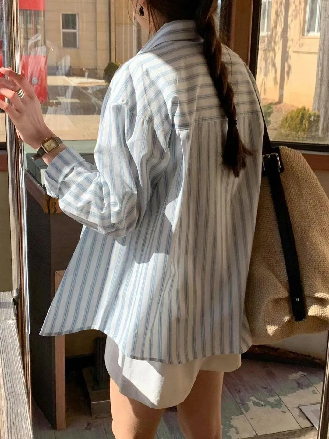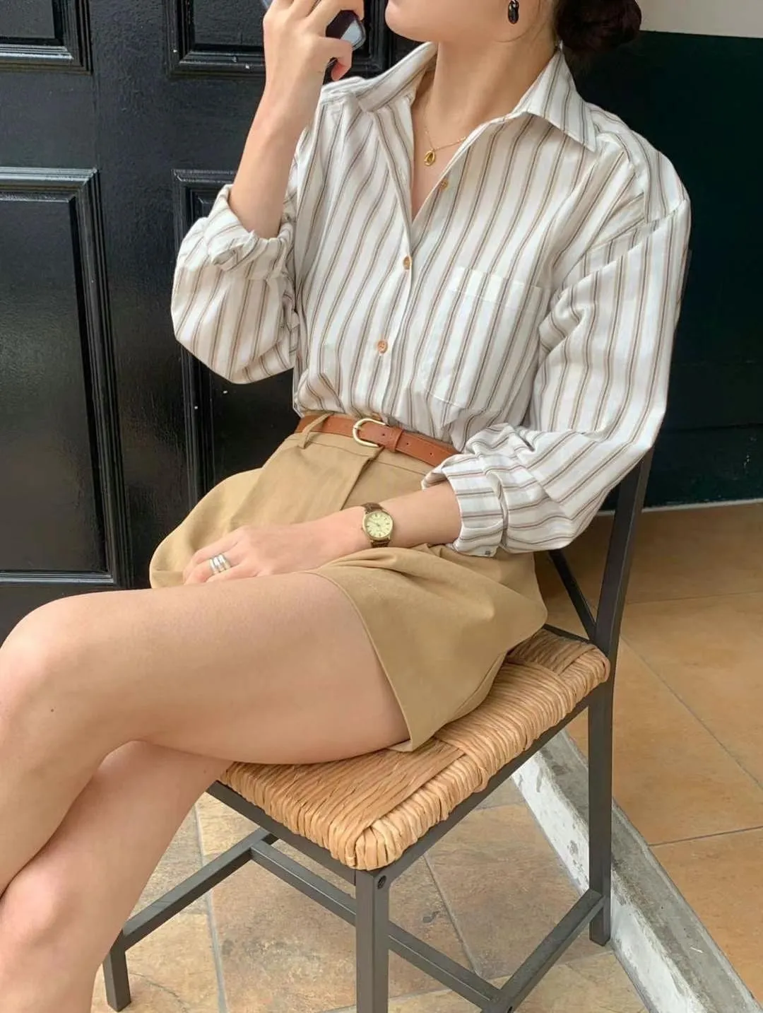 CM519薄款直條紋單口袋襯衫 米 藍 粉 官網價$660 線上價$630