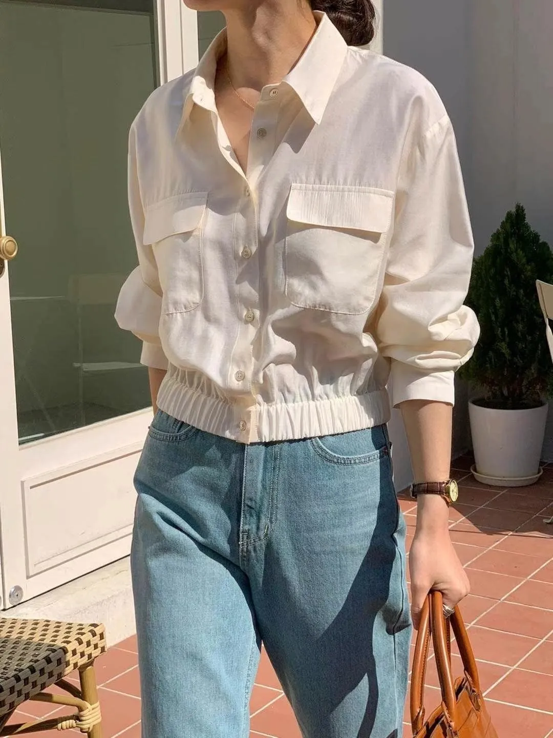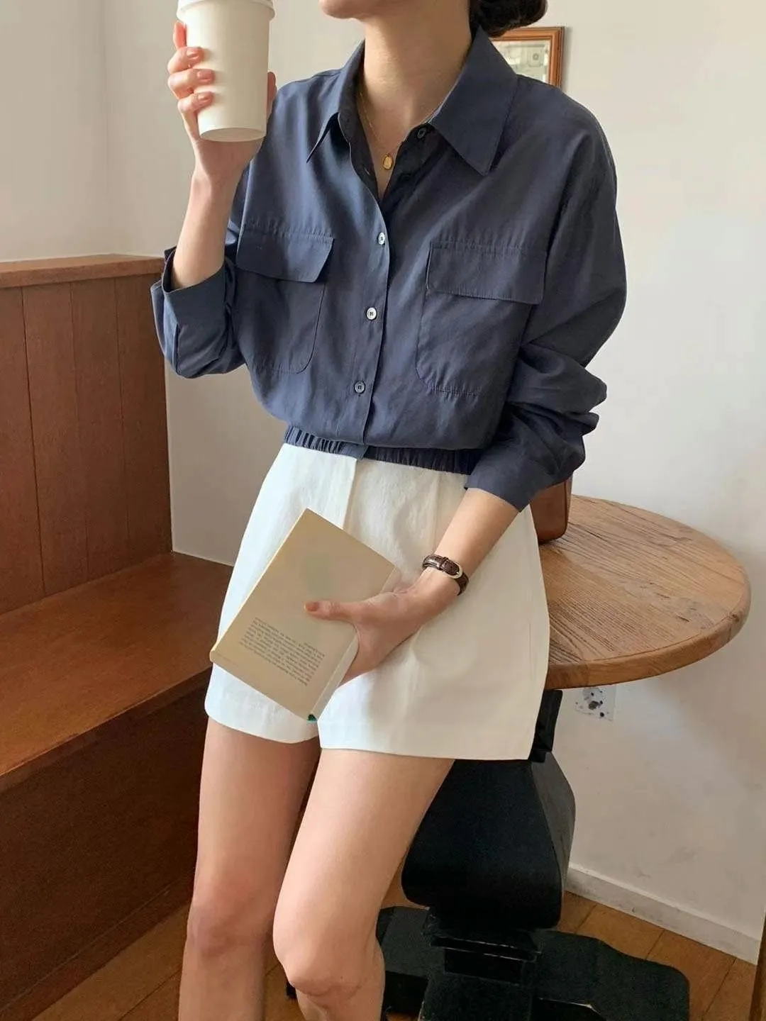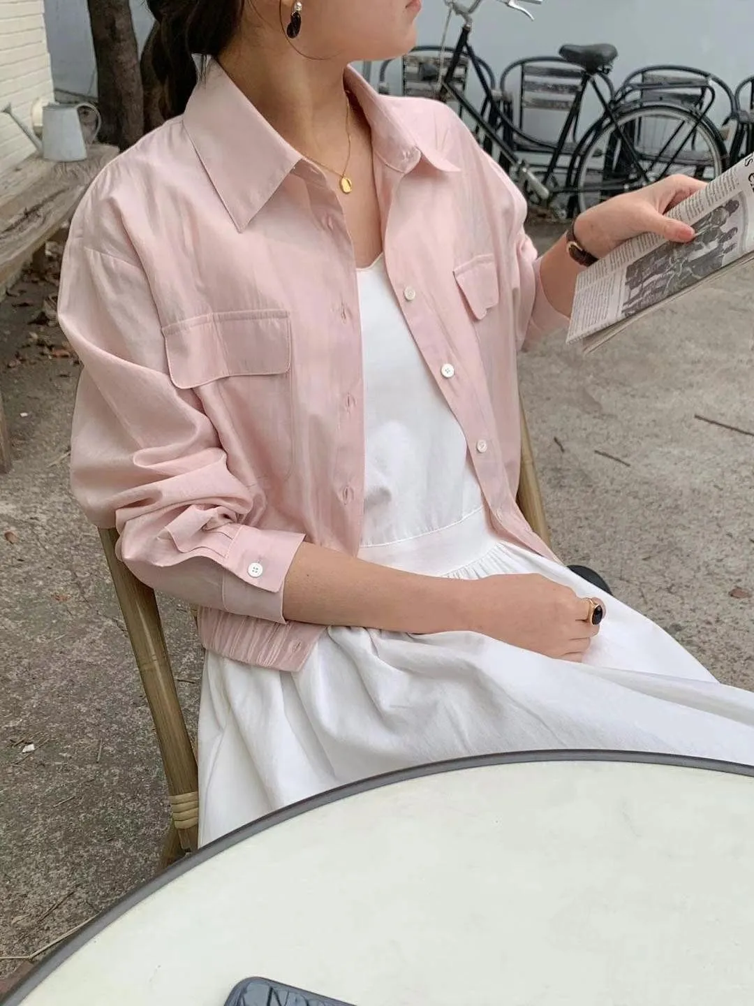 CM527天絲輕盈薄款襯衫領雙口袋短版小外套 米 粉 淺藍 深藍 官網價$980 線上價$950