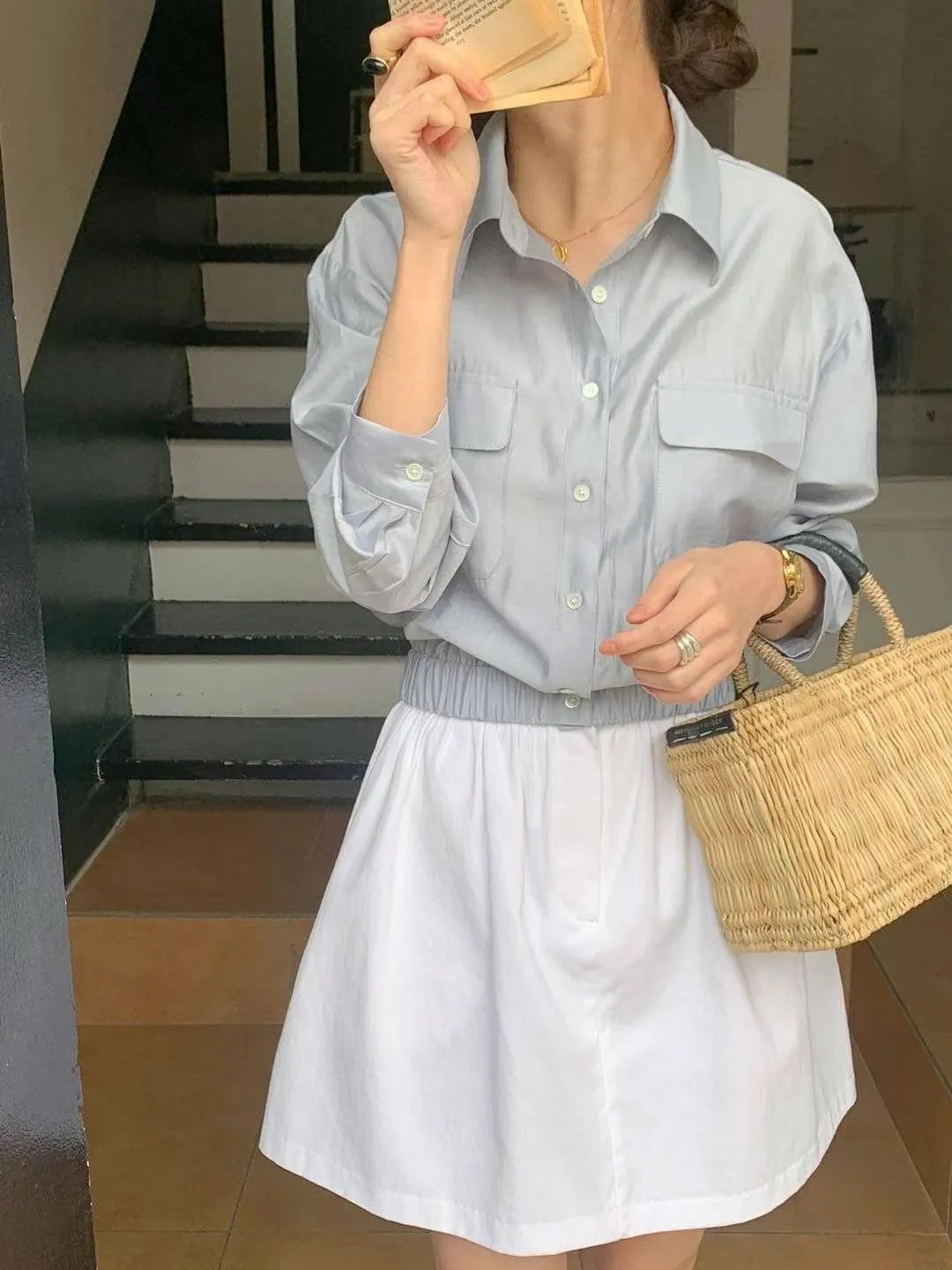以下淺藍色穿搭👇🏻
