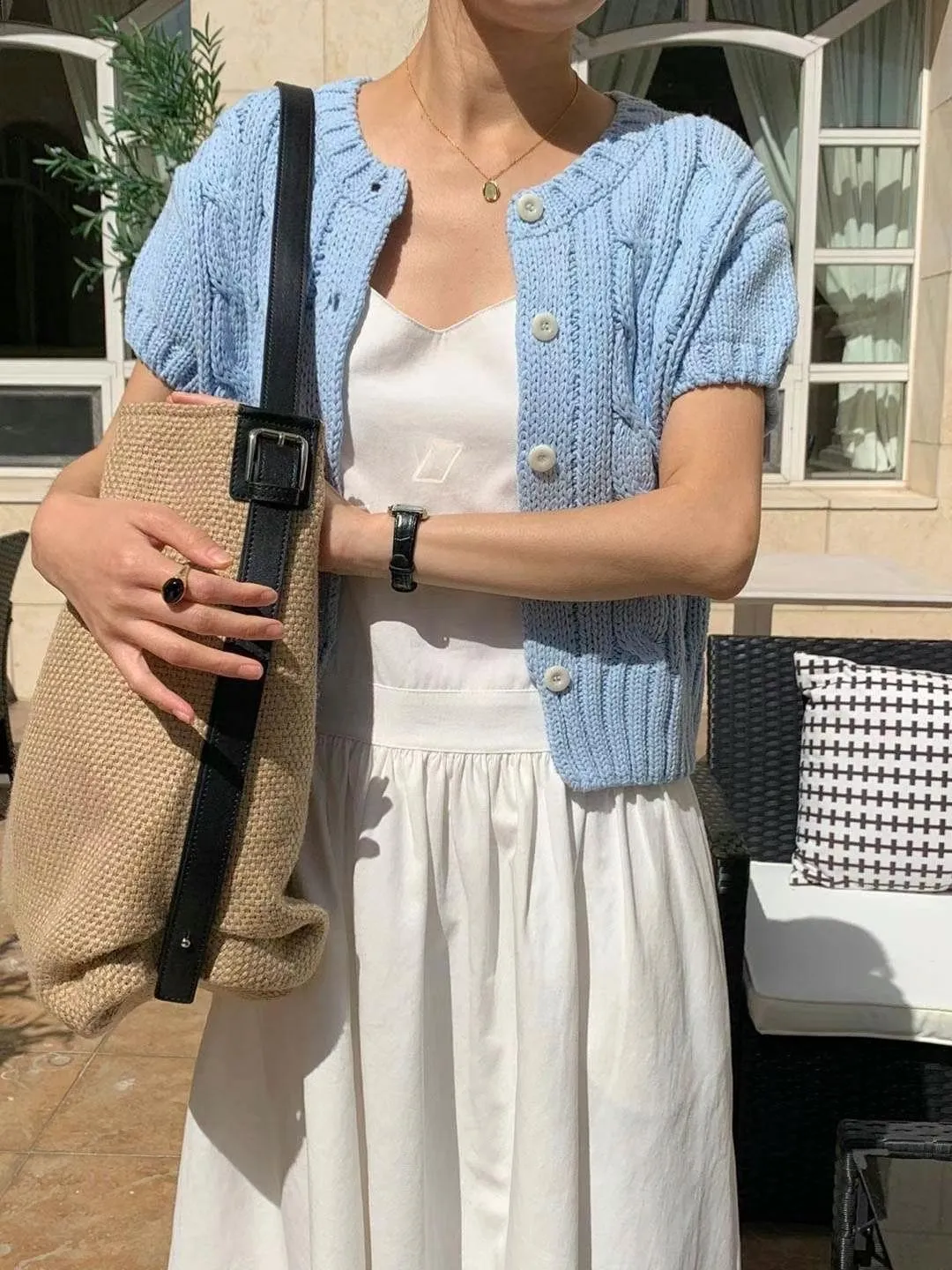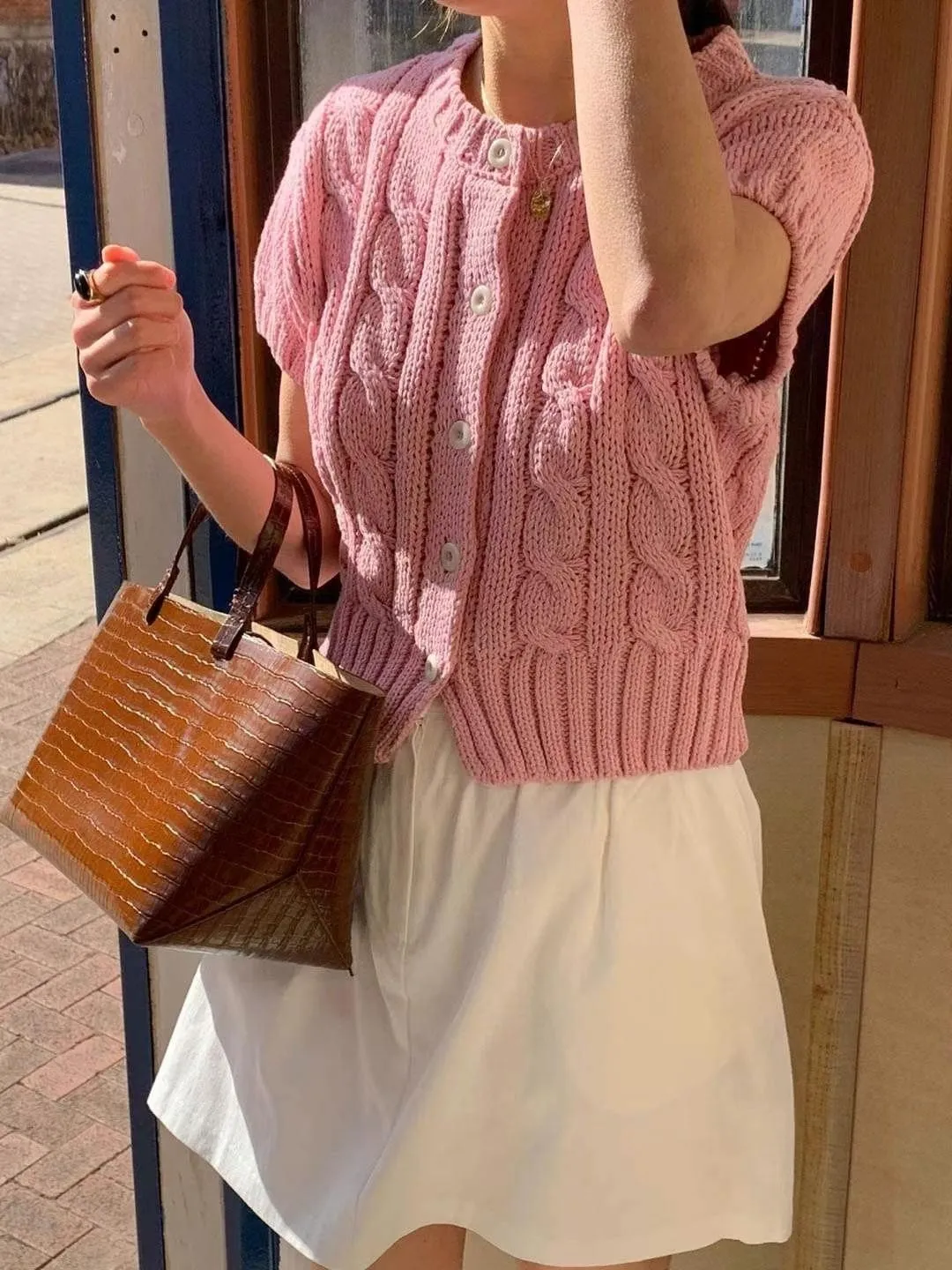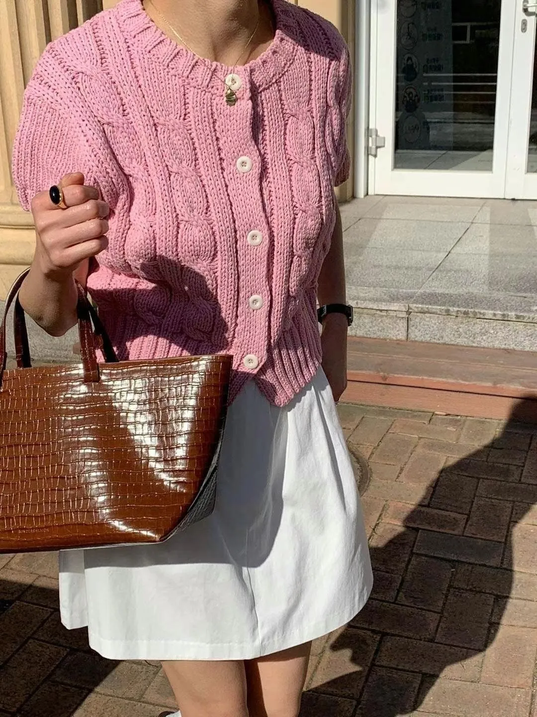 CM533 麻花針織短袖上衣外套 米 粉 淺藍 深藍 官網價$820 線上價$790