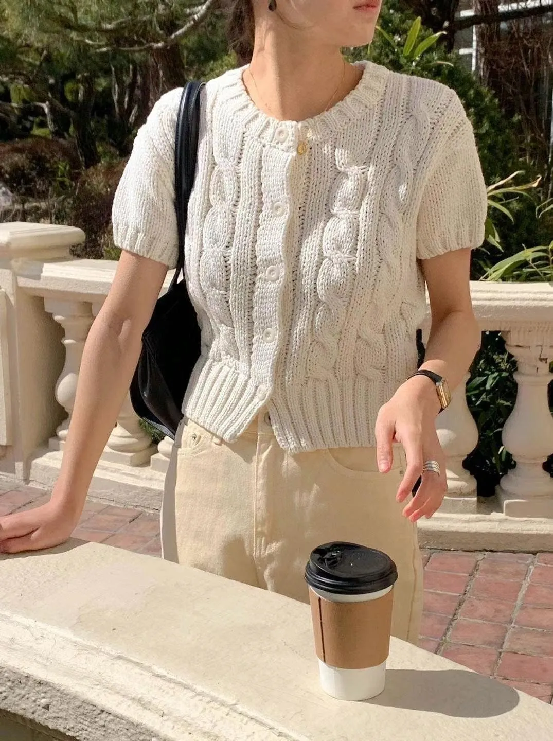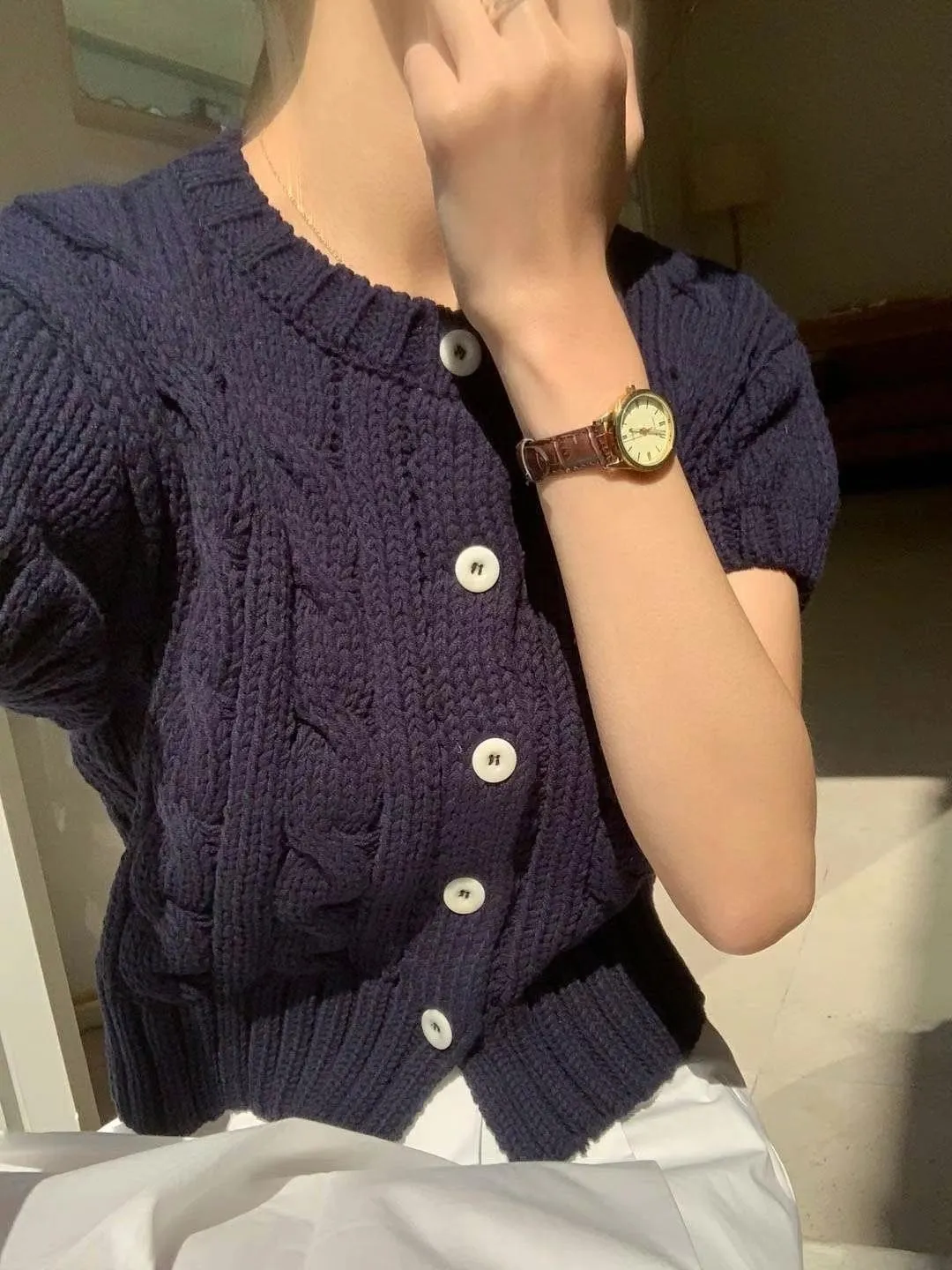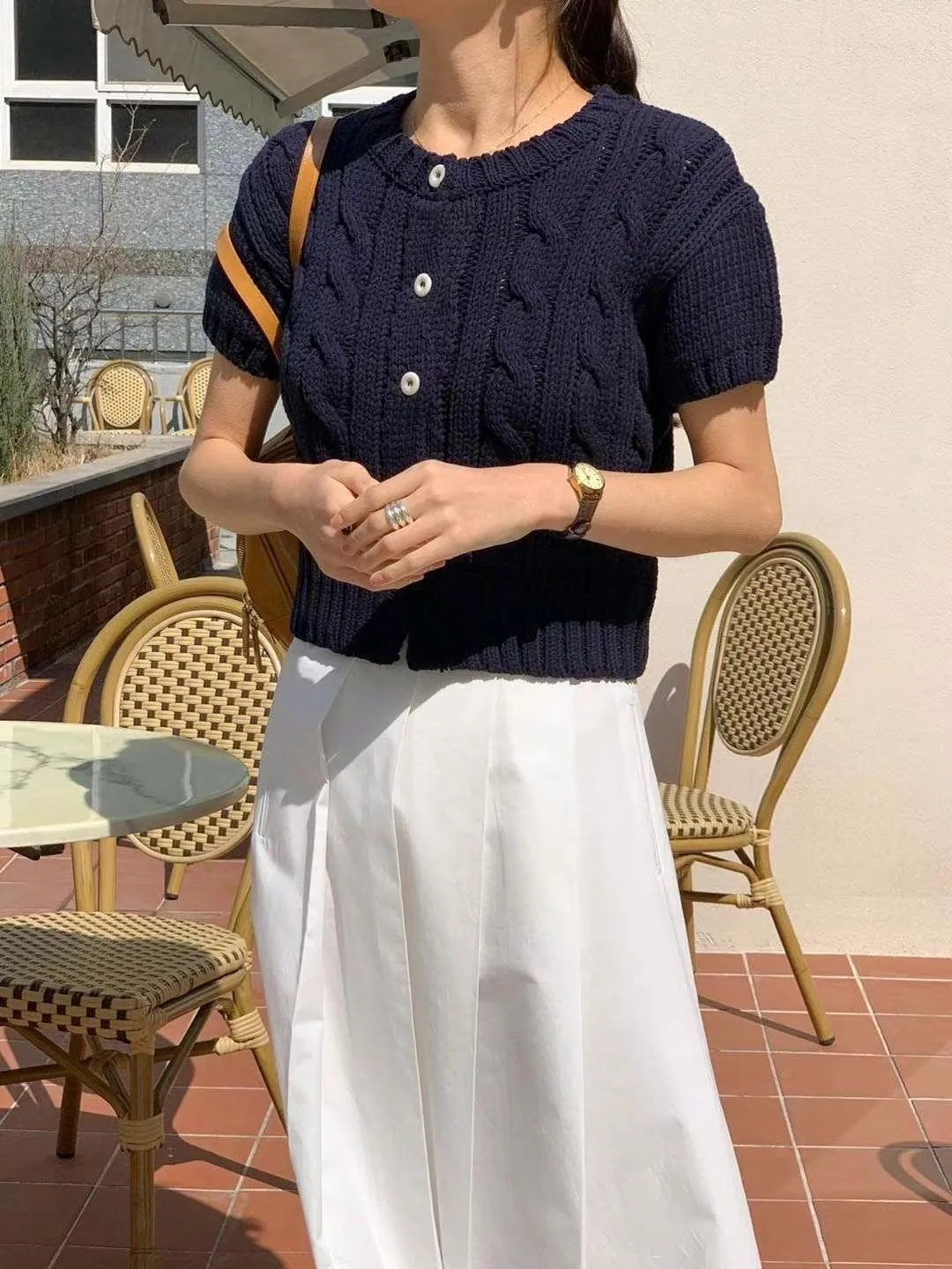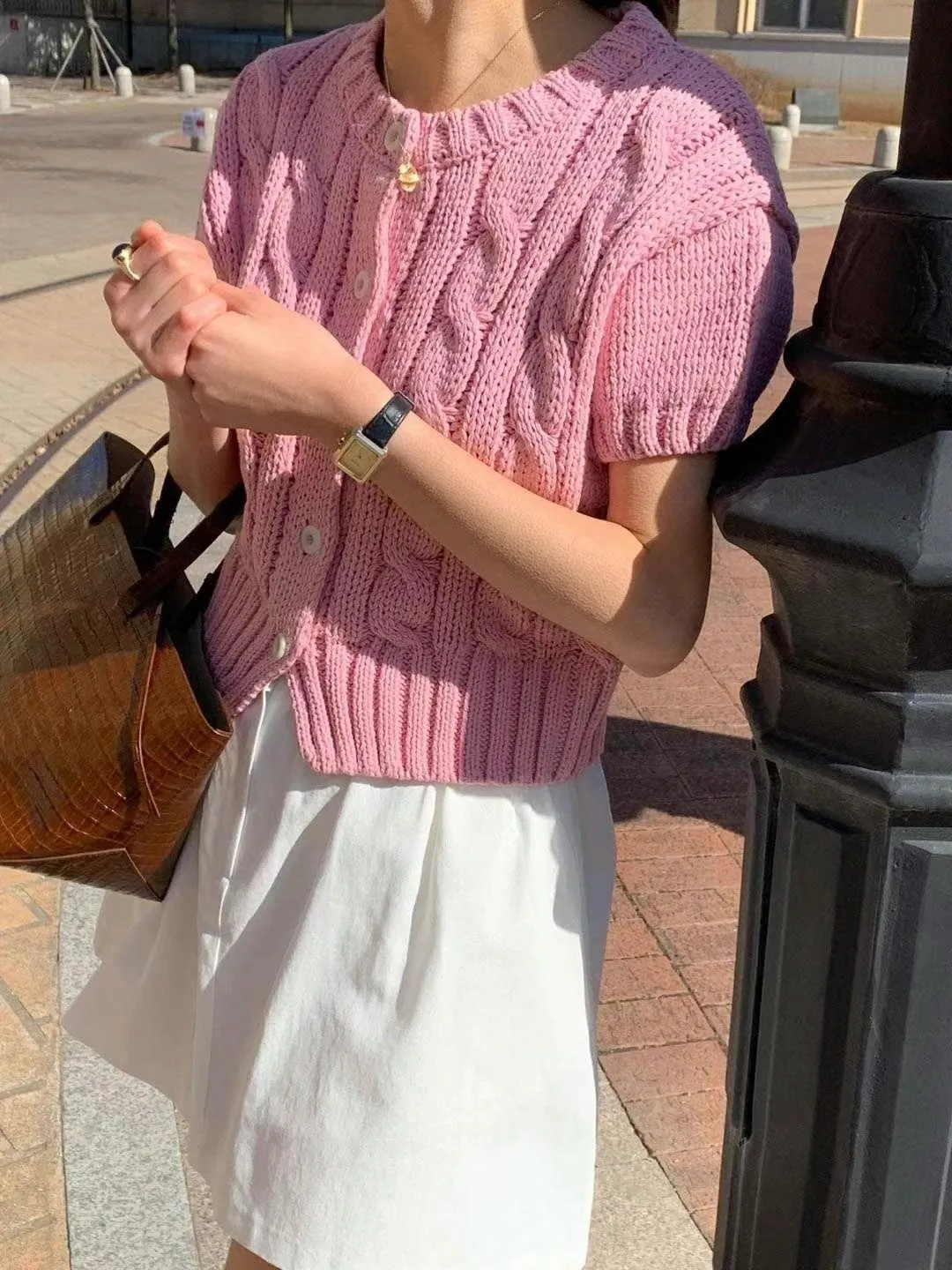 CM533 麻花針織短袖上衣外套 米 粉 淺藍 深藍 官網價$820 線上價$790