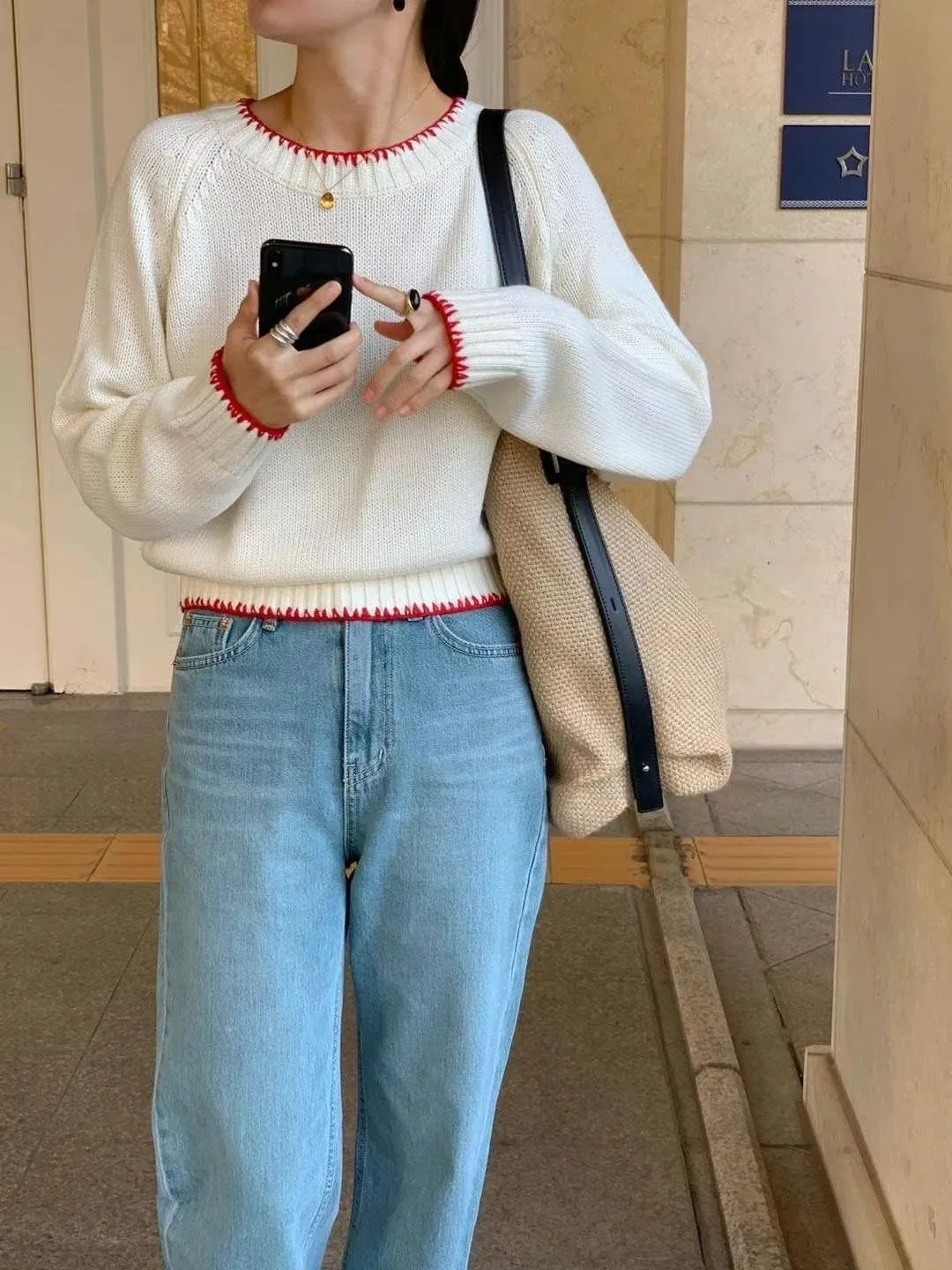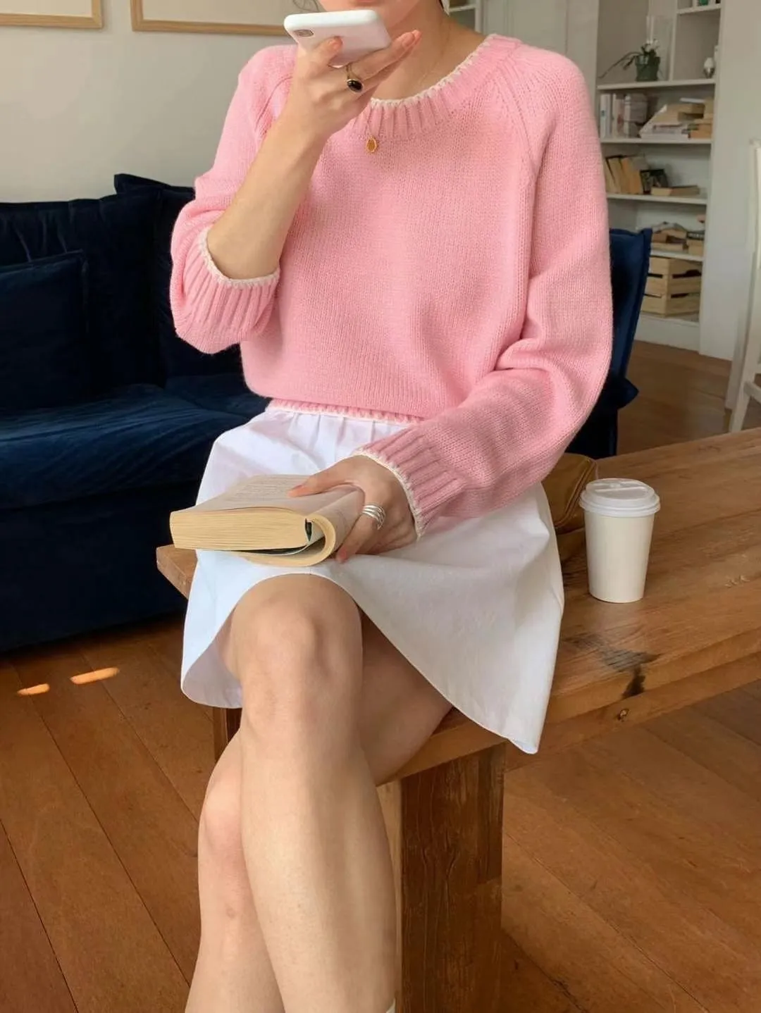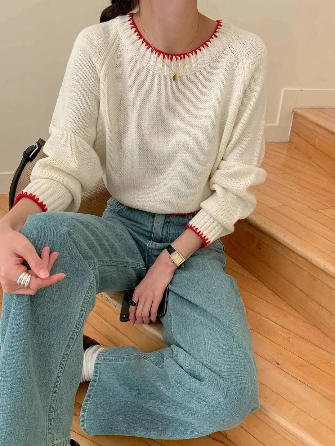 CM537 滾邊針織長袖上衣 白 紅 粉 藍 官網價$790 線上價$760