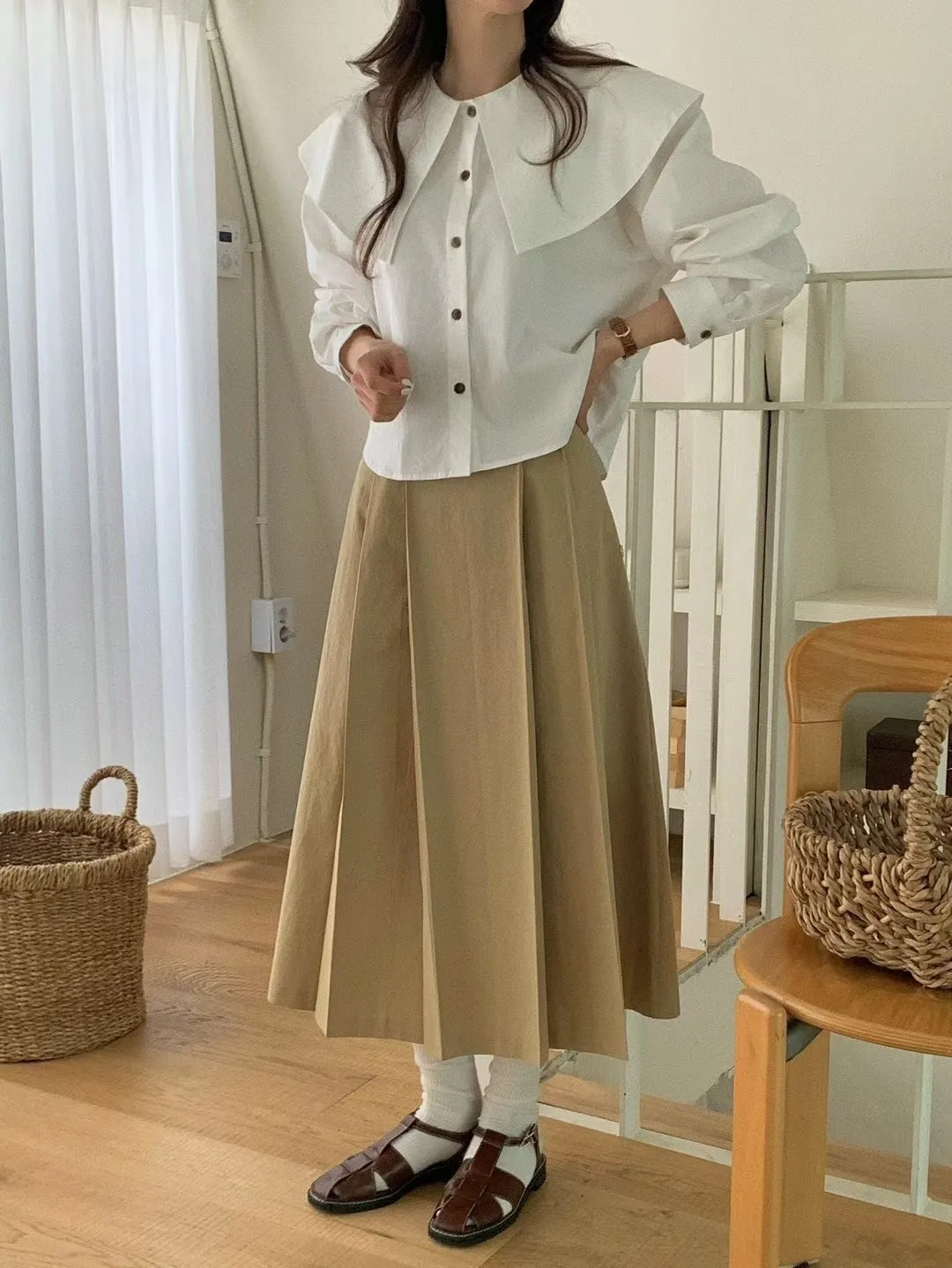 棉100% 後腰鬆緊 從腰開始打折 自然傘擺Aline 有內理