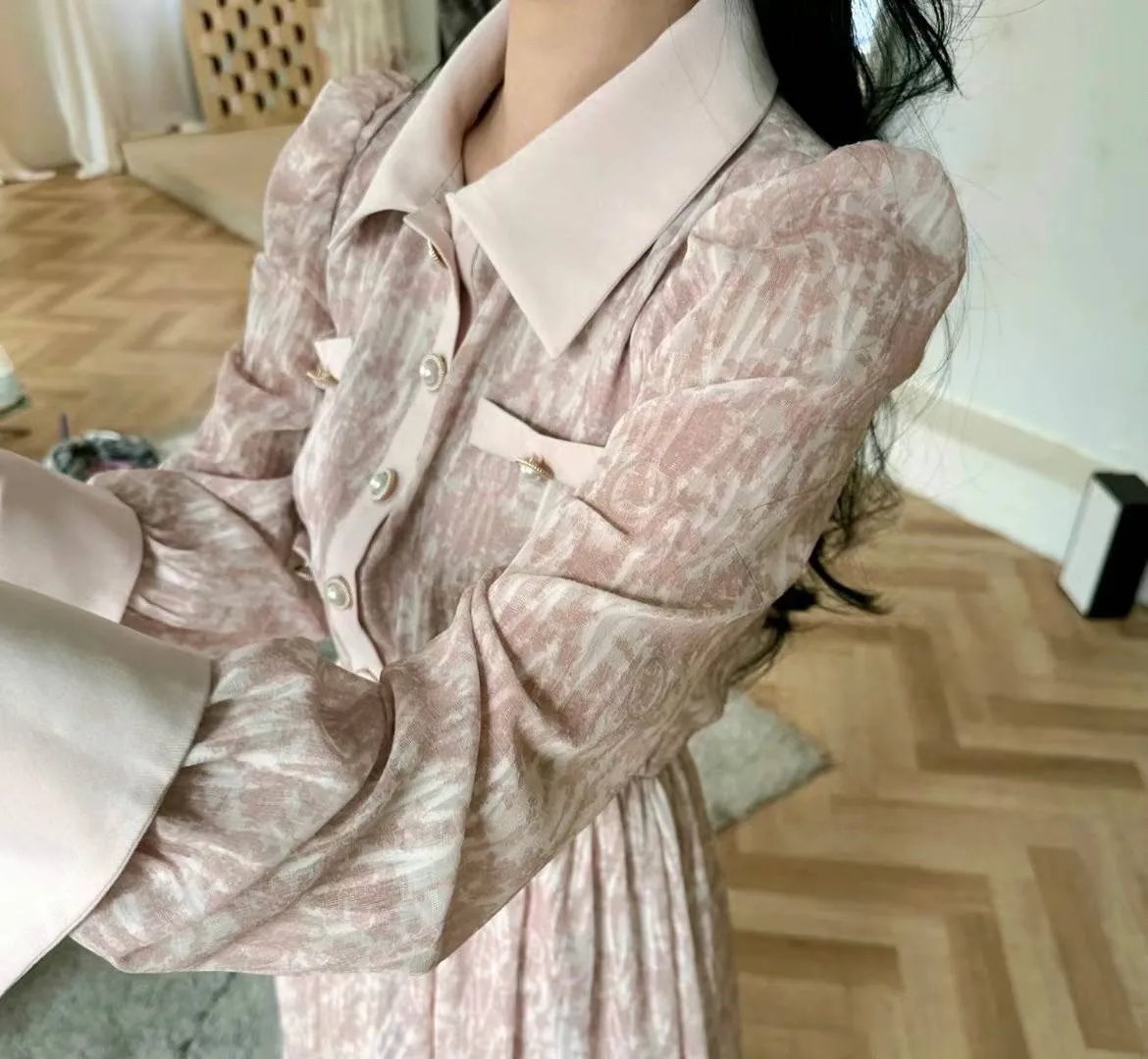 CM583歐式名媛珍珠釦襯衫領洋裝(短版) 粉 黃 官網價$2050 線上價$2020