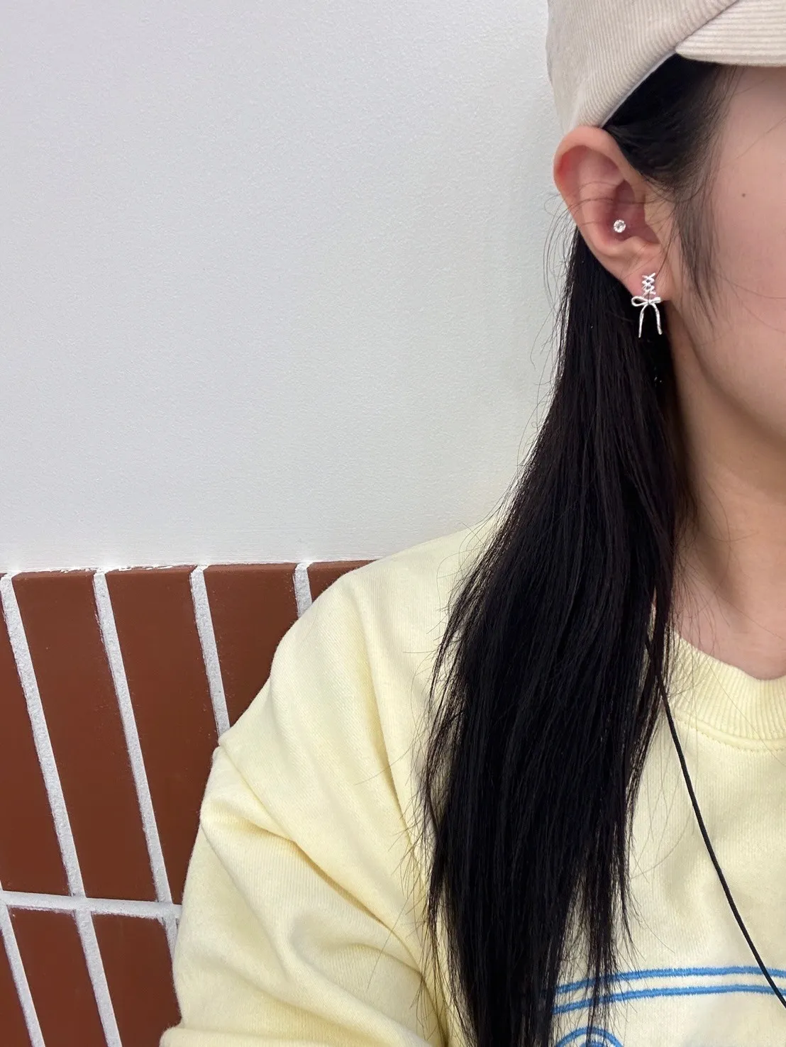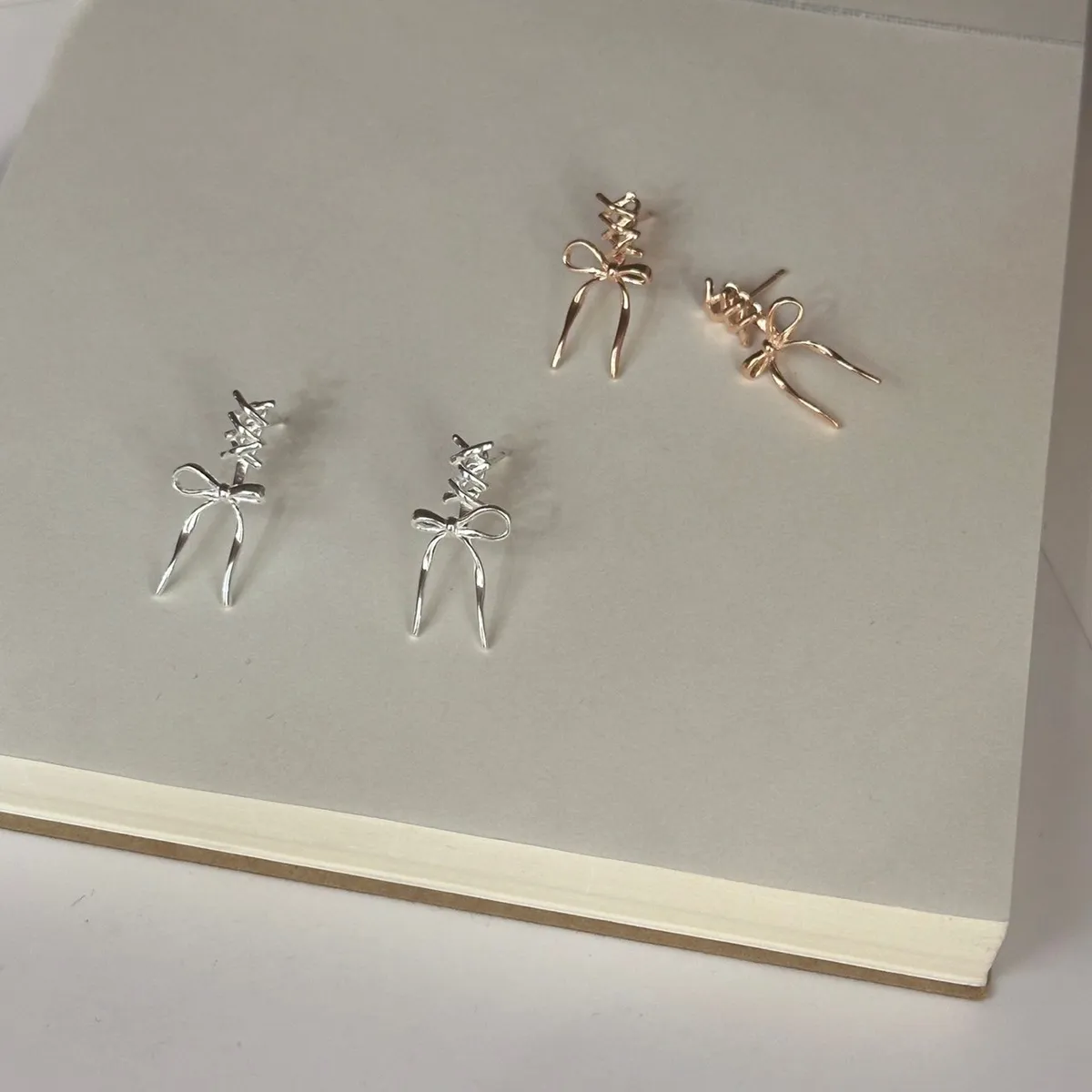 CM591雙嵌式蝴蝶結純銀925耳環 銀 玫瑰金 官網價$399 永恆甜甜價$$379