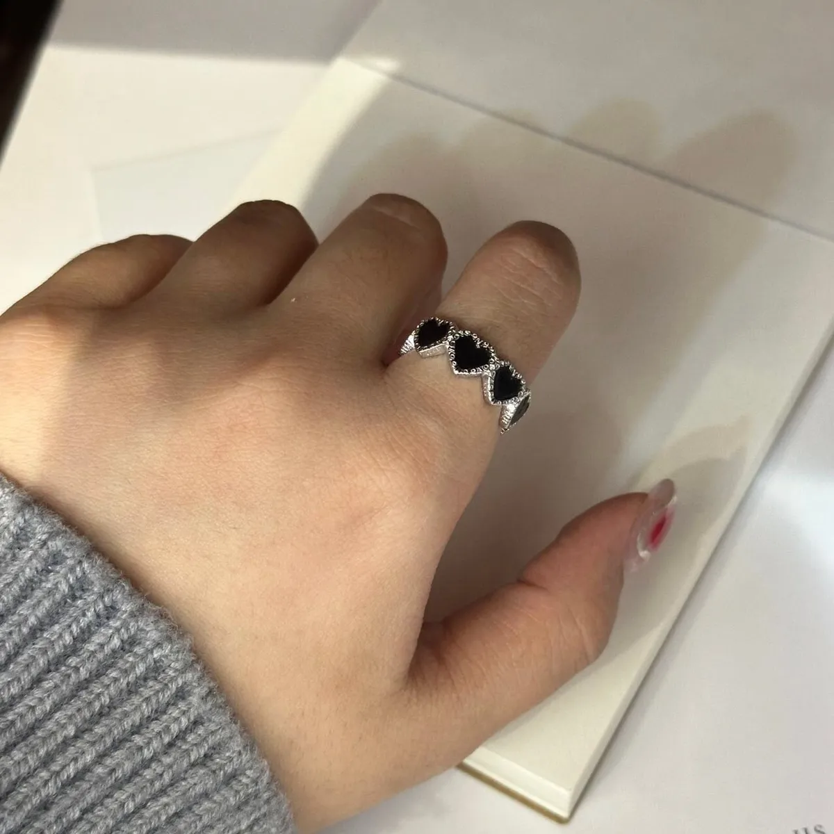 CM612鋼琴烤漆黑愛心碎銀框925純銀戒指 官網價$580 永恆甜甜價$560
