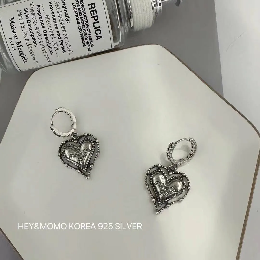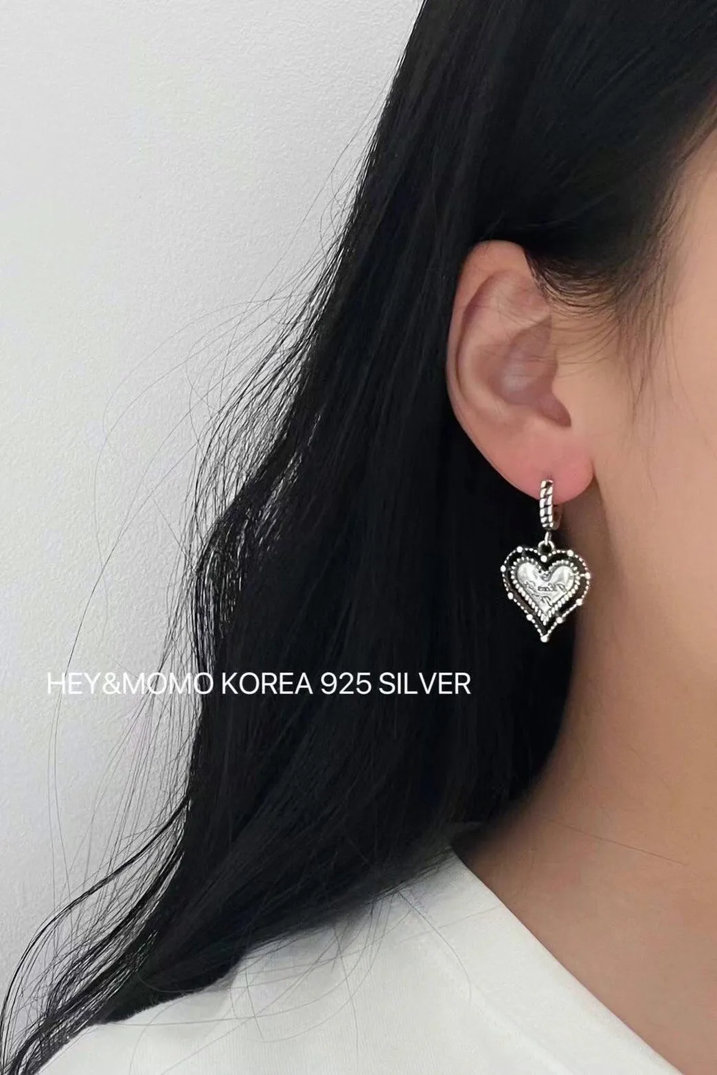 CM614蕾絲花邊925純銀簍空愛心耳環