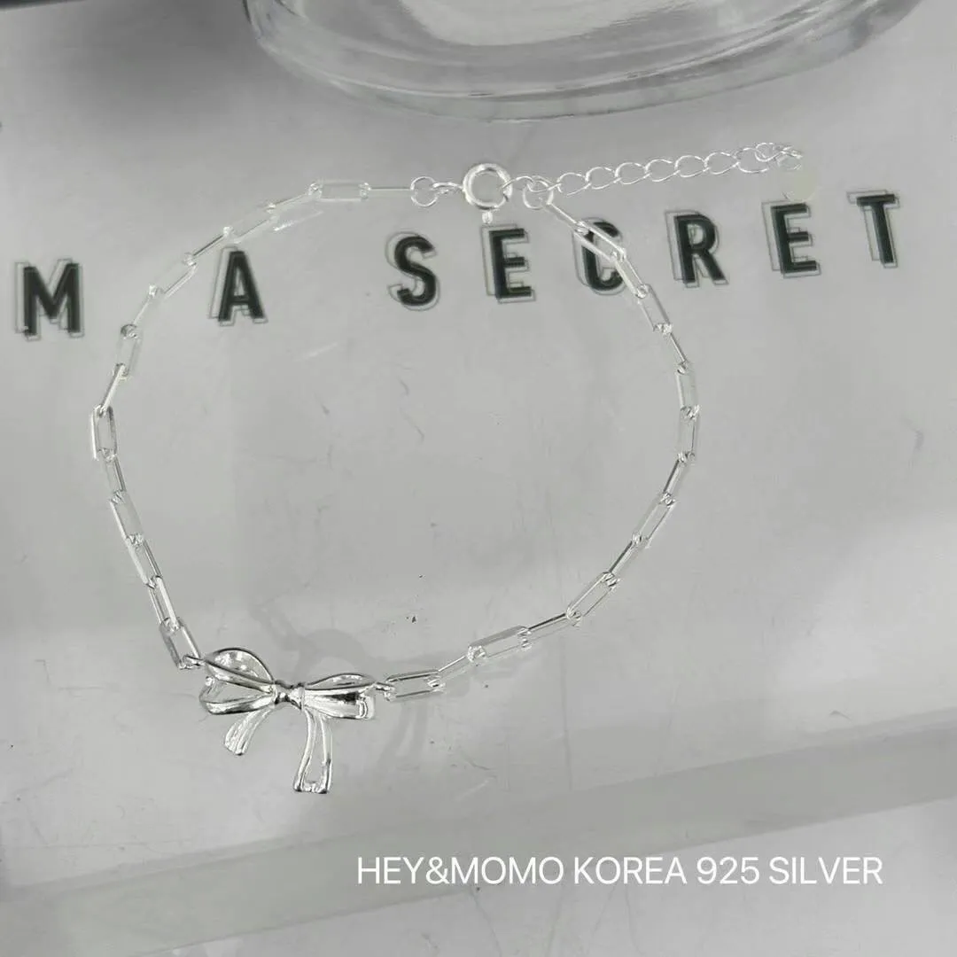CM638細緻蝴蝶結純銀925方框手鍊