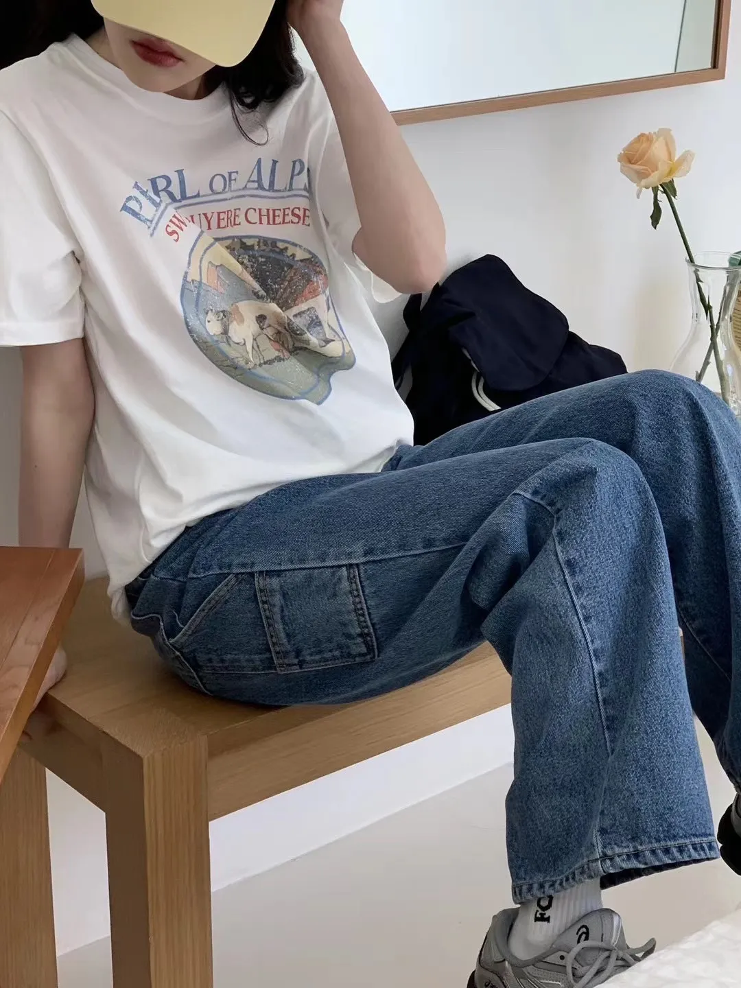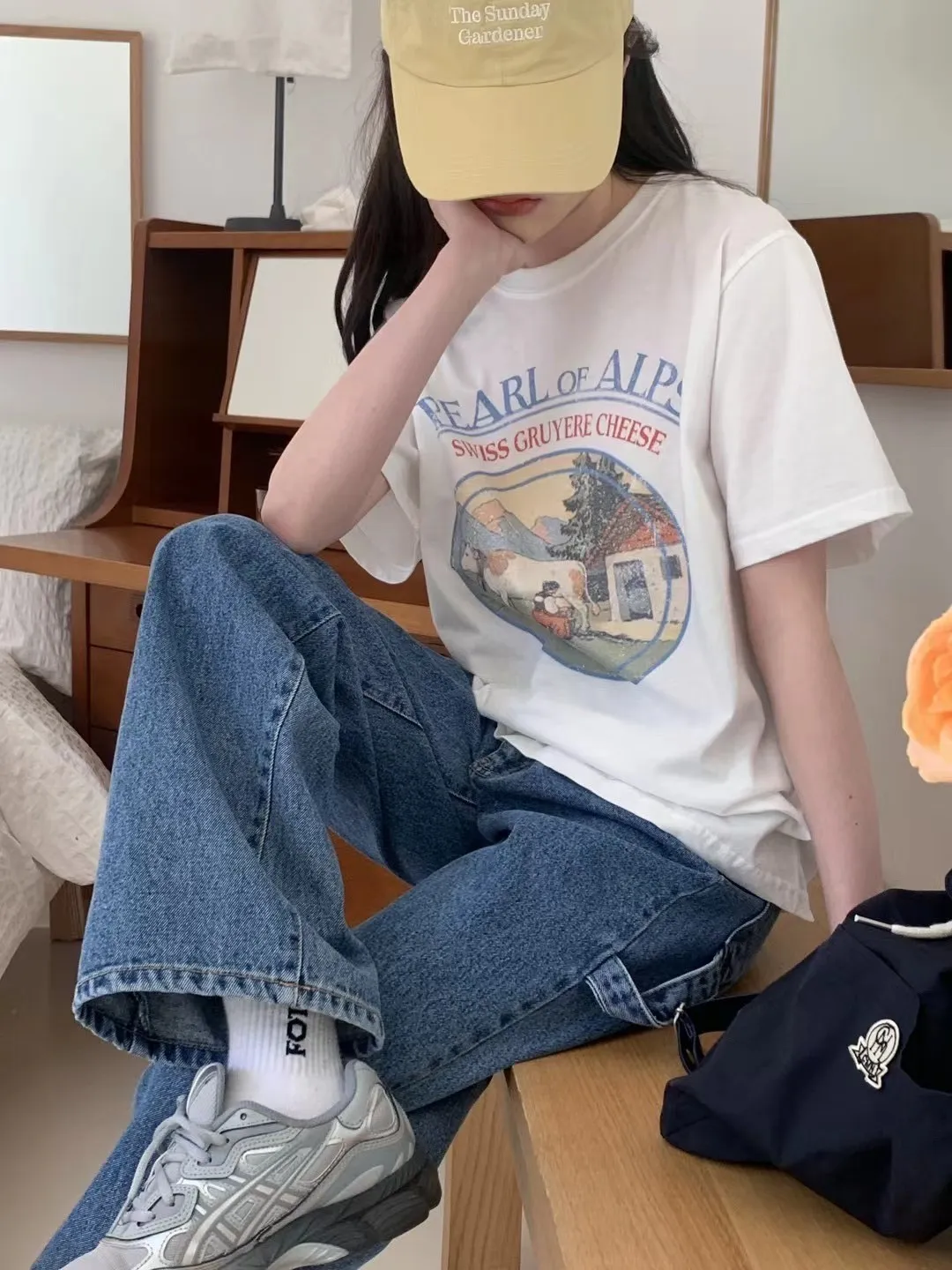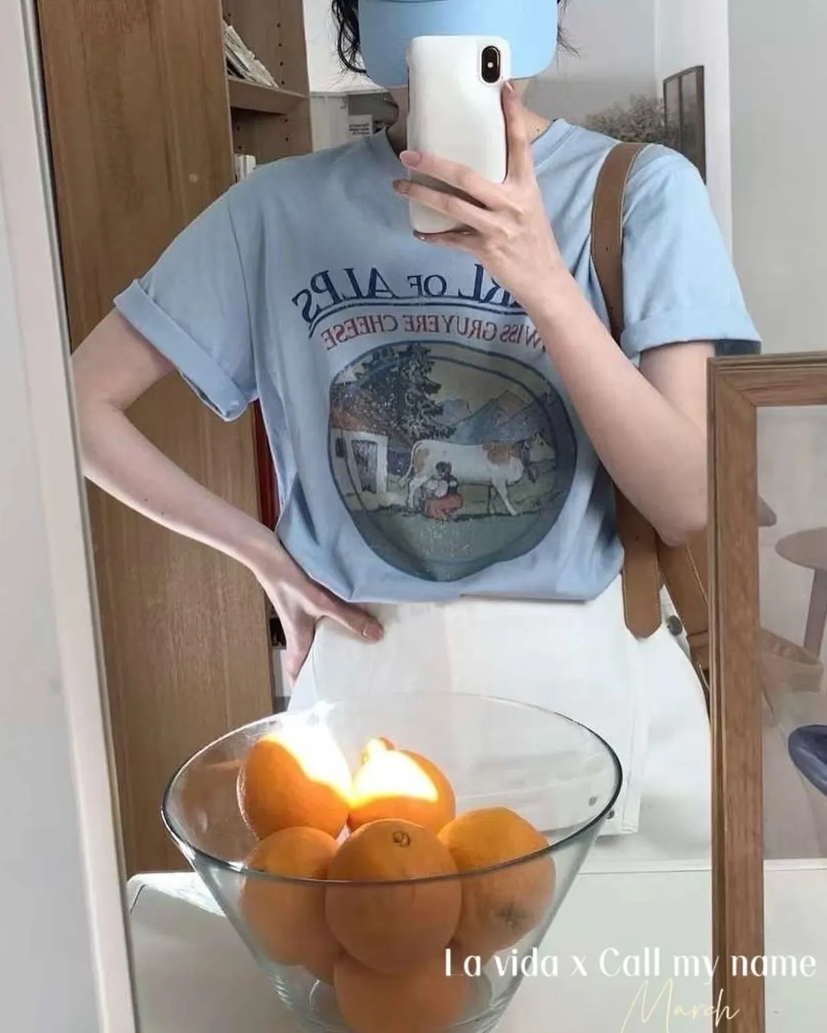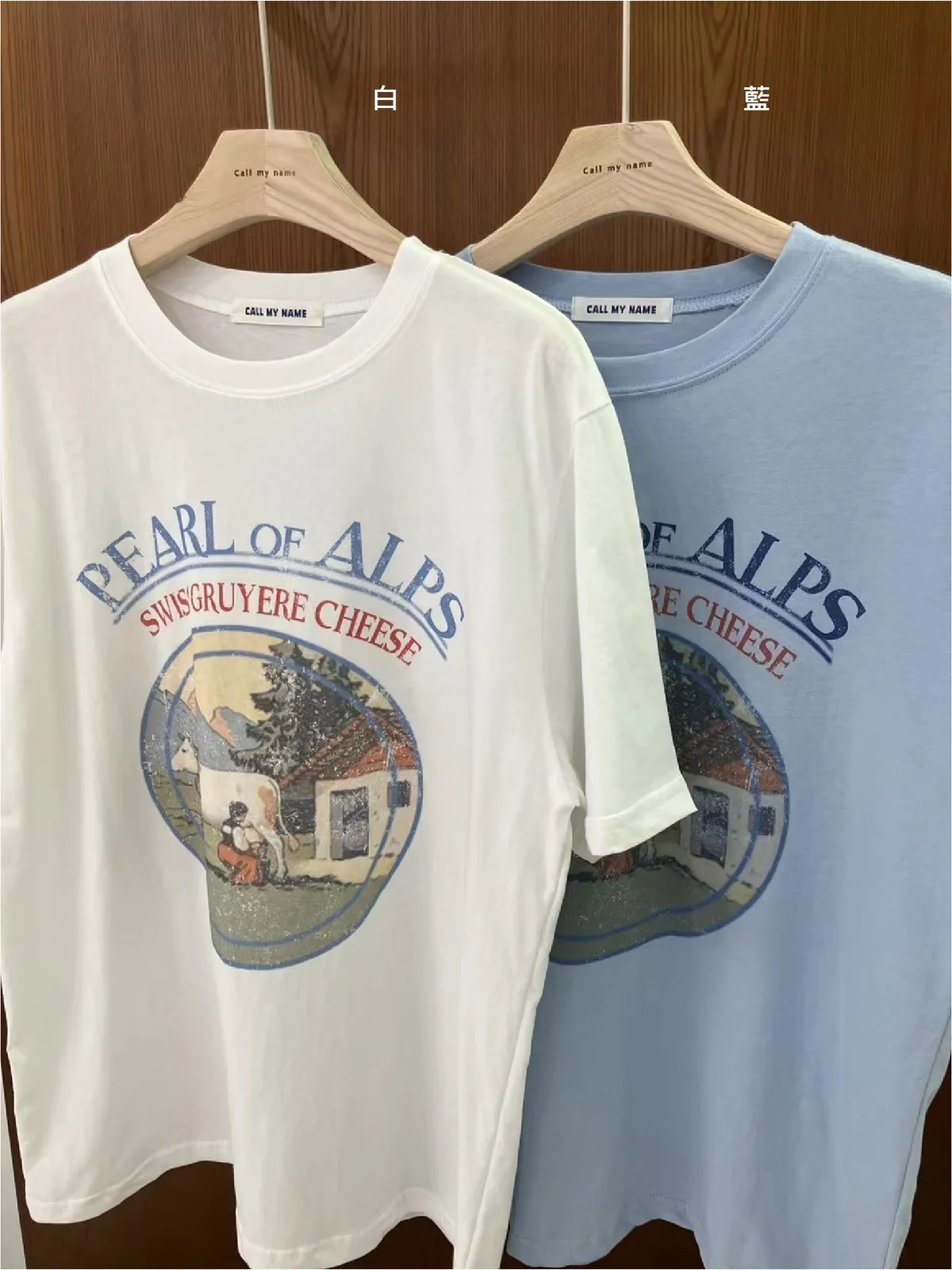 CM683復古斑駁仿舊小牛農場短袖Tshirt 白 藍 官網價$590 線上價$560