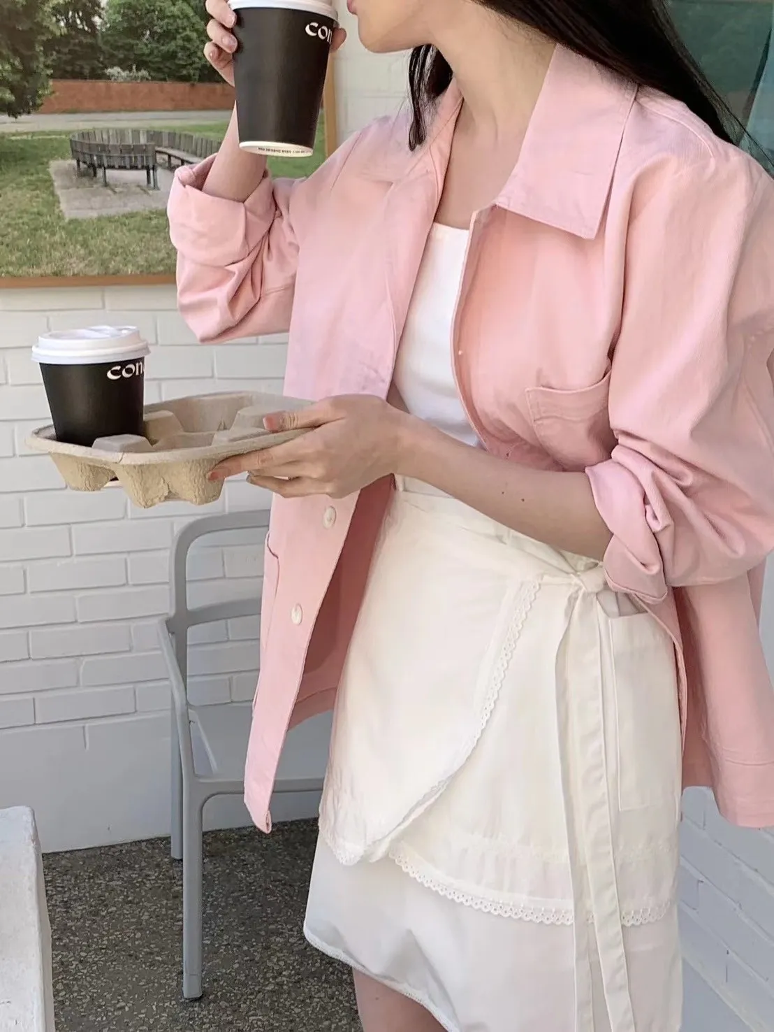 CM686百搭寬鬆襯衫外套 米 藍 粉 官網價$1390 線上價$1360