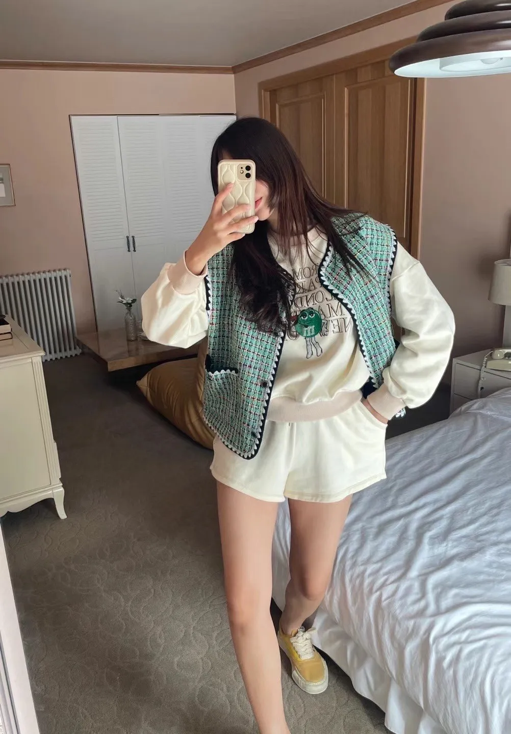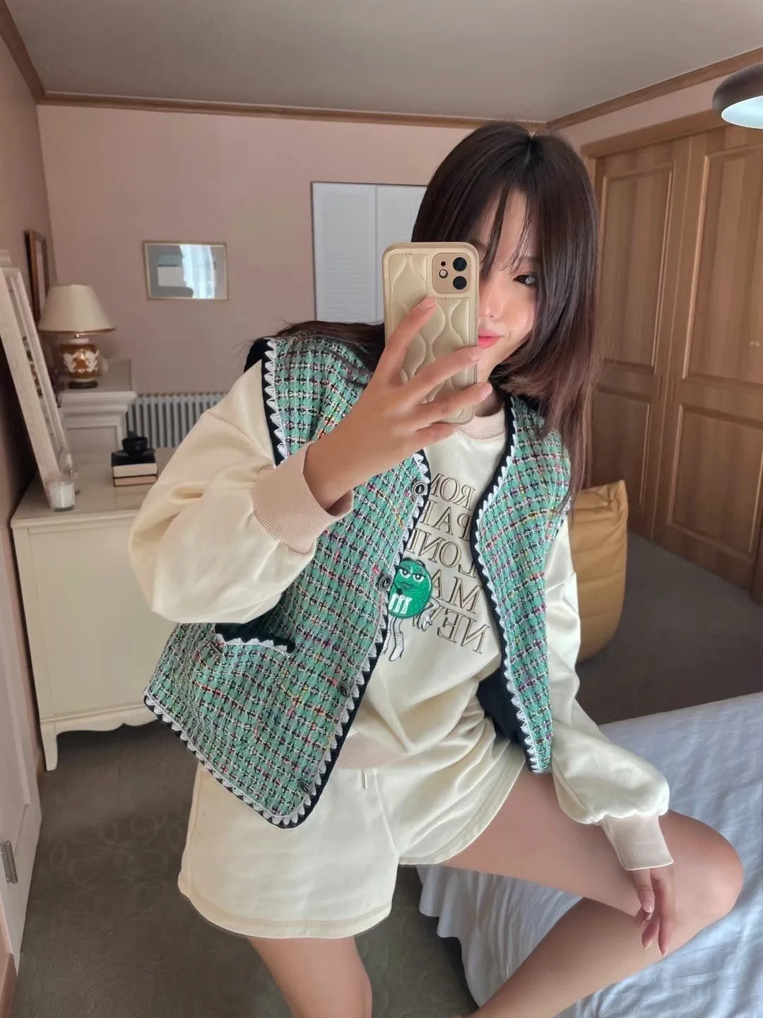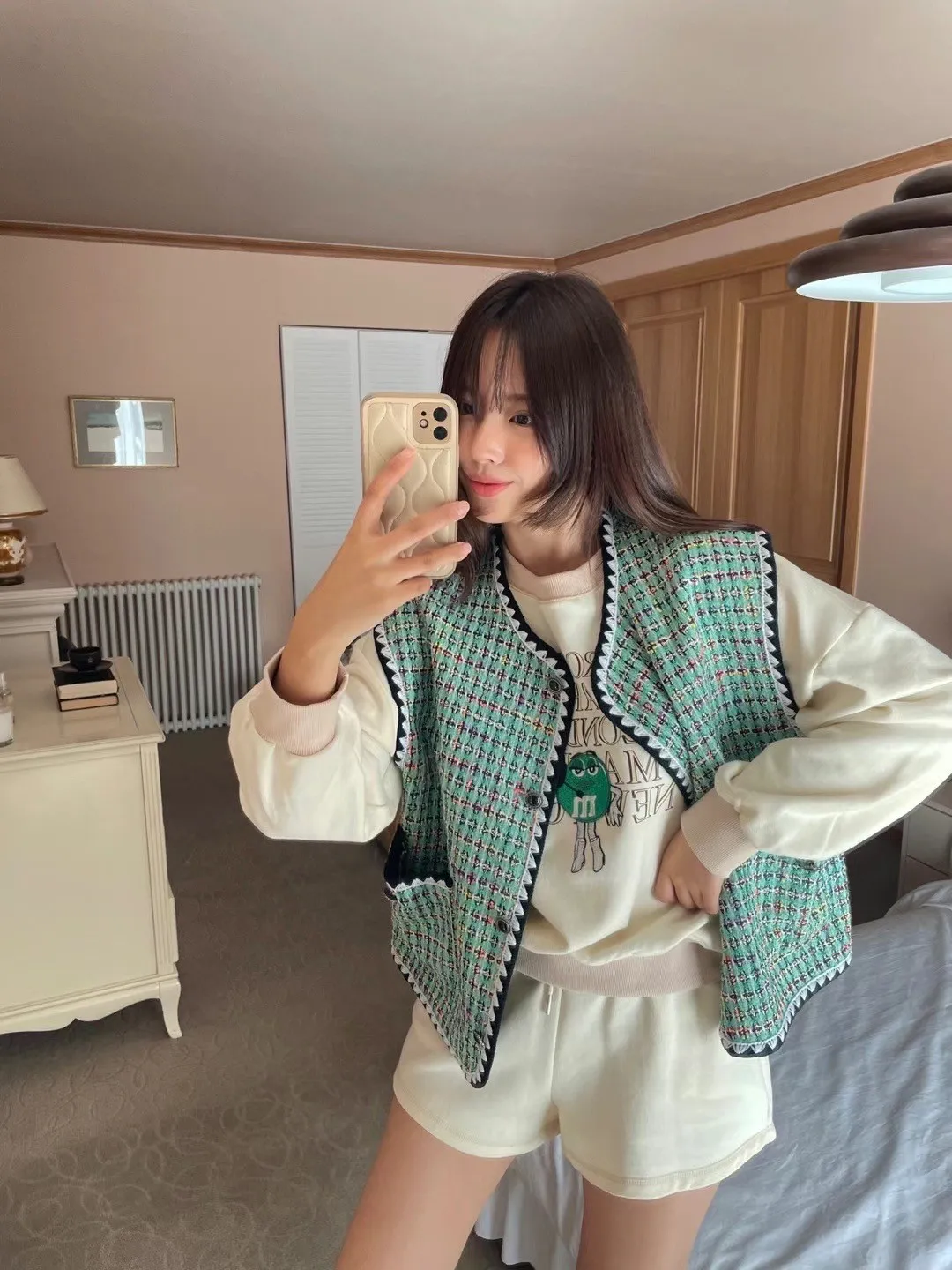 聚酯 比看起來更薄款 視覺低調繽紛織線 釦子穿脫 有口袋