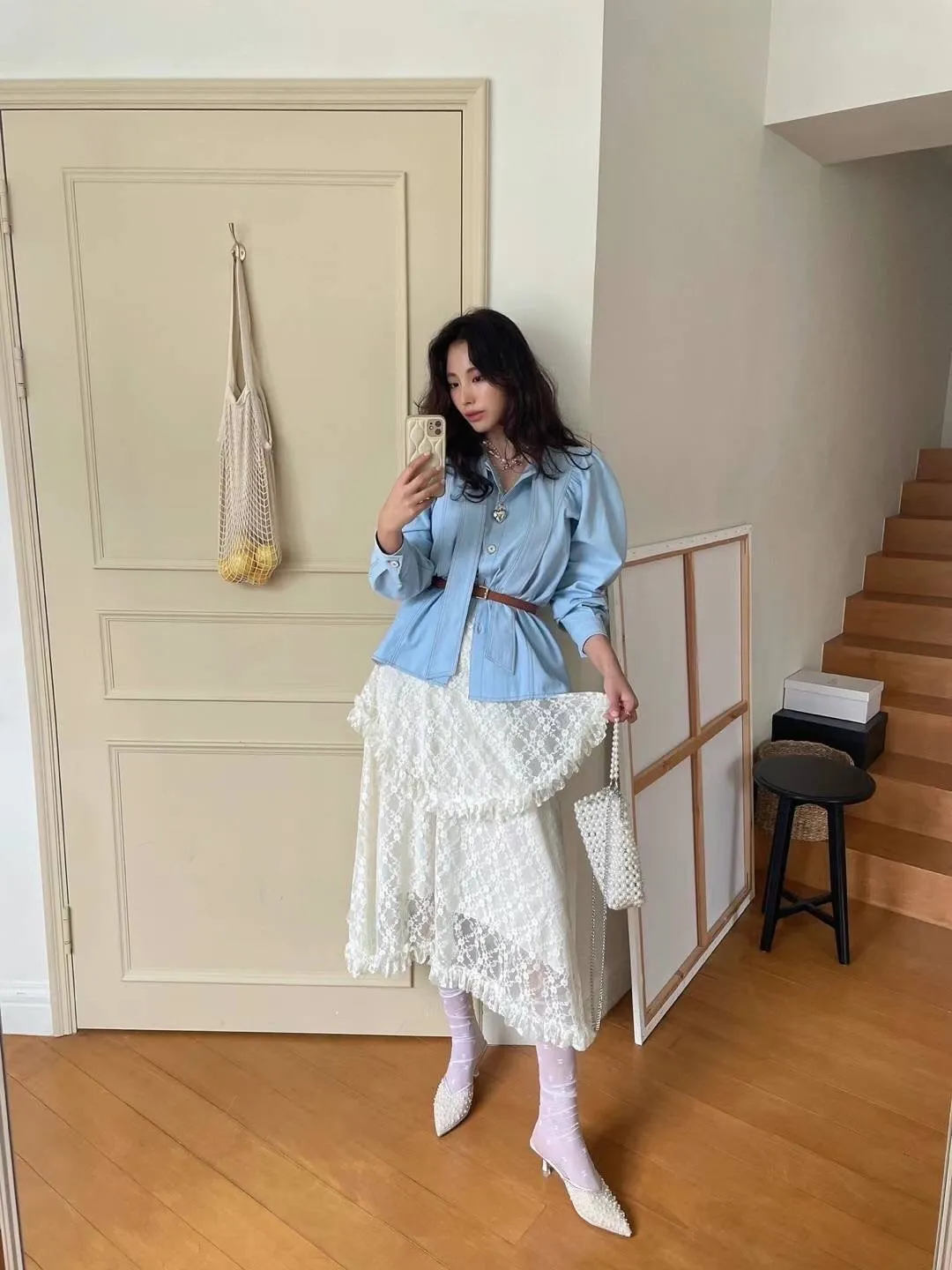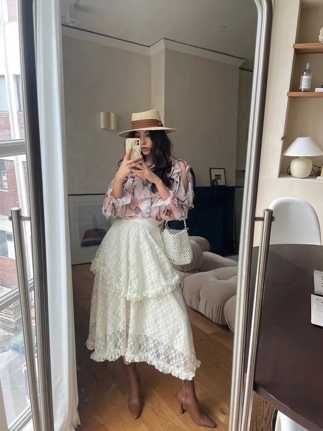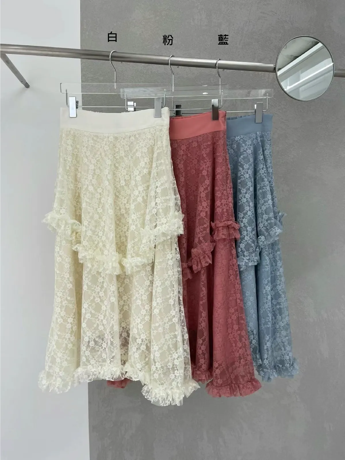 蕾絲+網紗 雙層蕾絲 有內裡 腰有鬆緊 側拉鍊