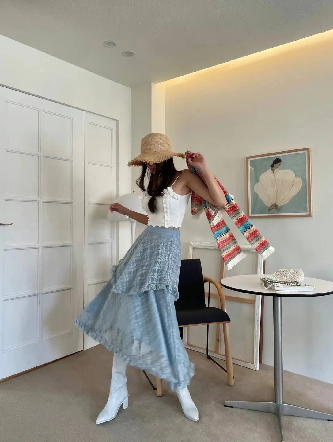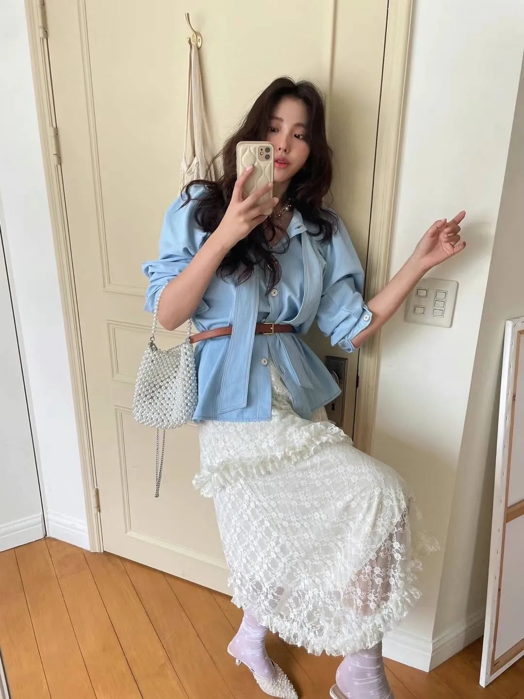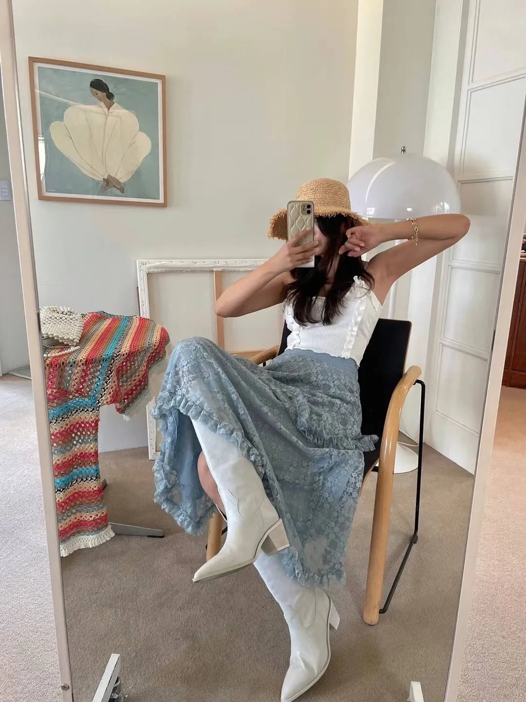 蕾絲+網紗 雙層蕾絲 有內裡 腰有鬆緊 側拉鍊