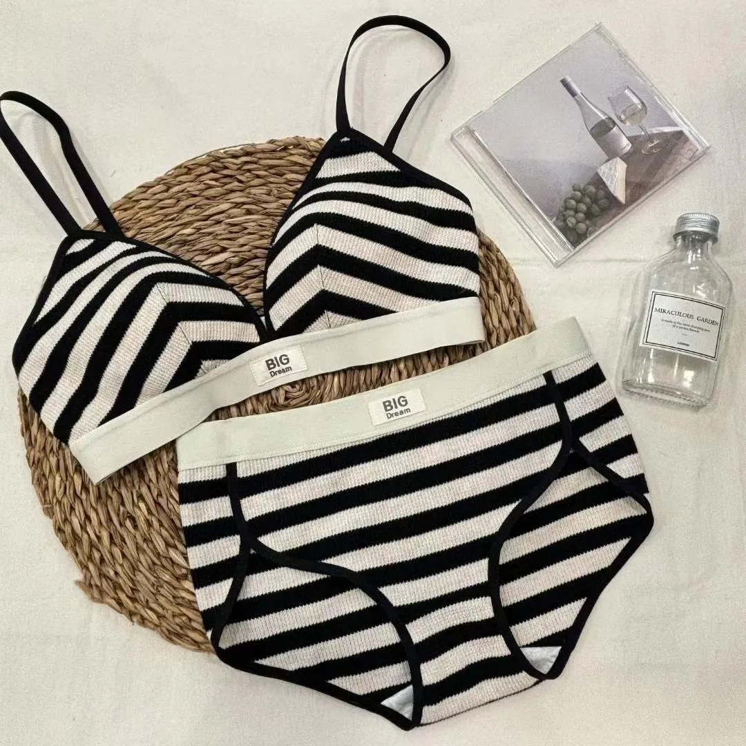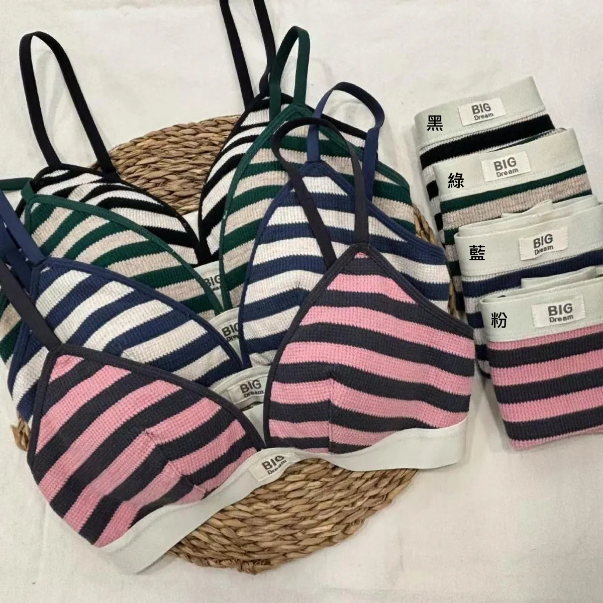 CM726條紋針織big dream內衣套裝(內衣+內褲) 藍 粉 綠 黑 S M L XL原價$949永恆甜甜價$899