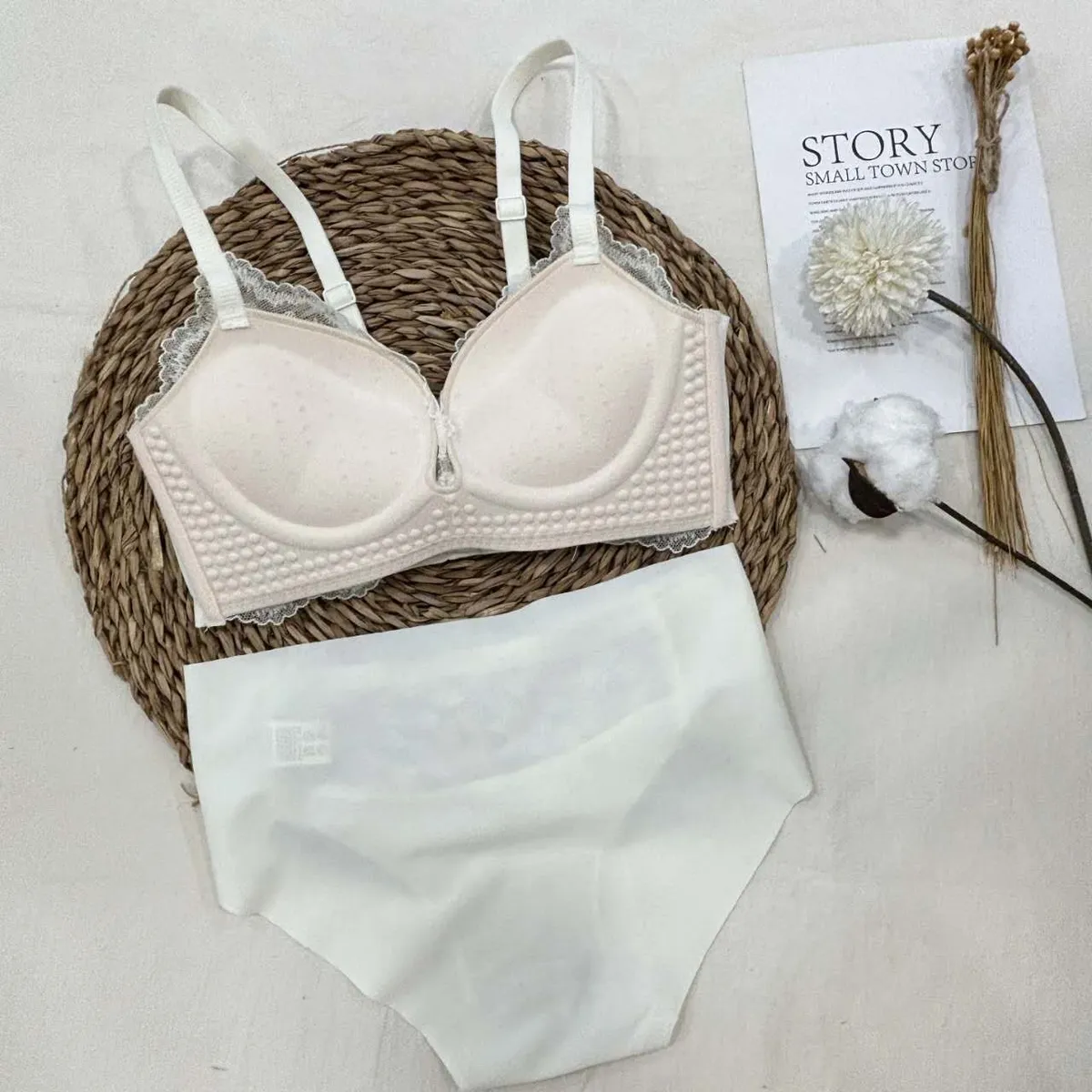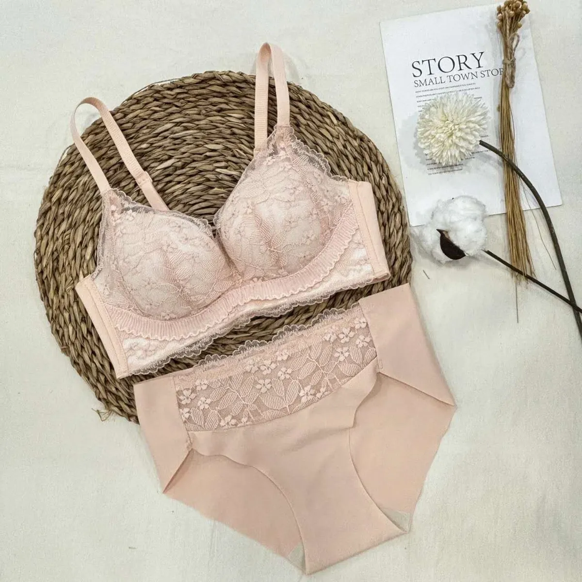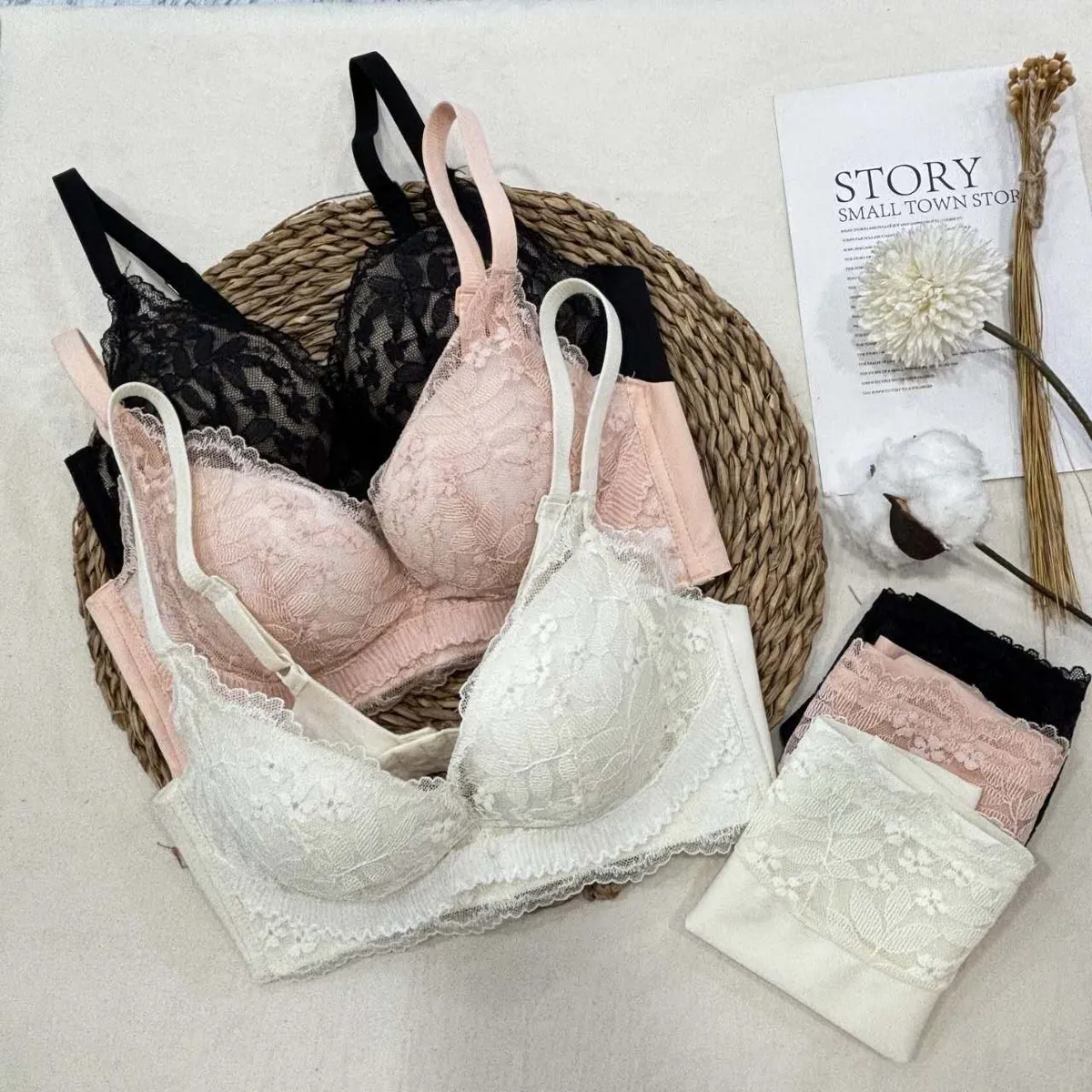 CM740新款涼感下擺蕾絲套裝(內衣+內褲) 米 橘 黑 S M L XL原價$940 永恆甜甜價$890
