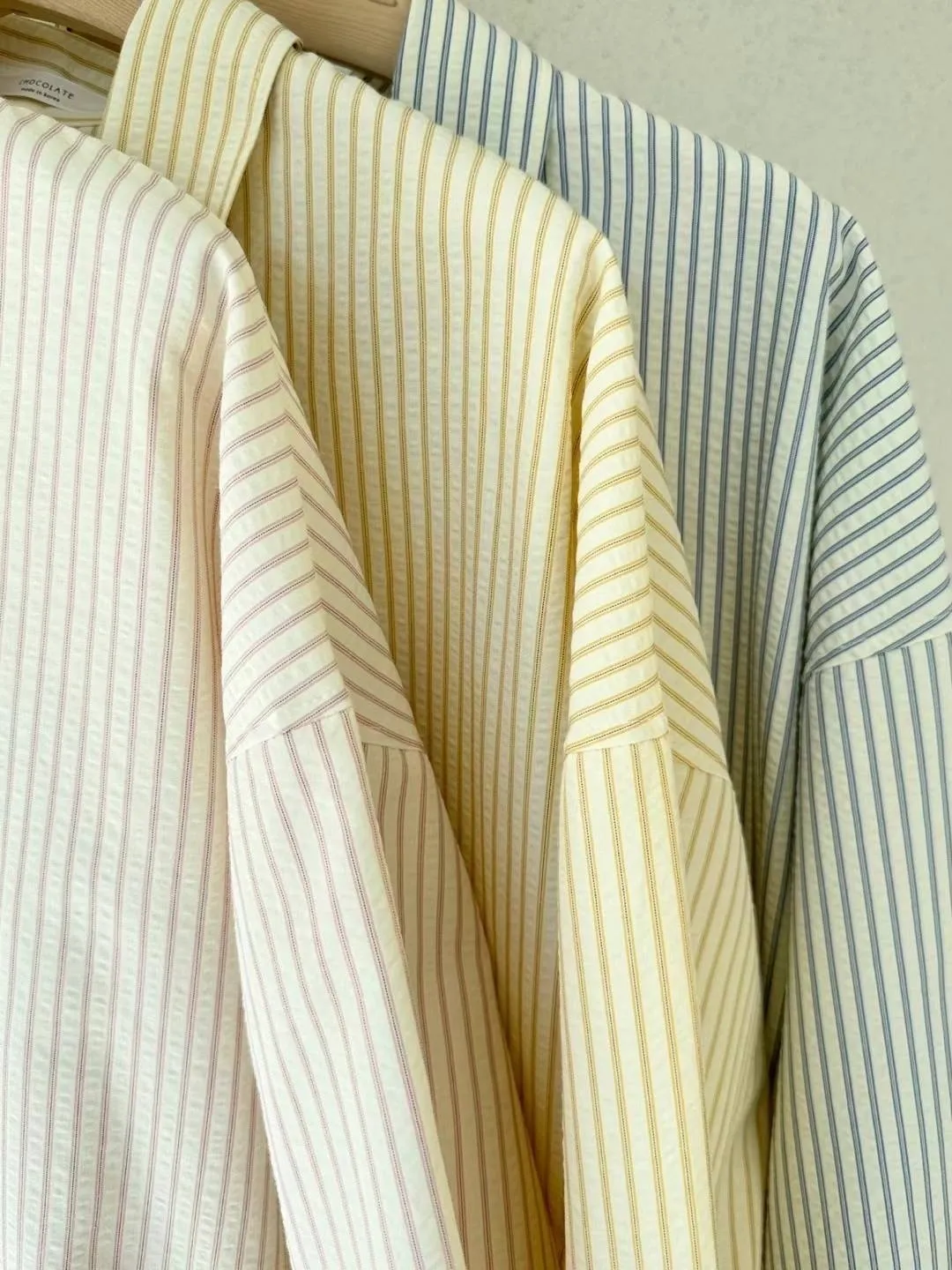 CM777清爽色調直條紋襯衫 黃 粉 藍 原價$700 永恆甜甜價$650