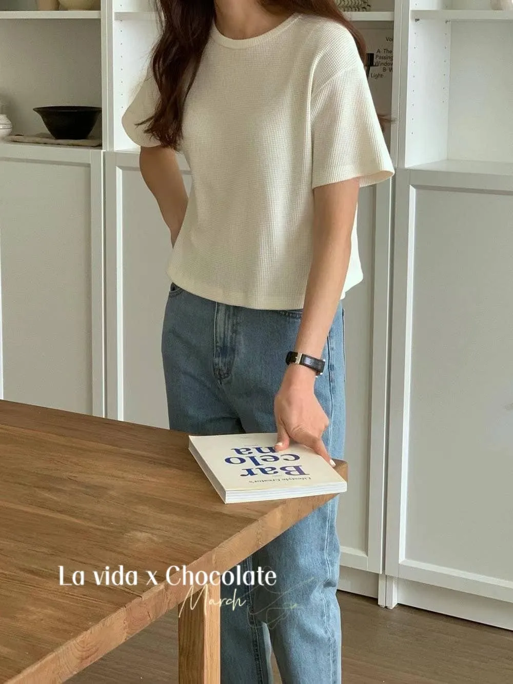 CM780縲縈華夫格紋純色短袖 紫 白 黑 綠 黃 淺灰 深灰 Tshirt 原價$390 永恆甜甜價$340