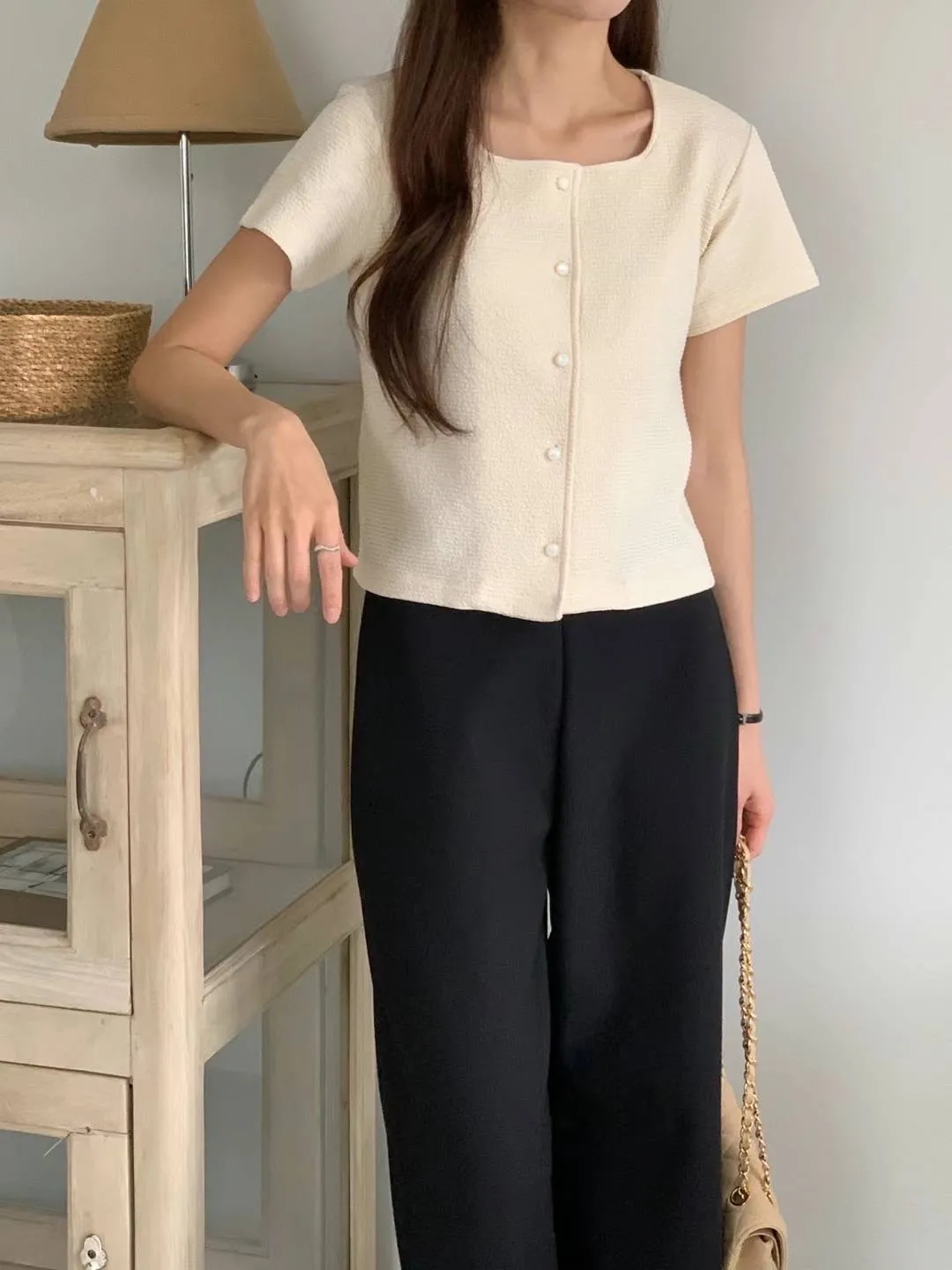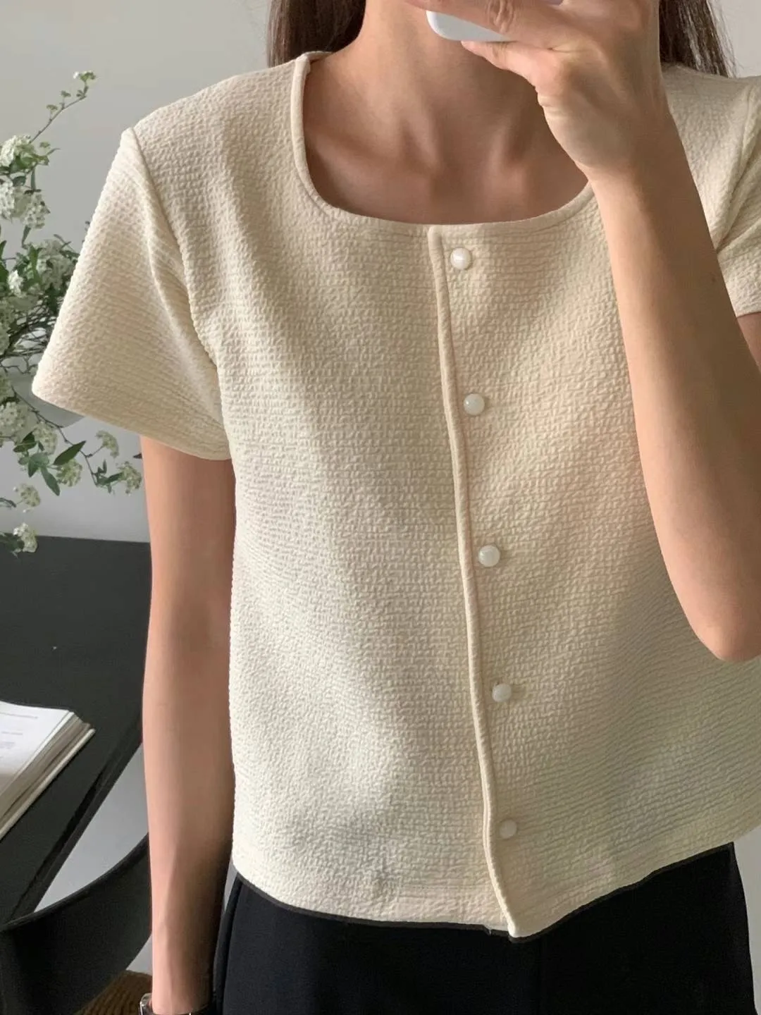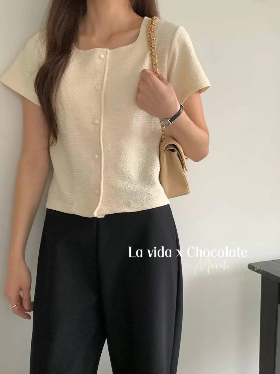 CM781方領簡單好看百搭上衣 米 黑 原價$630 永恆甜甜價$580