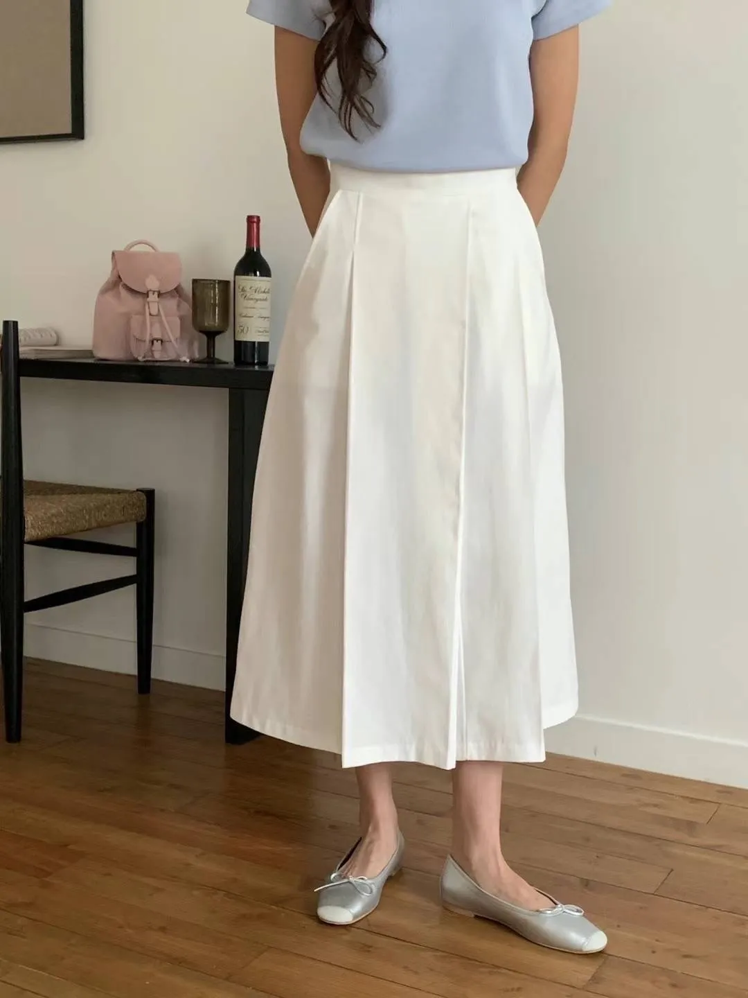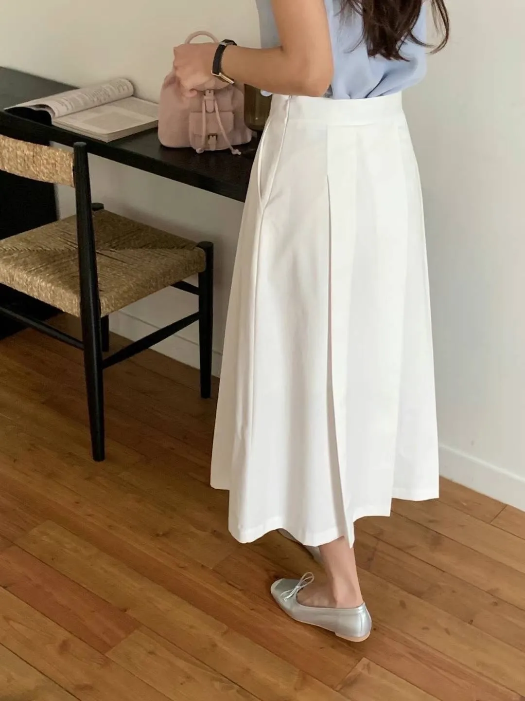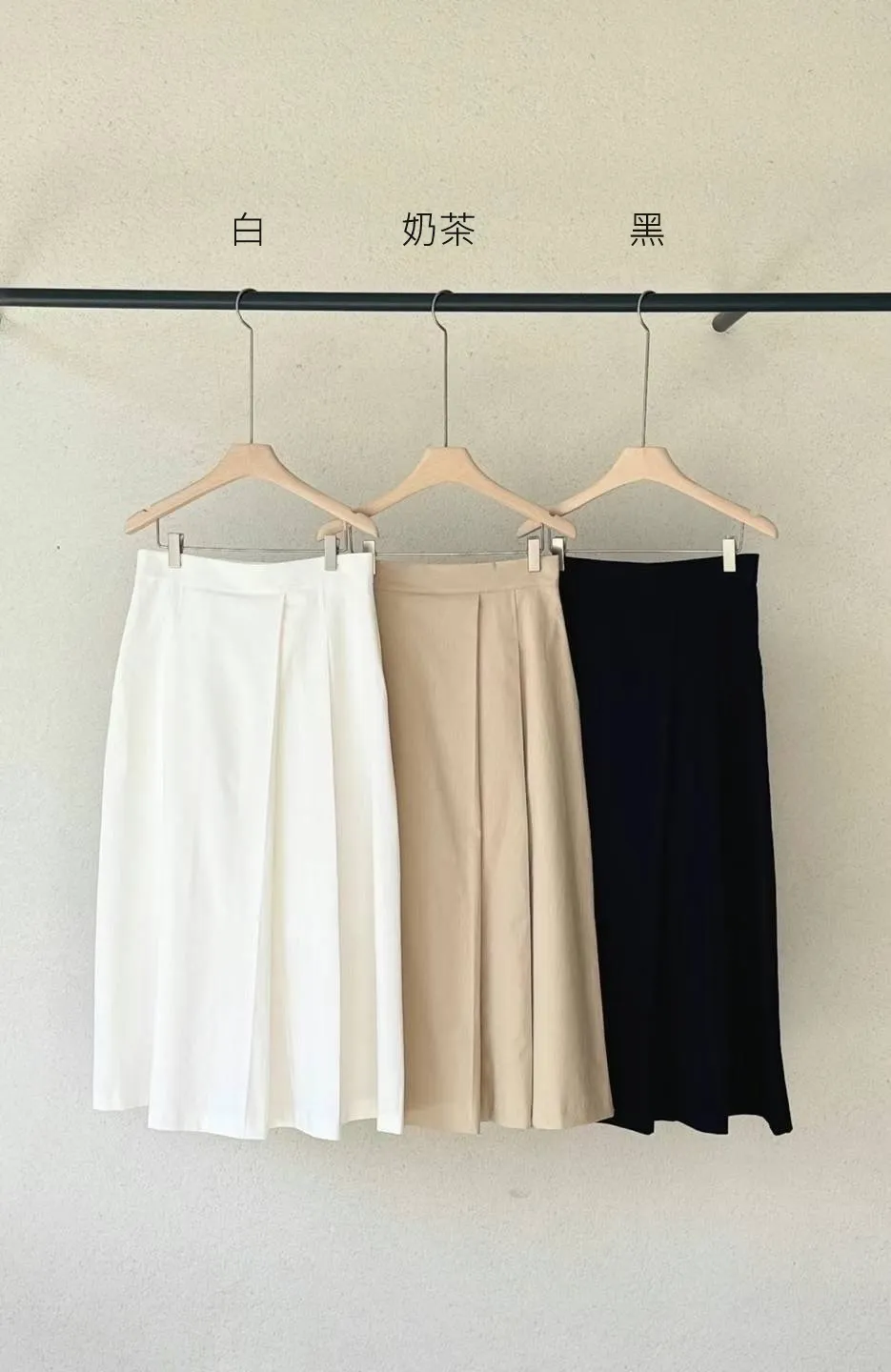 CM783寬摺傘擺長裙 白 黑 奶茶 S M 原價$790 永恆甜甜價$740