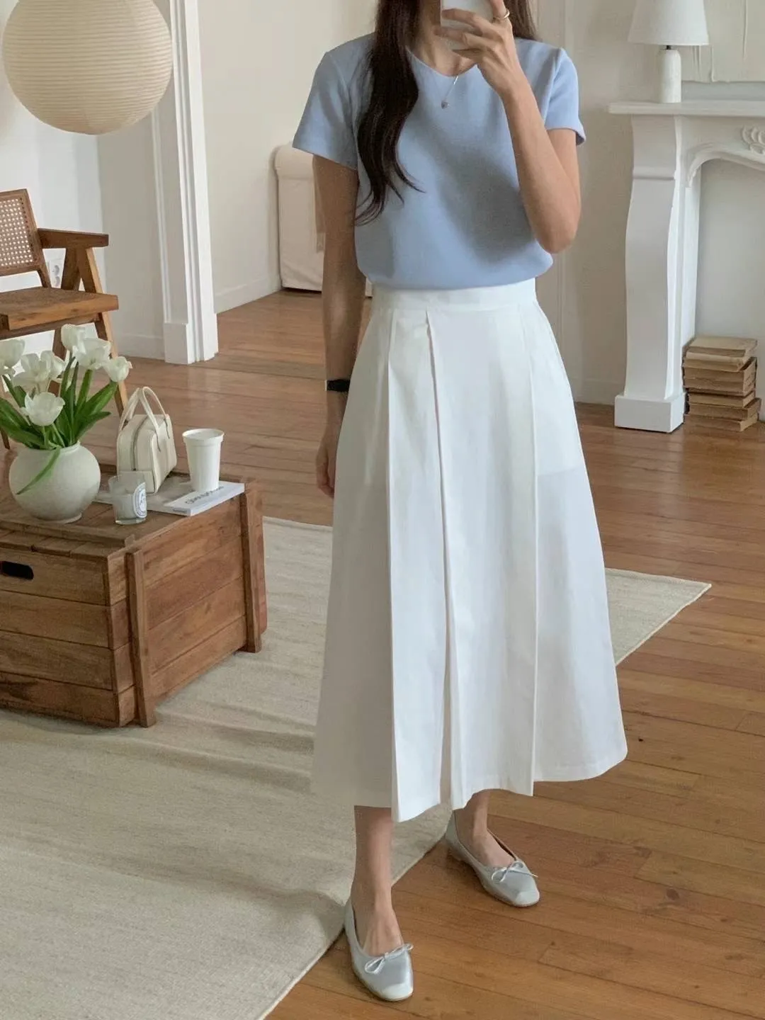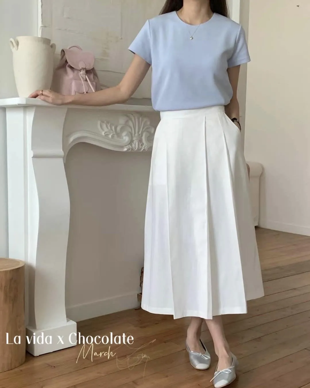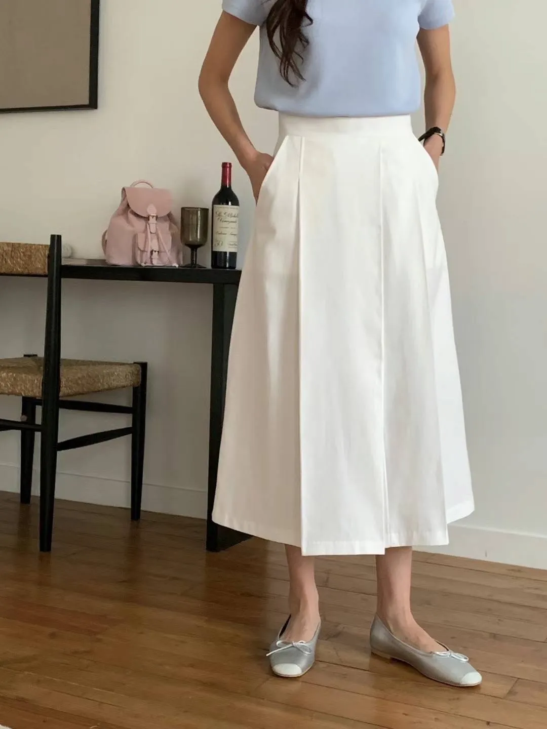 CM783寬摺傘擺長裙 白 黑 奶茶 S M 原價$790 永恆甜甜價$740